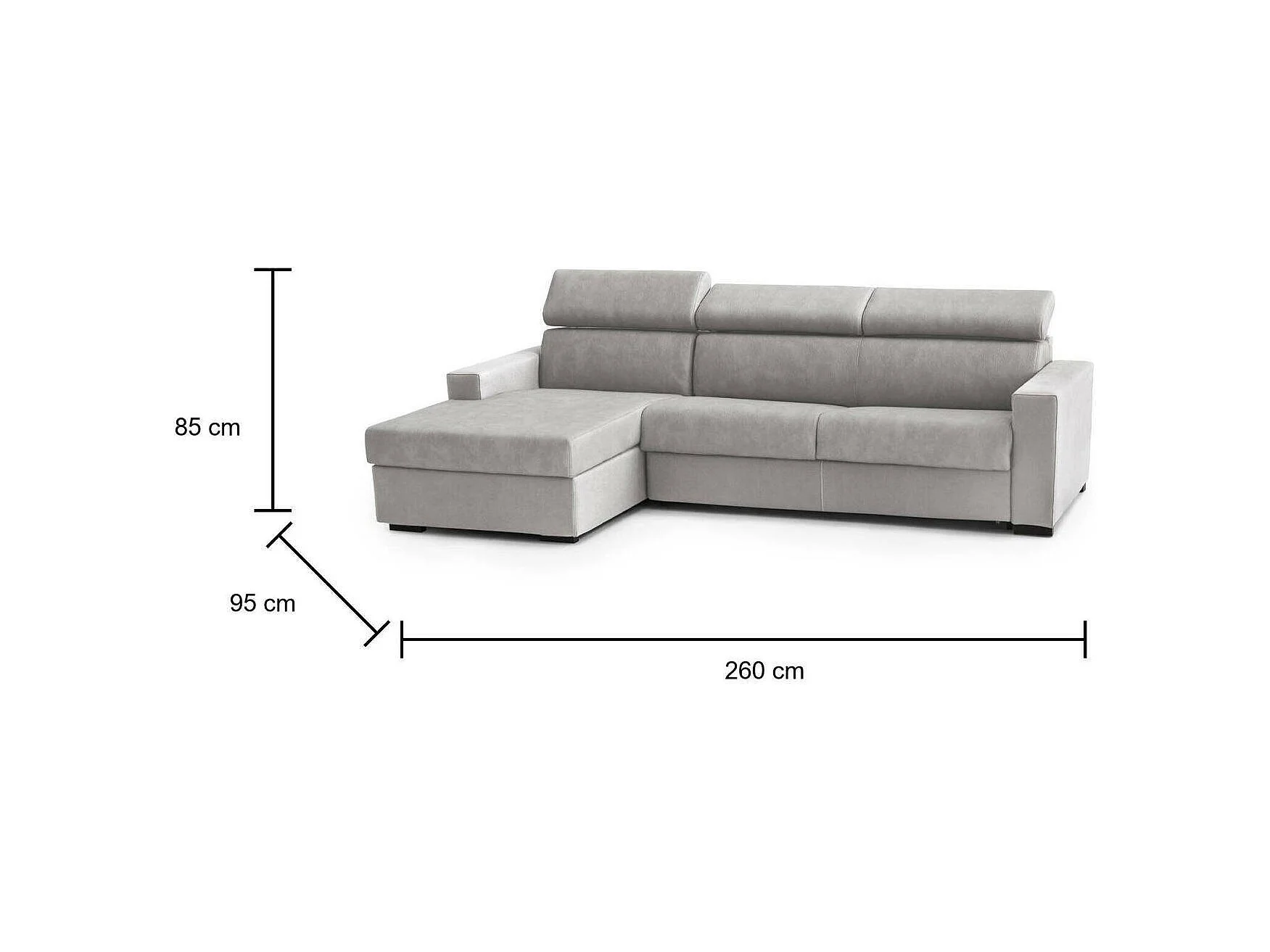 Canapé-lit Aleandra, Canapé d'angle, 100% Made in Italy, Canapé à ouverture pivotante, avec péninsule de rangement gauche, avec accoudoirs fins, 260x95h85 cm, Gris