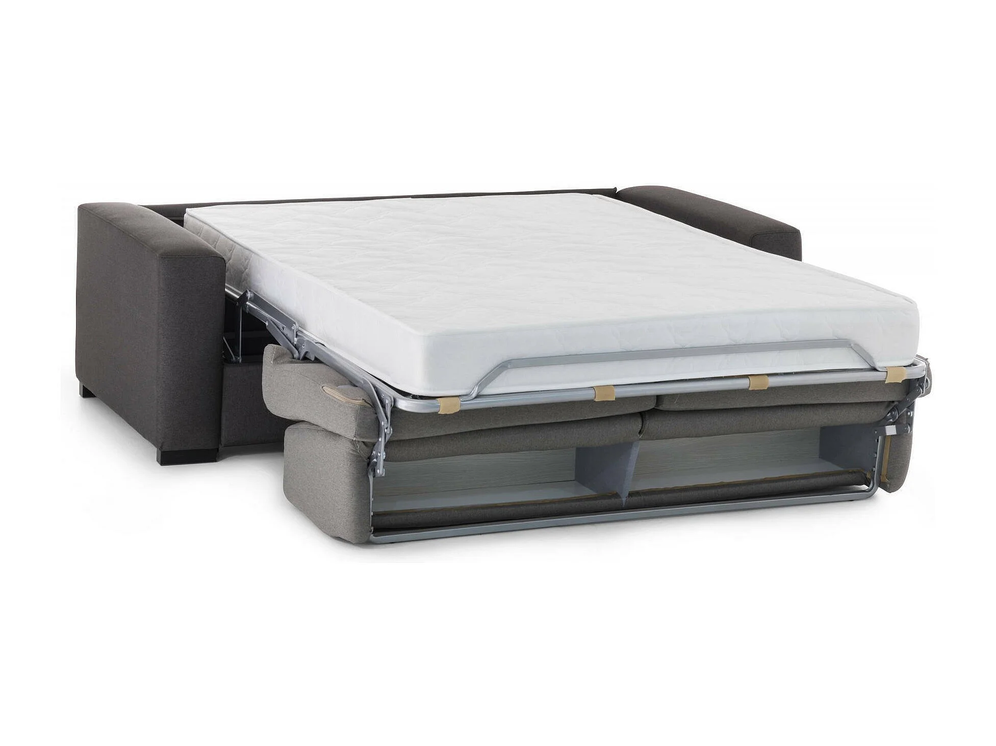 Divano letto 2 posti Alexis, Sof apertura girevole in tessuto imbottito, Braccioli standard, 100% Made in Italy, Cm 200x95h90, Grigio e Antracite