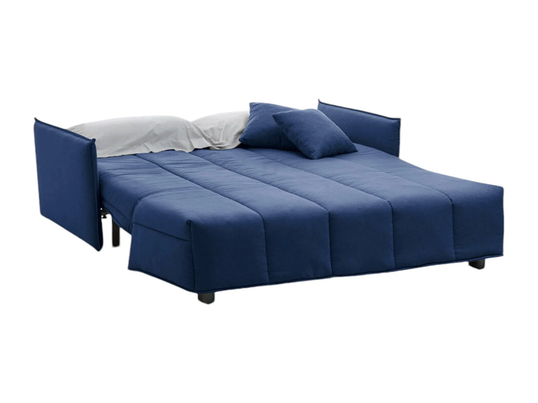 Canapé-lit Allyson, canapé 3 places, 100% Made in Italy, Canapé de salon avec ouverture trolley, en tissu rembourré, avec accoudoirs standards, 190x90h85 cm, Bleu
