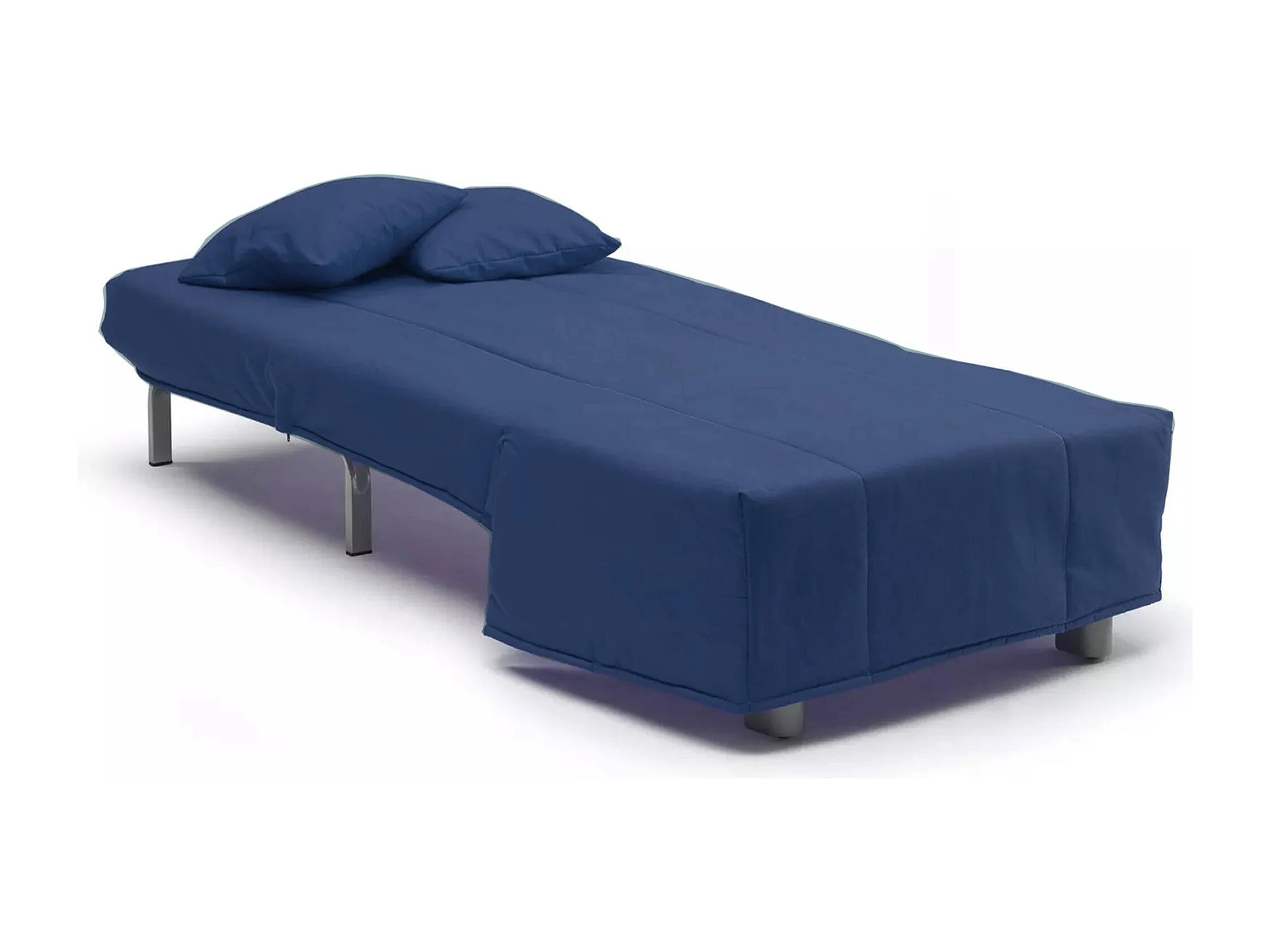 Canapé-lit Alma, Canapé simple, 100% Made in Italy, Fauteuil de salon avec ouverture trolley, en tissu rembourré, avec coussins inclus, 85x90h85 cm, Bleu