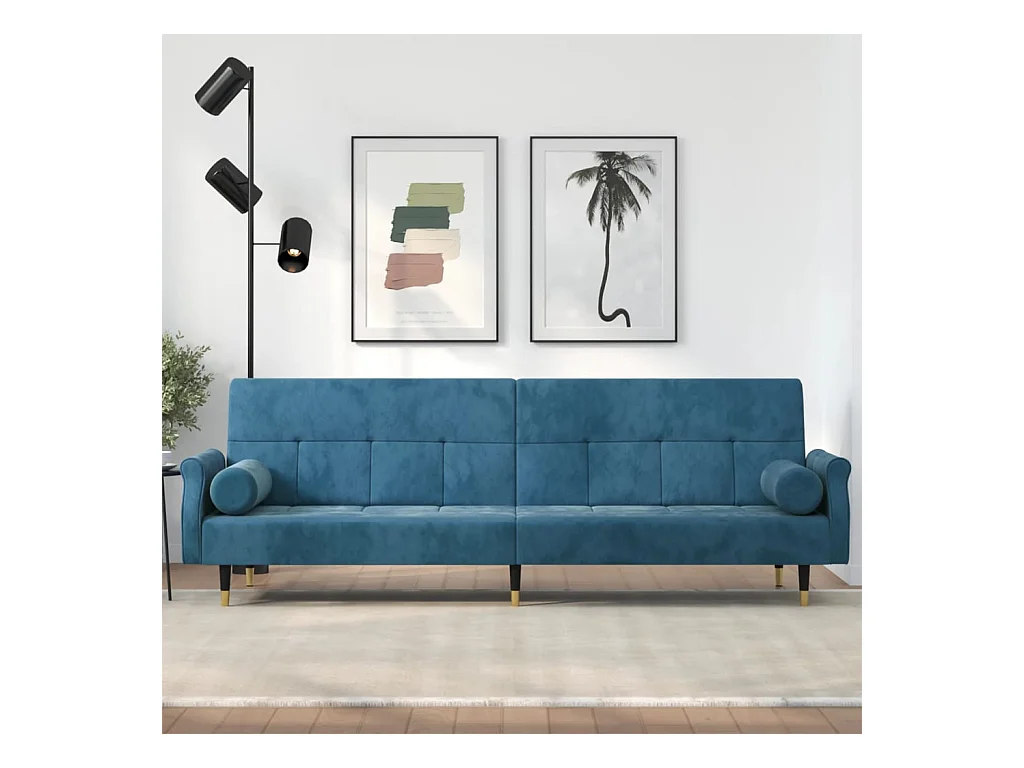 Canapé-lit avec coussins bleu velours