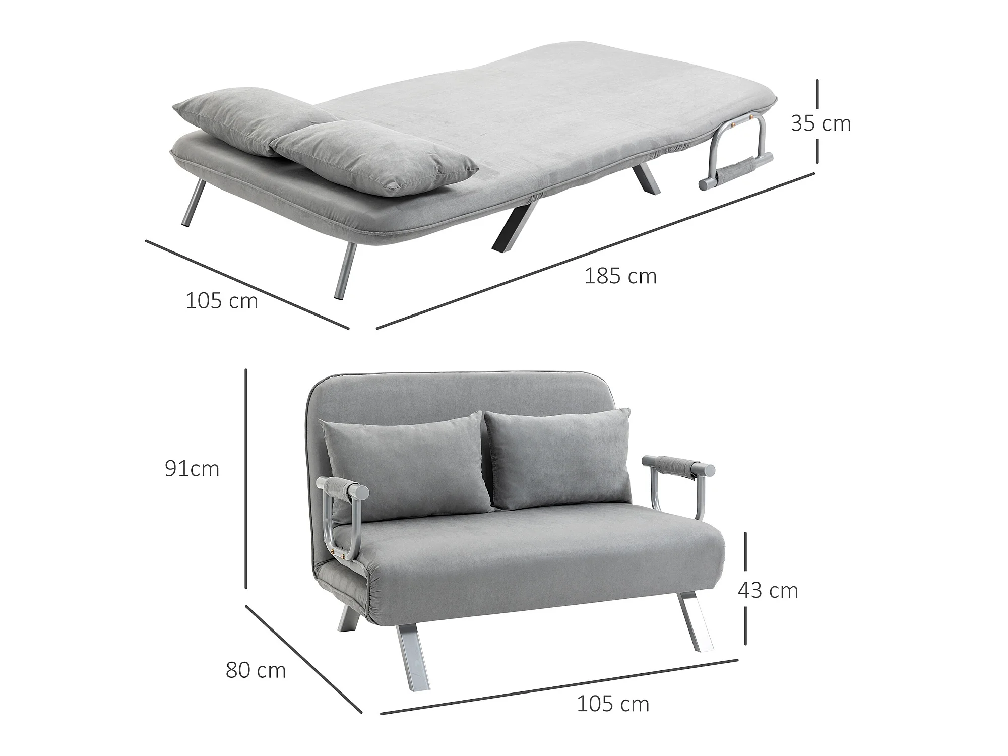 Canapé-lit canapé convertible 2 places déhoussable grand confort 2 coussins fournis pieds accoudoirs métal suède gris clair
