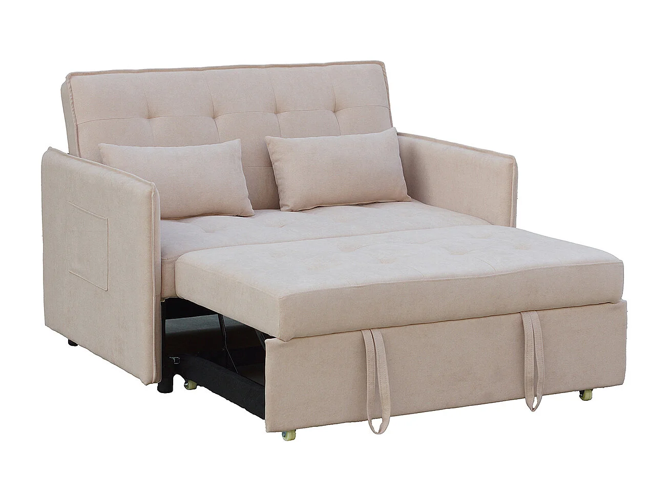 Canapé-lit, canapé de salon avec accoudoirs en tissu coloris beige - Longueur 135 x profondeur 87 x hauteur 96 cm