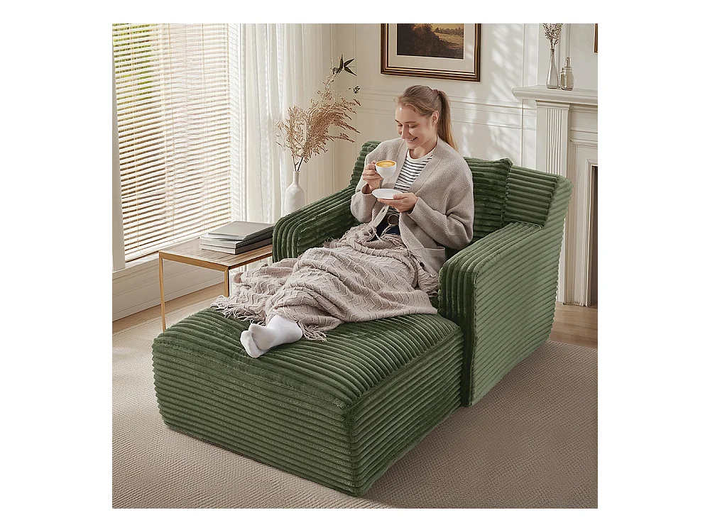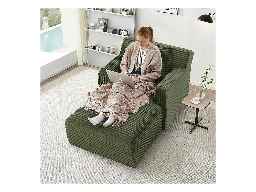Canapé lit chaise longue moderne velours côtelé confortable fauteuil sans montage salon bureau appartement vert