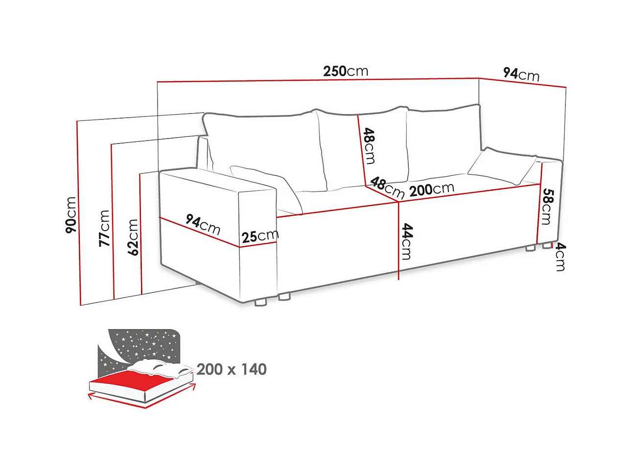 Canapé convertible Clovis 104, Boîte de literie, 90x250x94cm