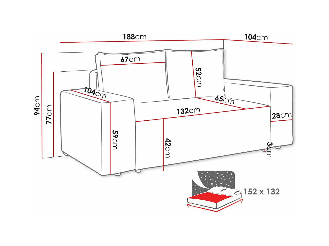 Canapé convertible Clovis 107, Boîte de literie, 94x188x104cm