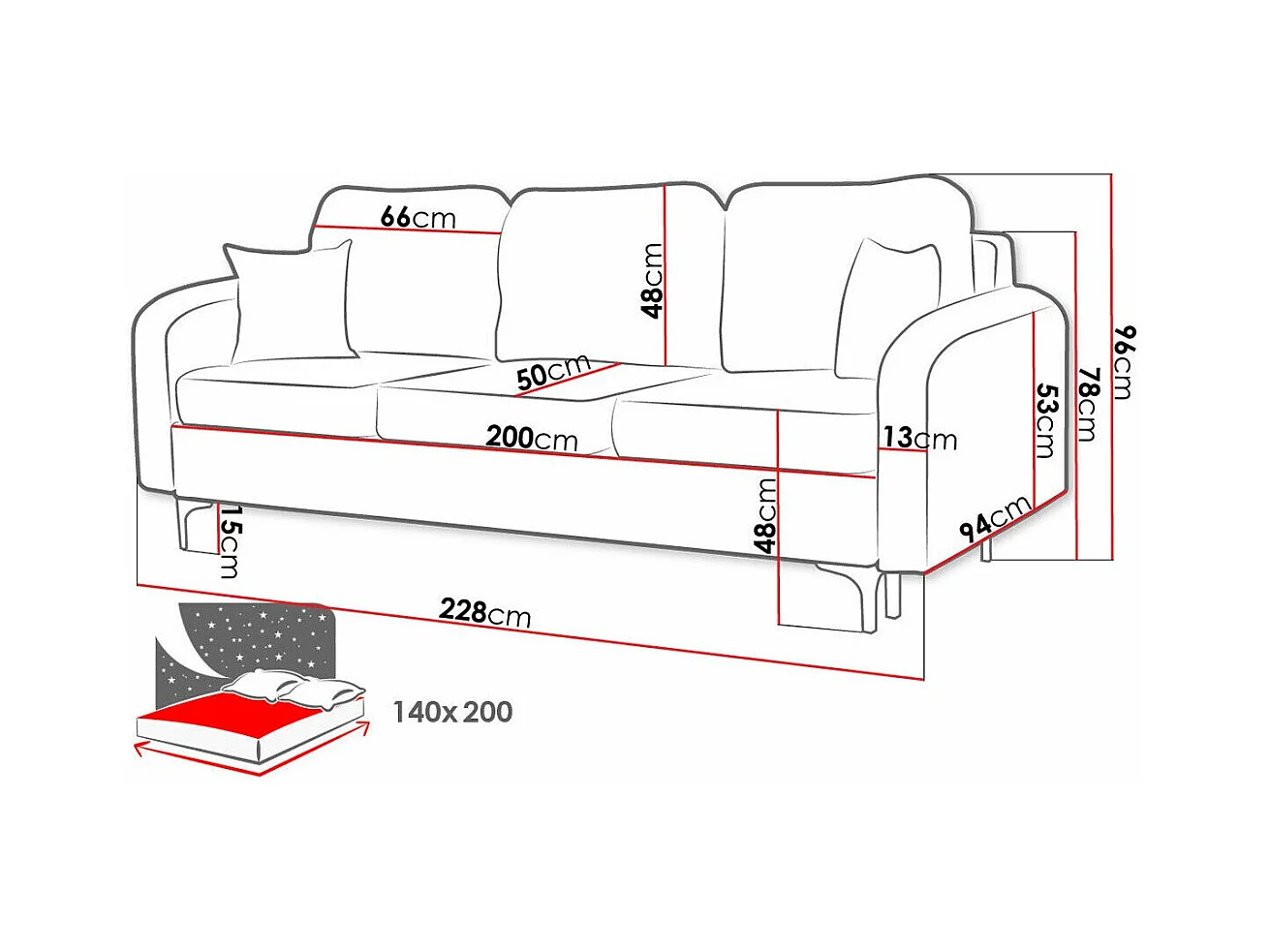 Canapé convertible Torlua 102, Boîte de literie, 96x228x94cm