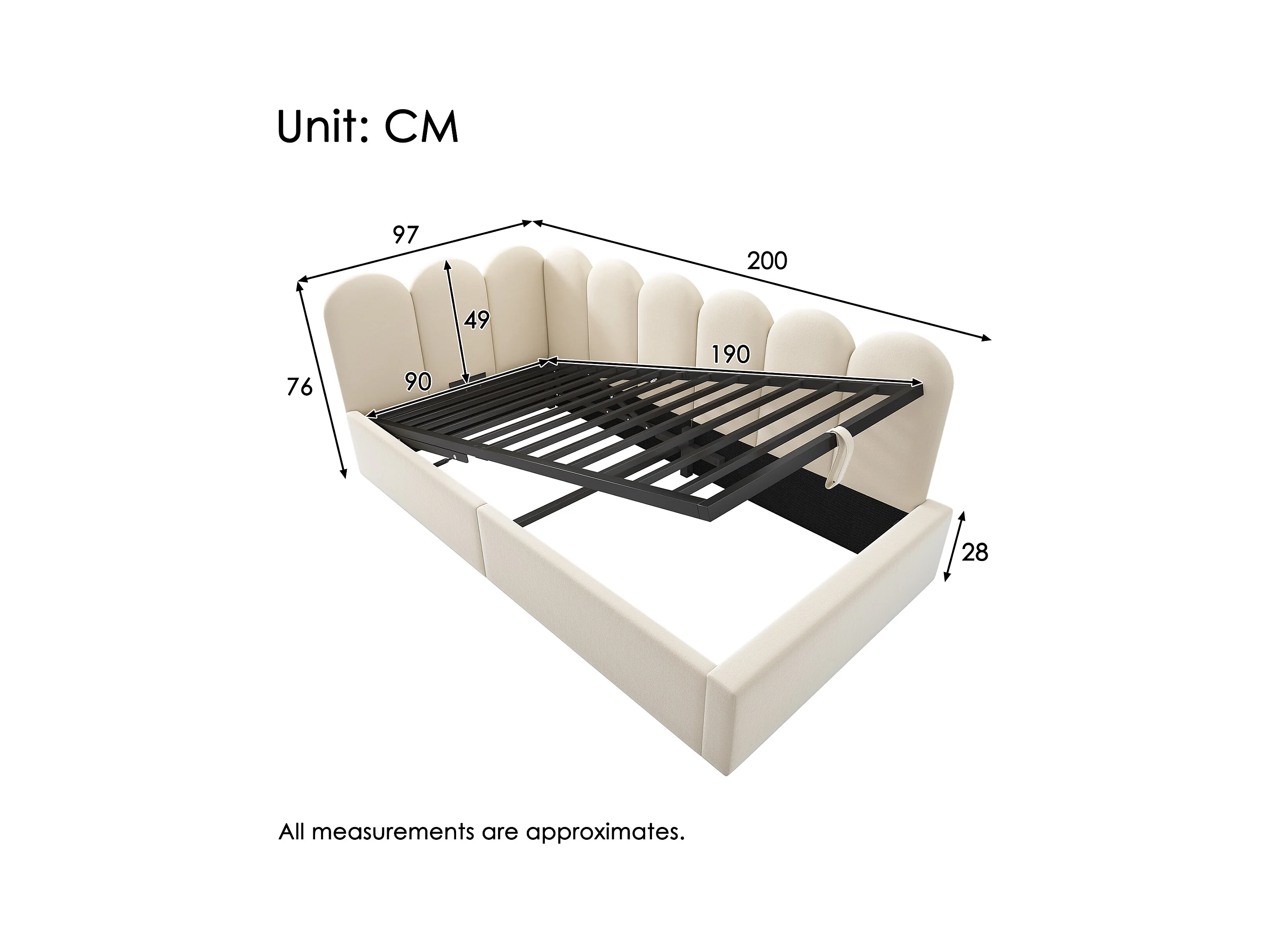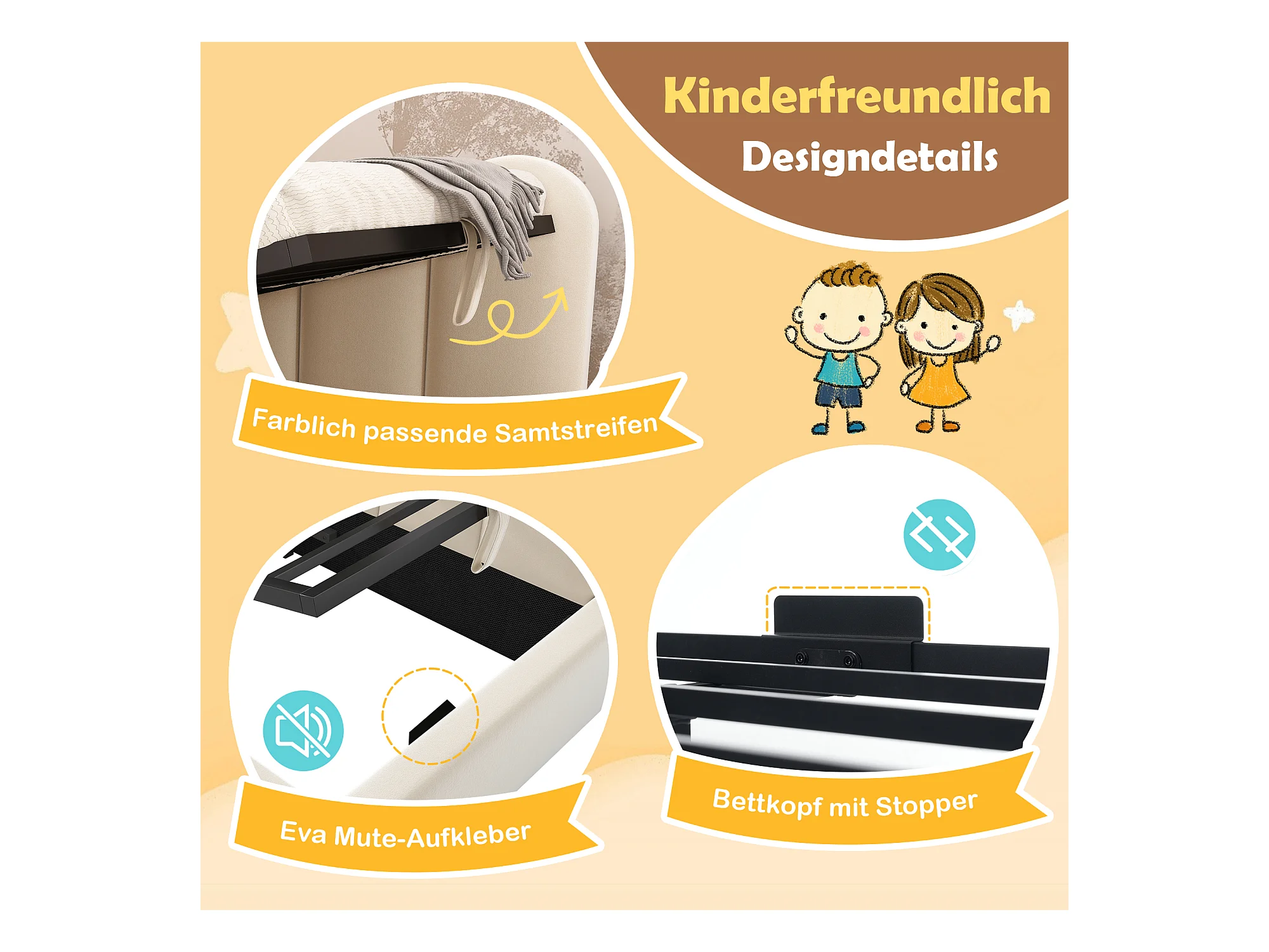 Canapé-lit coffre rembourré pour enfant - 90 x 190 cm - velours + métal + contreplaqué - Beige