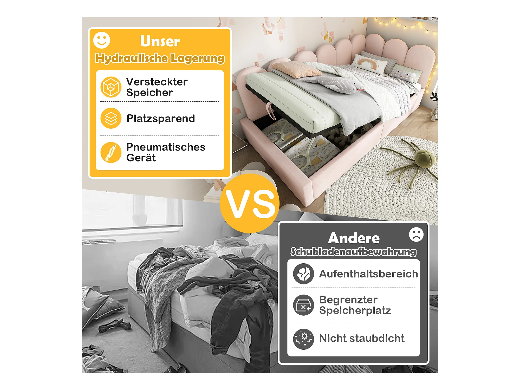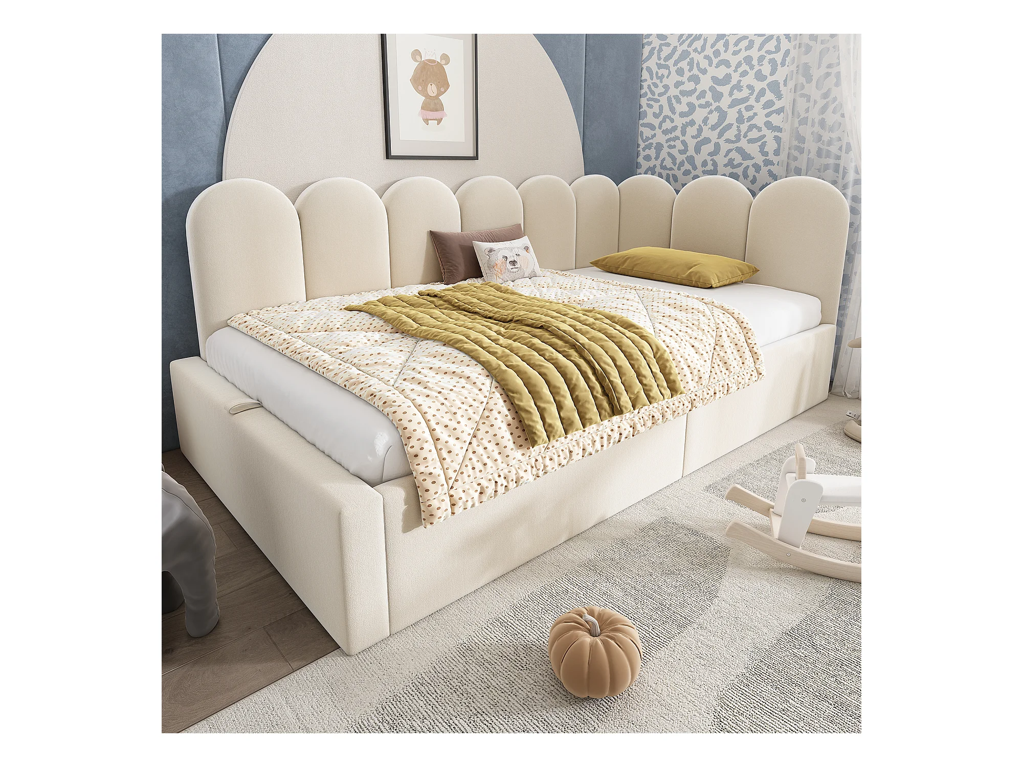 Canapé-lit coffre rembourré pour enfant - 90 x 200 cm - velours + métal + contreplaqué - Beige