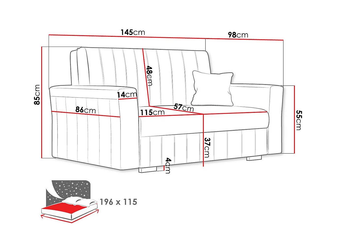 Canapé convertible Columbus 136, Boîte de literie, 85x145x98cm, Mobilier déjà assemblé