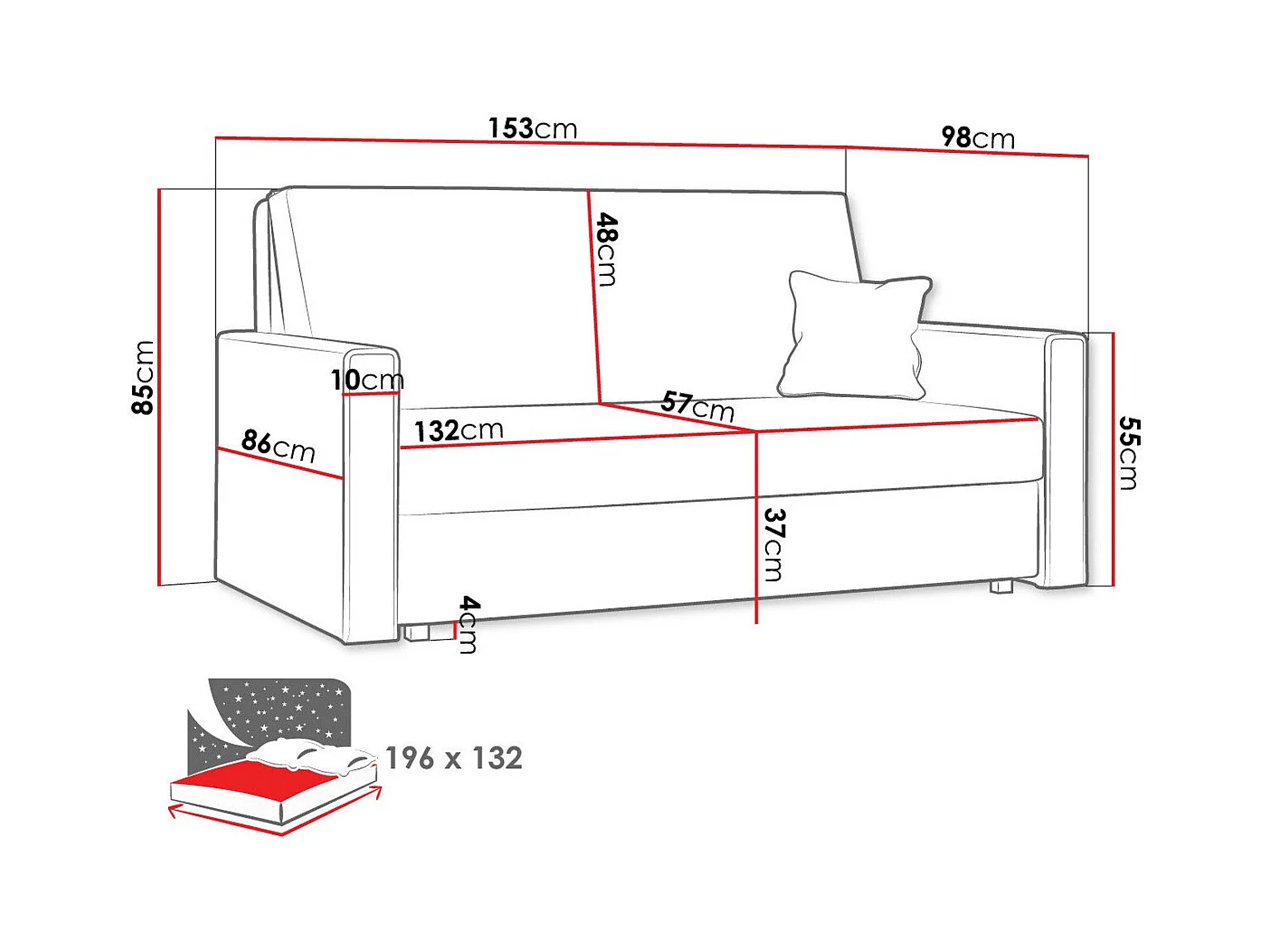 Canapé convertible Columbus 188, Boîte de literie, 85x153x98cm, Mobilier déjà assemblé