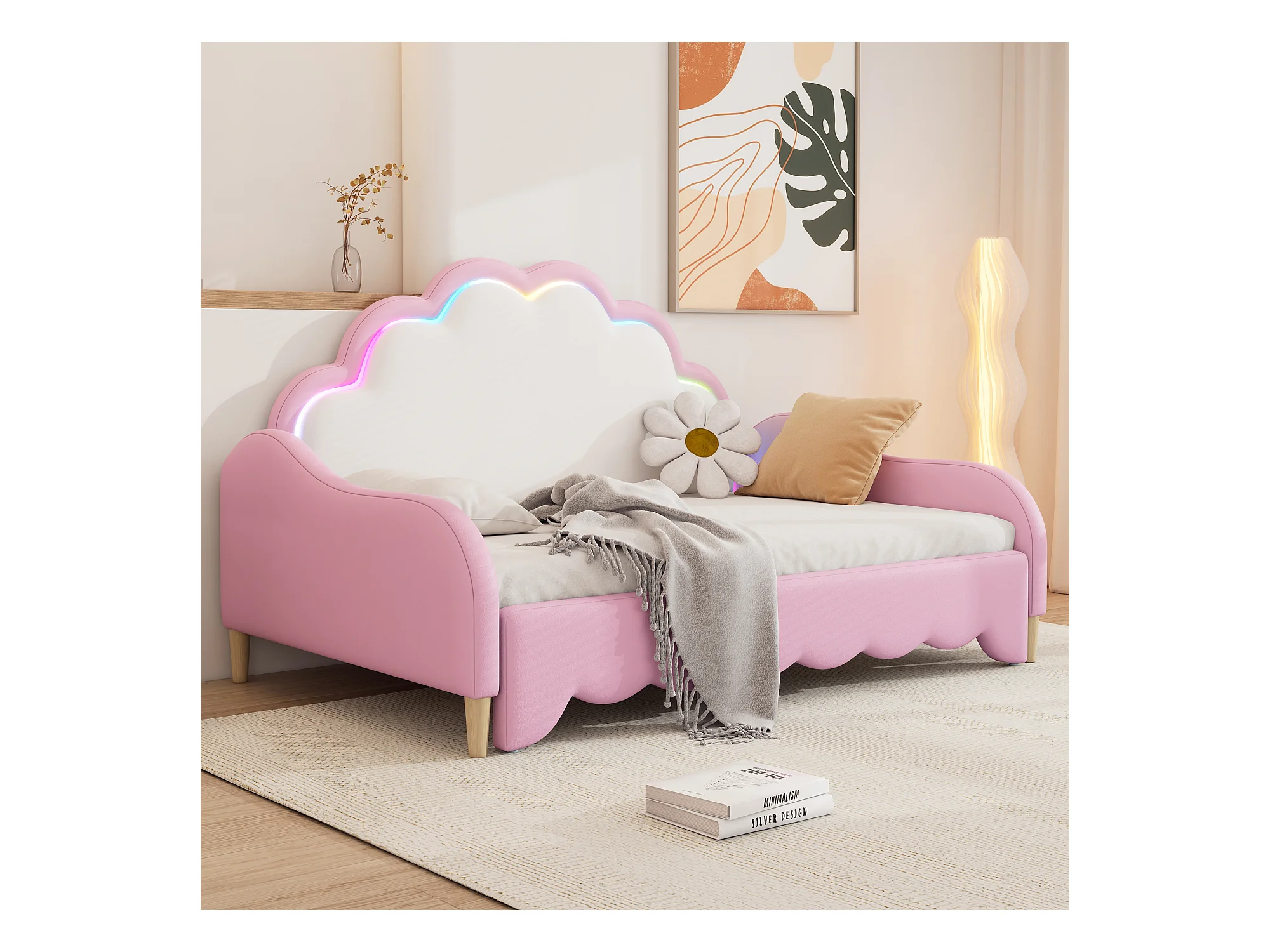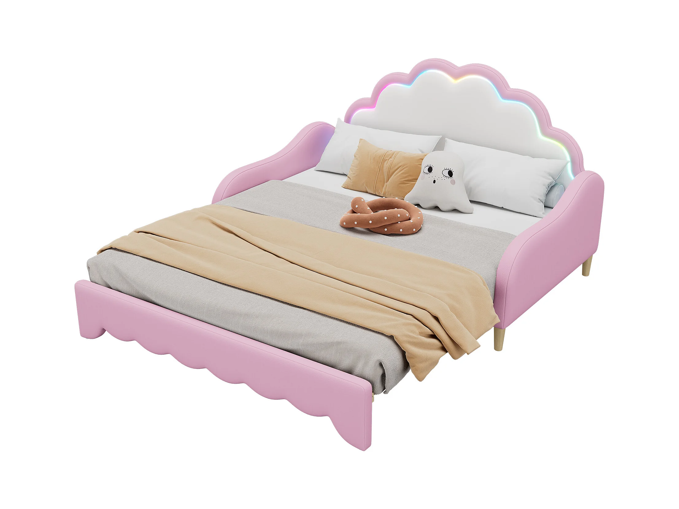 Canapé-lit convertible - 140 x 200 cm - tête de lit avec Leds - avec matelas - PU + MDF - rose