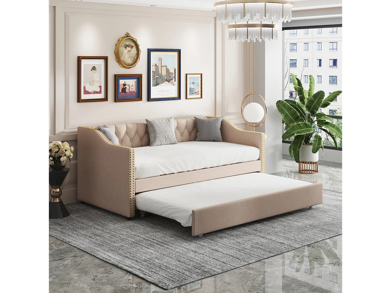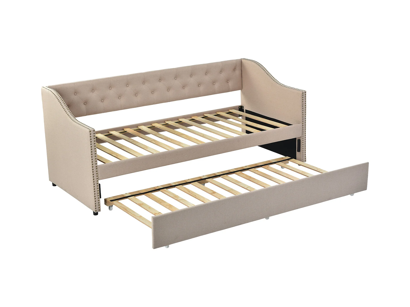 Canapé lit Convertible 90/180 x 200 cm, Canape lit 2 Places gigogne Bed avec sommier à Lattes, Multifonctionnel Cadre de Bed Rembourré 2 Personnes en Velours,Beige