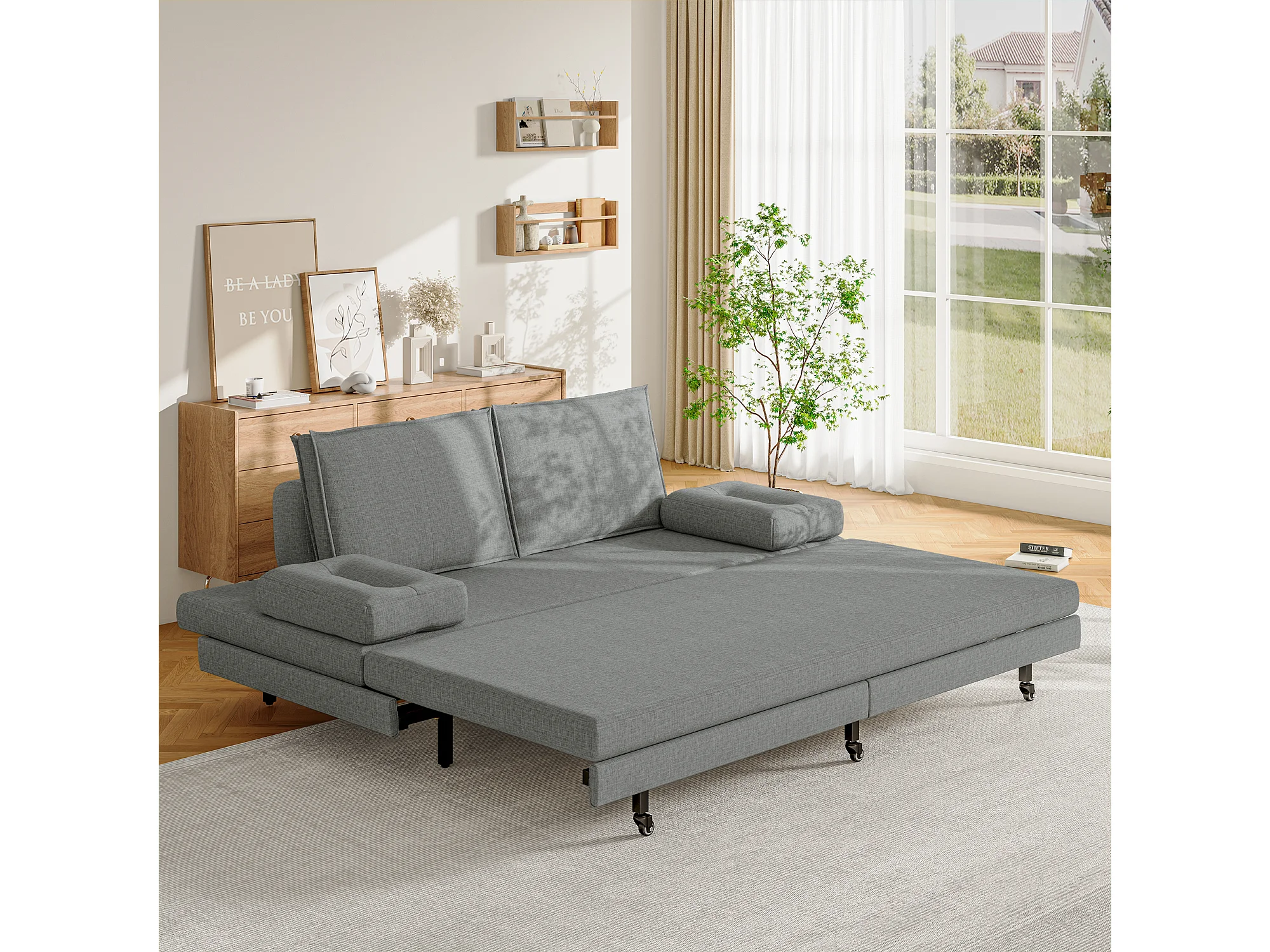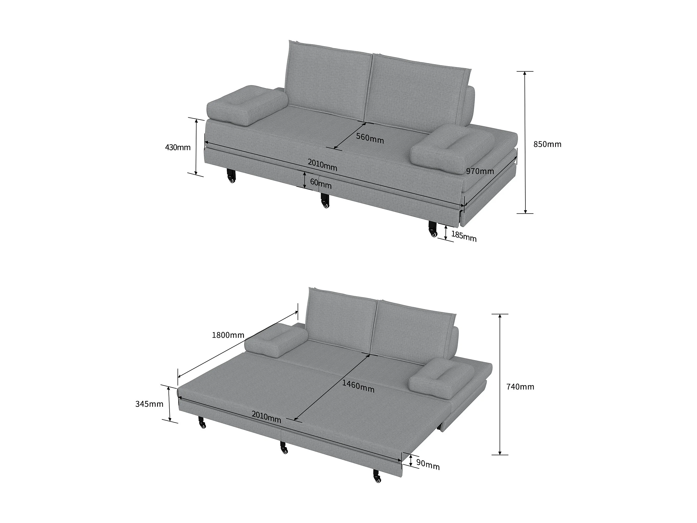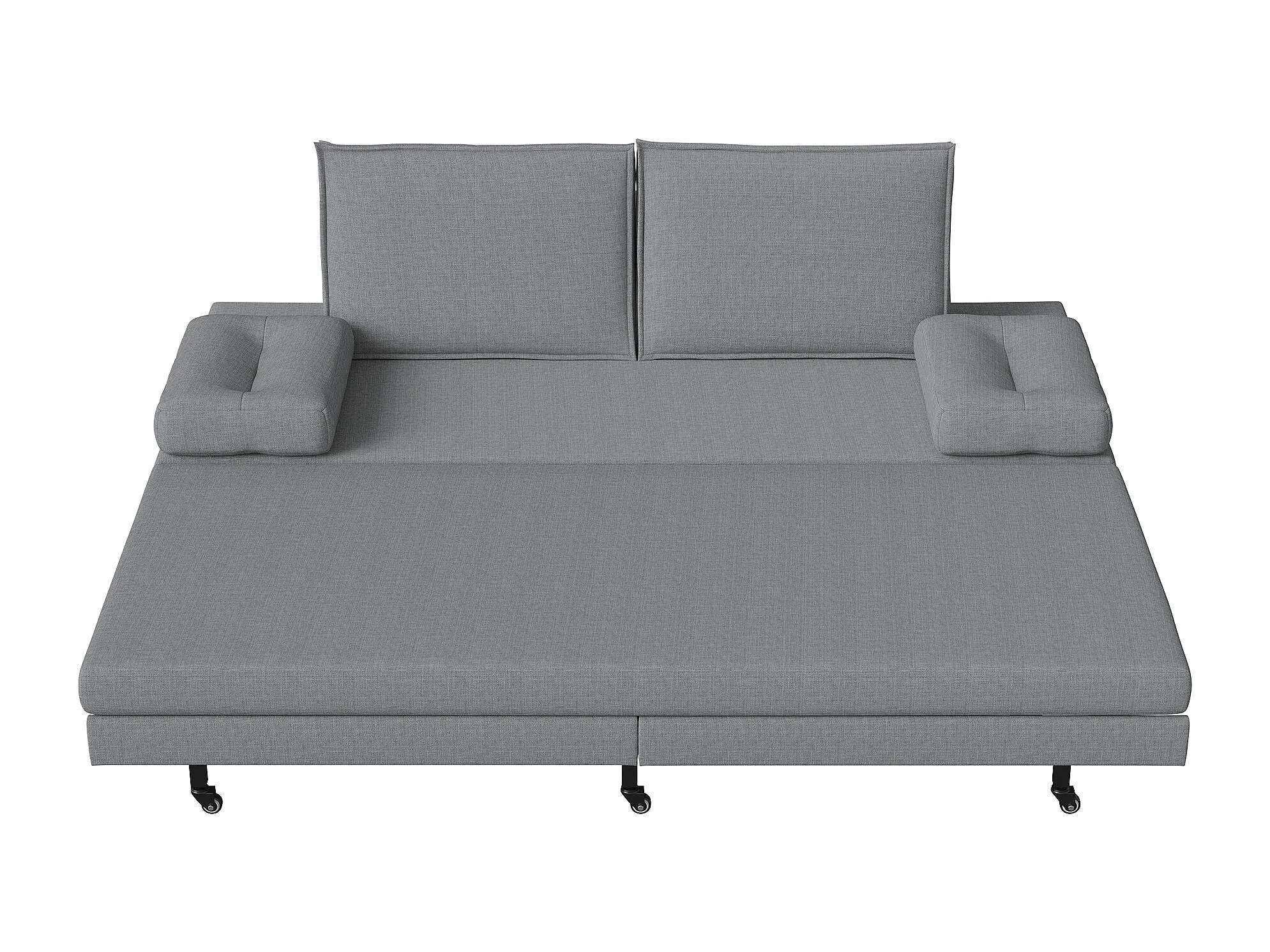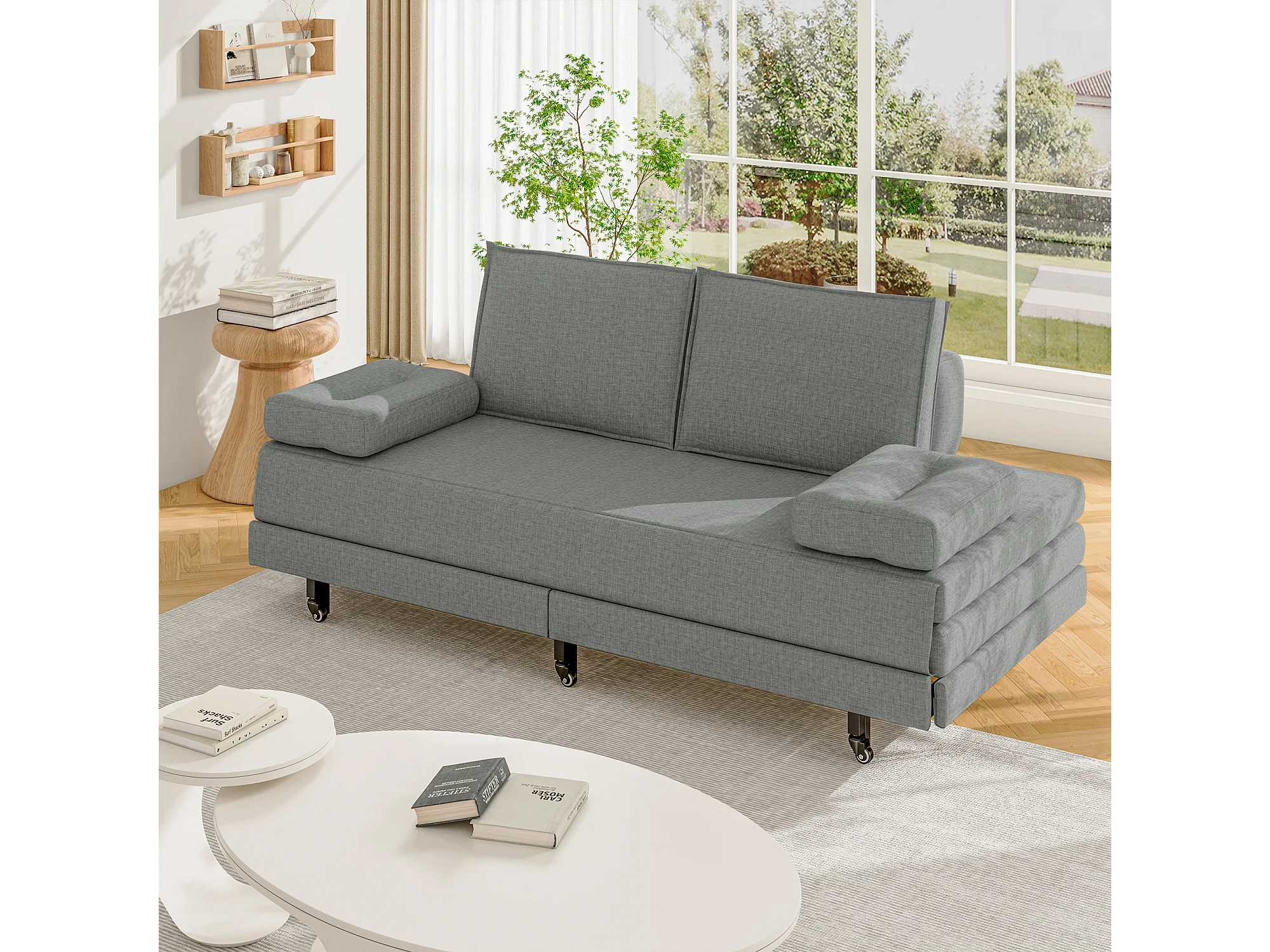 Canapé-Lit Convertible 90x200cm, Lit double, Multifonction, Lit de Jour pour 2 Personnes, Lit gigogne de même Hauteur, en Lin Gris