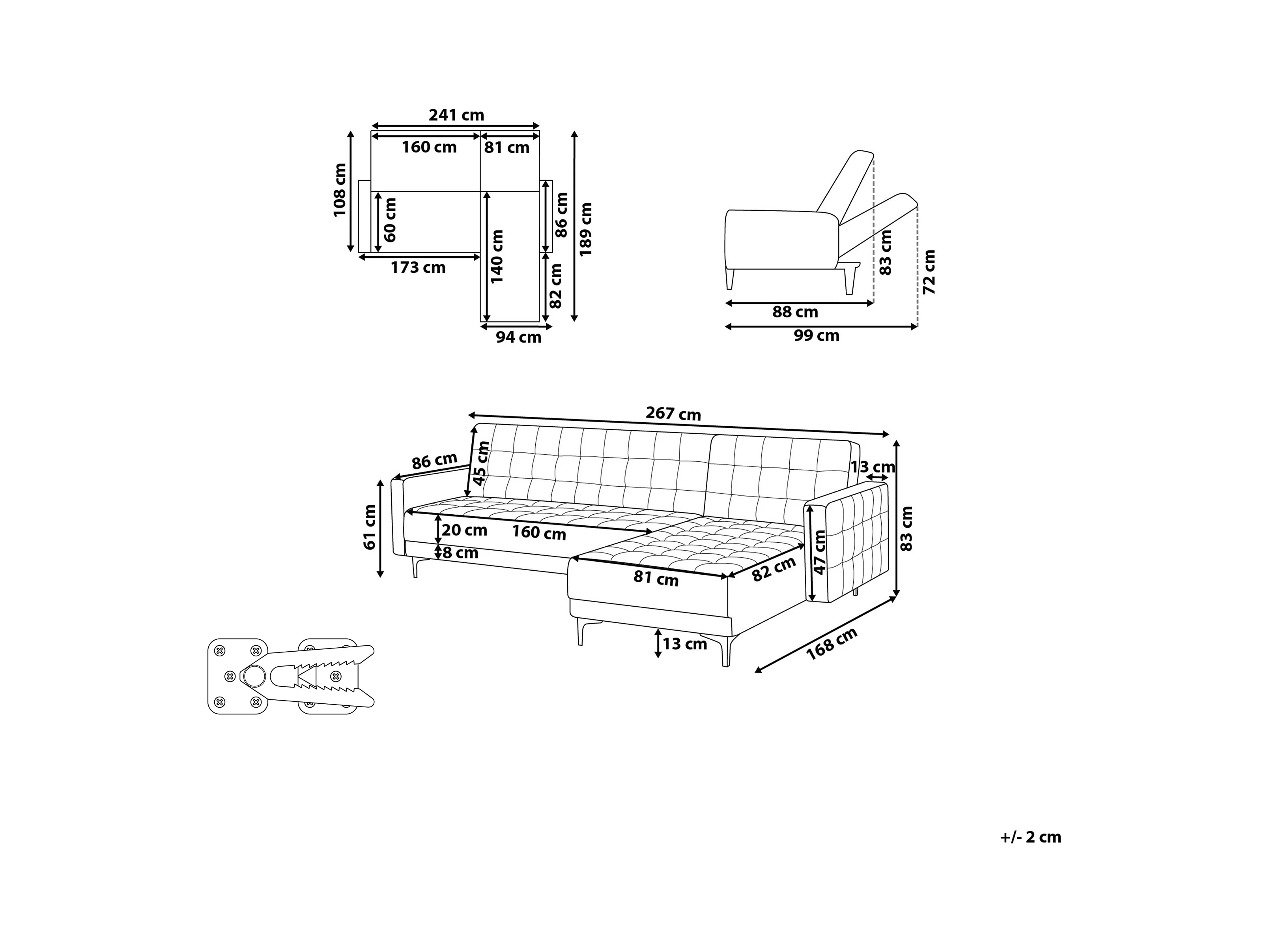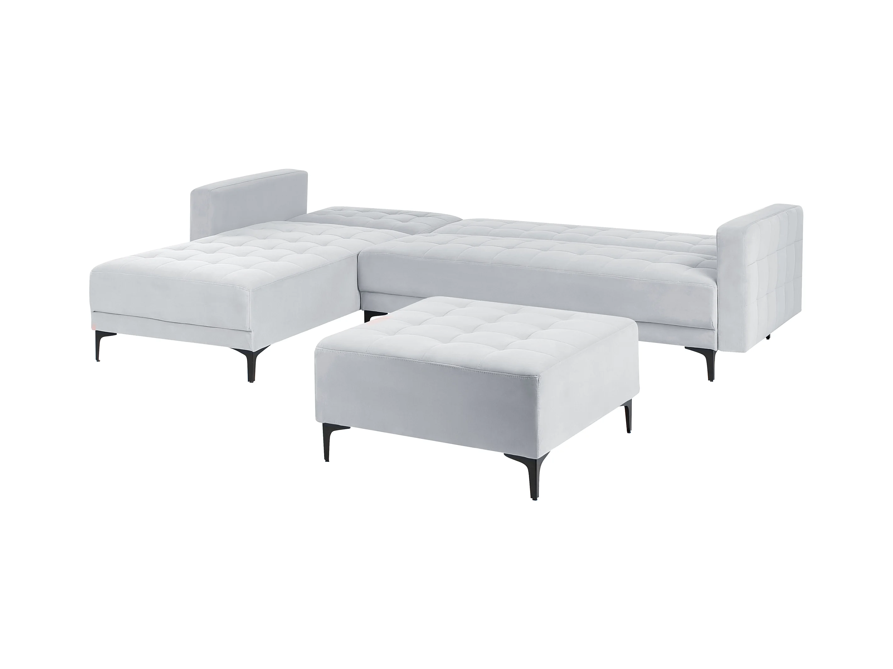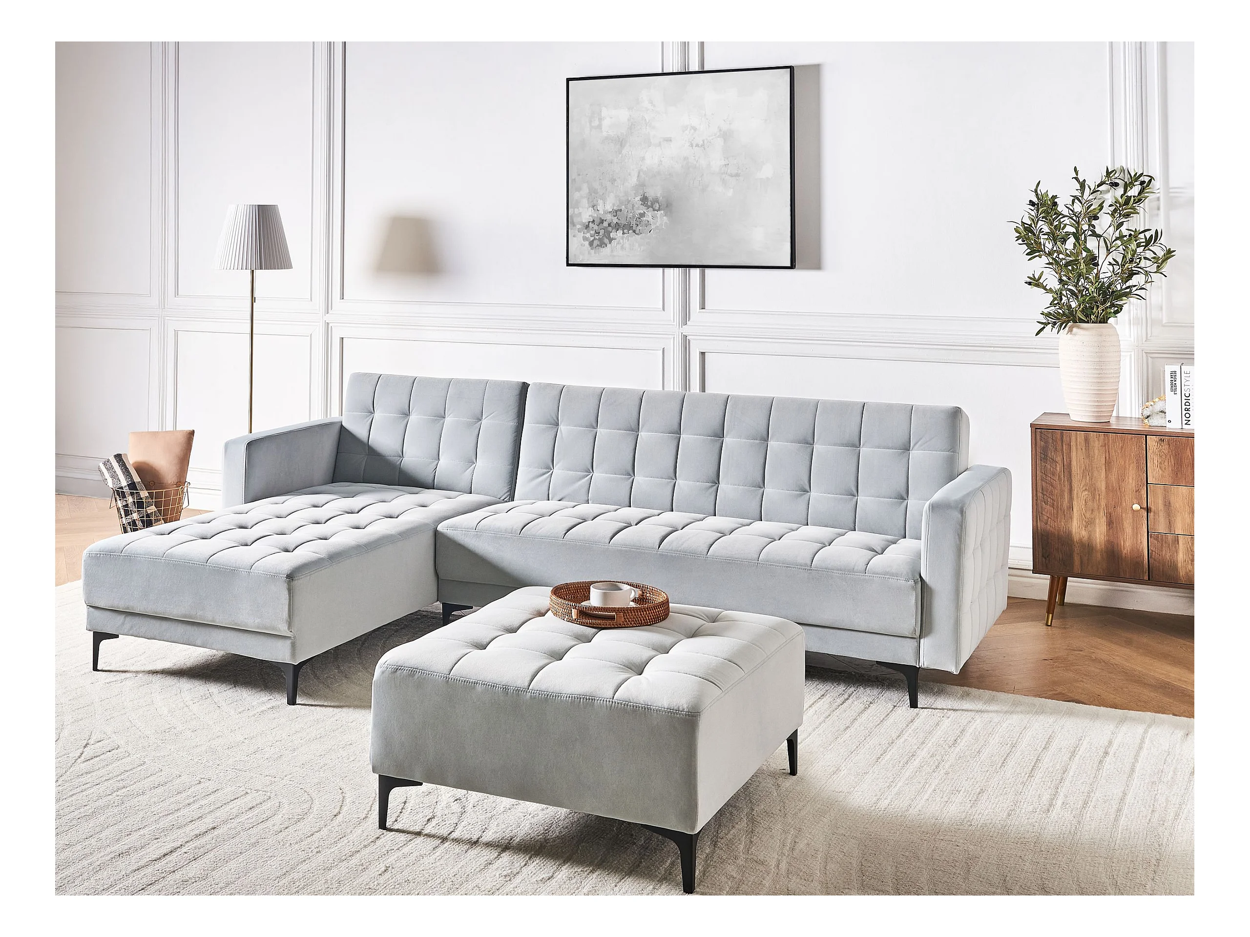 Canapé-lit d'angle modulable 4 places ABERDEEN Velours Gris clair Côté droit