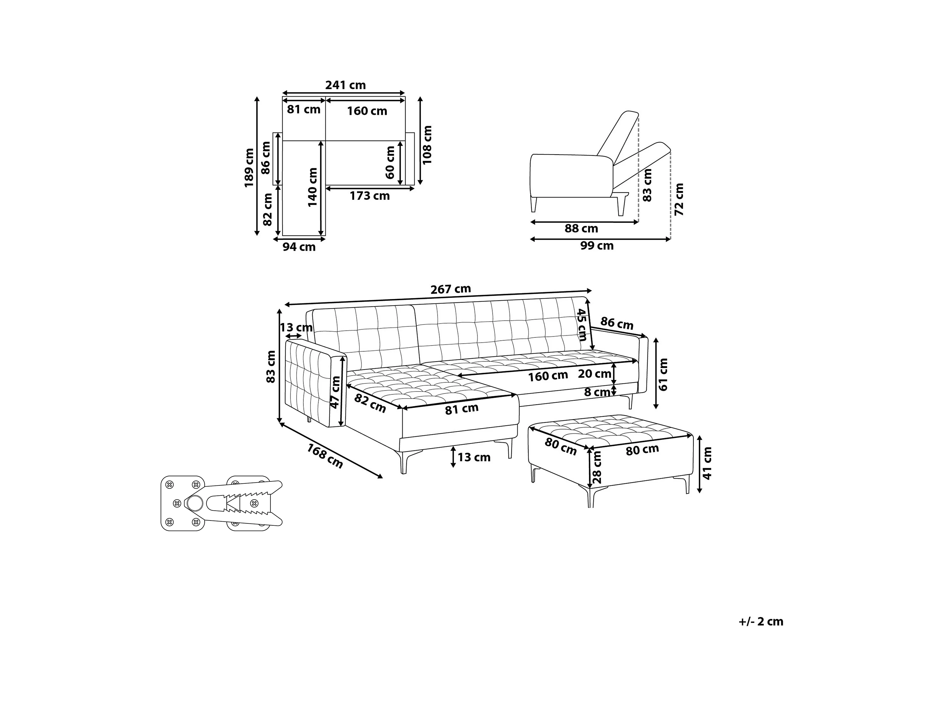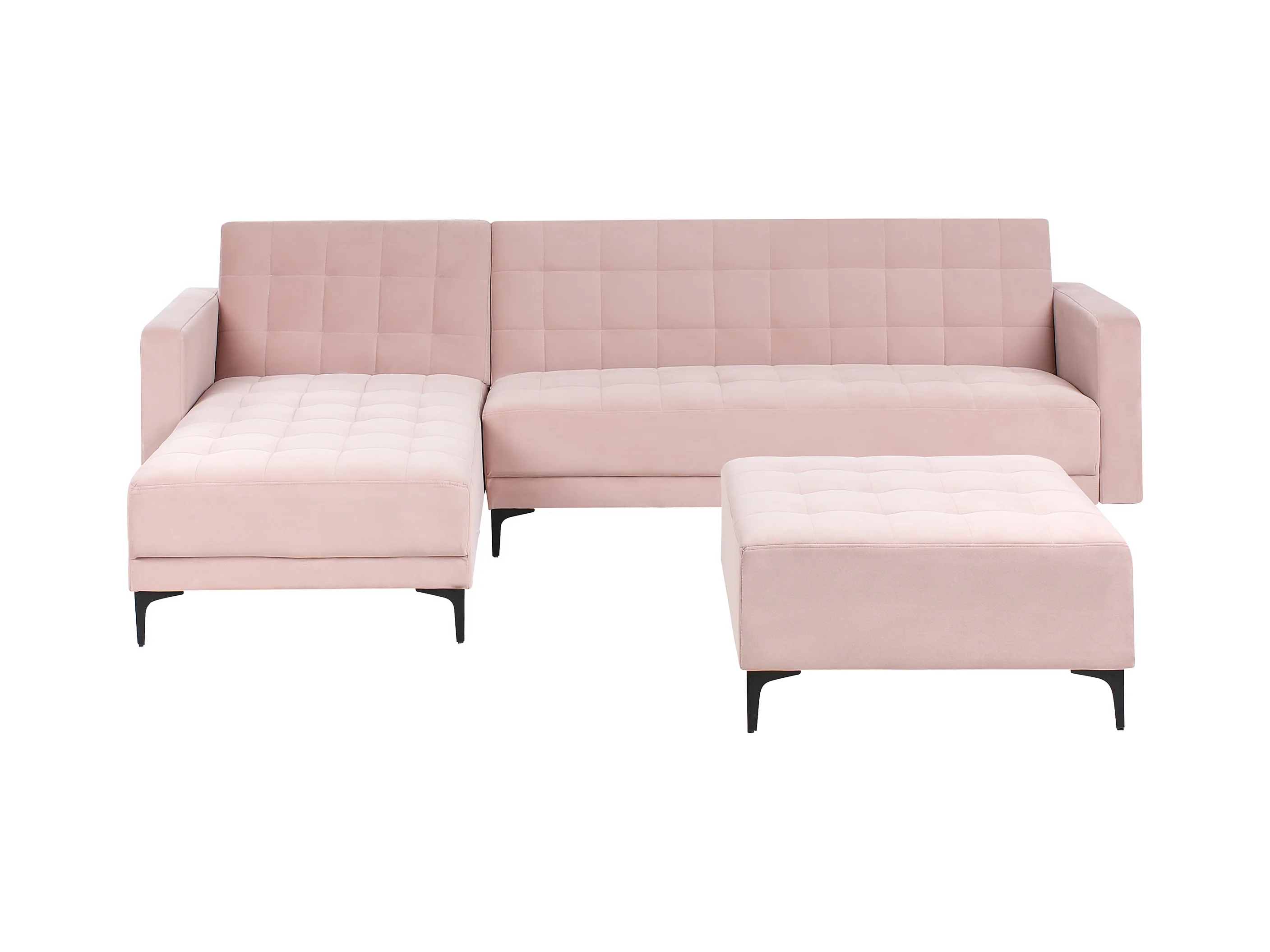Canapé-lit d'angle modulable 4 places ABERDEEN Velours Rose pastel Côté droit