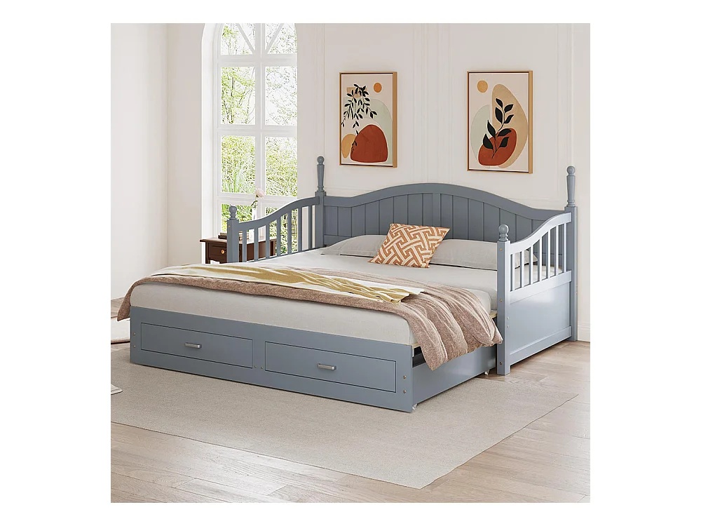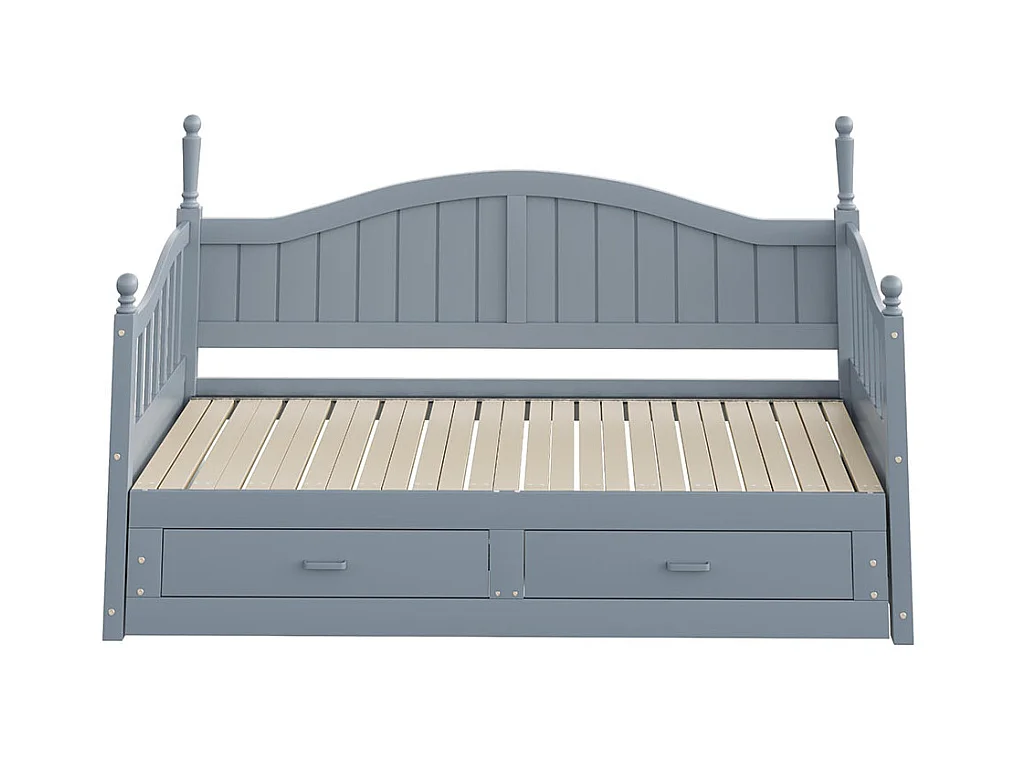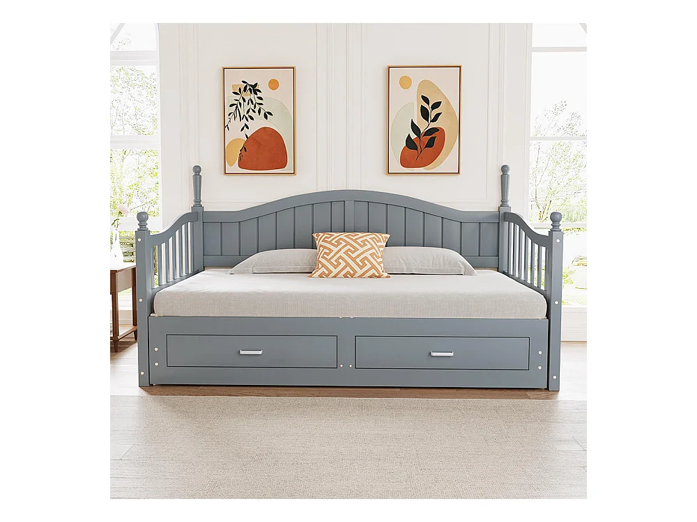 Canapé-lit en bois massif 90/180x190 cm,LIT GIGOGNE avec tiroirs et sommier à lattes, pin, gris