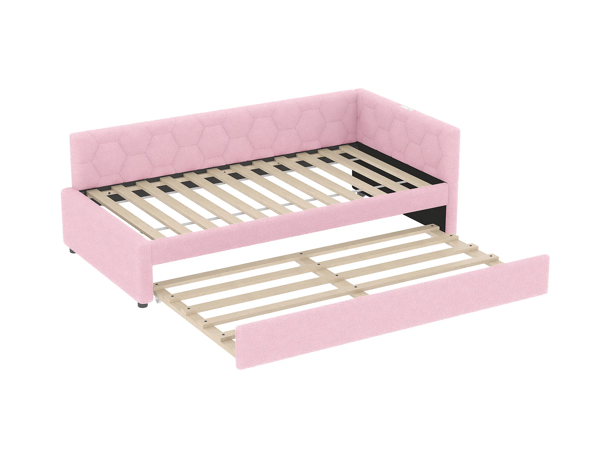 Canapé-lit enfant 90x200cm avec lit gigogne 80x180 cm, imitation laine, rose, sans matelas