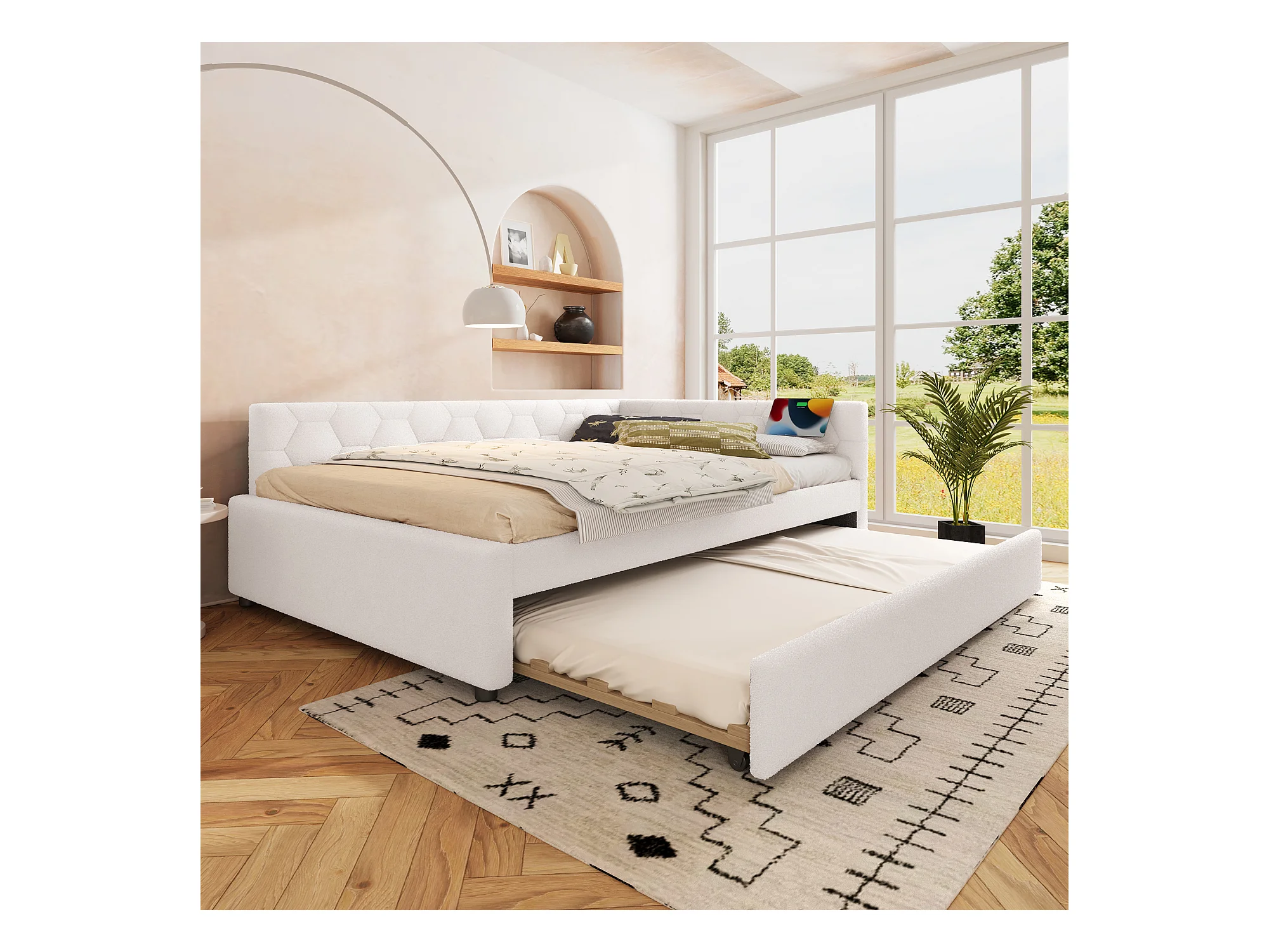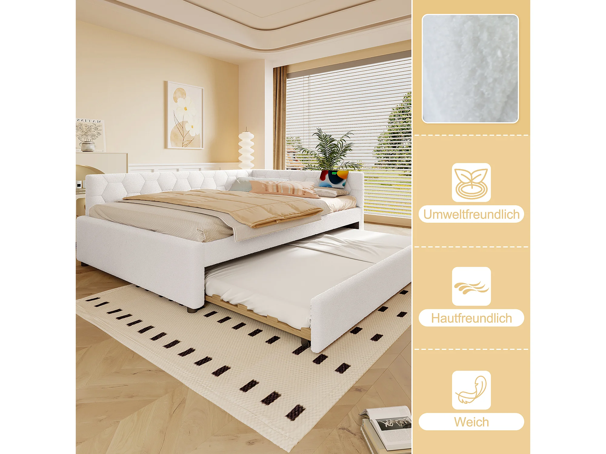 Canapé-lit gigogne pour enfant - 140 x 200 cm + 90 x 190 cm - avec lampe de chevet + USB - velours - blanc