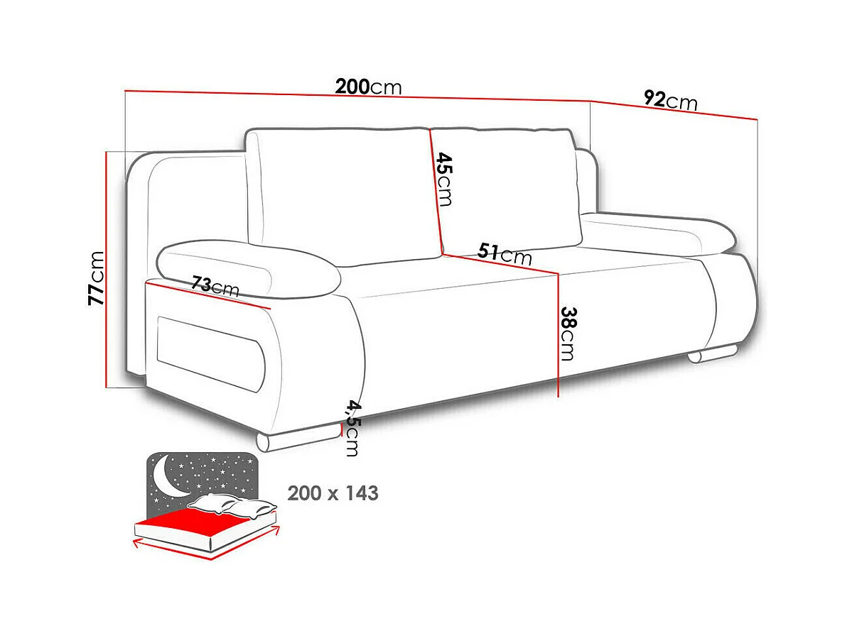 Canapé convertible Comfivo 144, Boîte de literie, 77x200x92cm