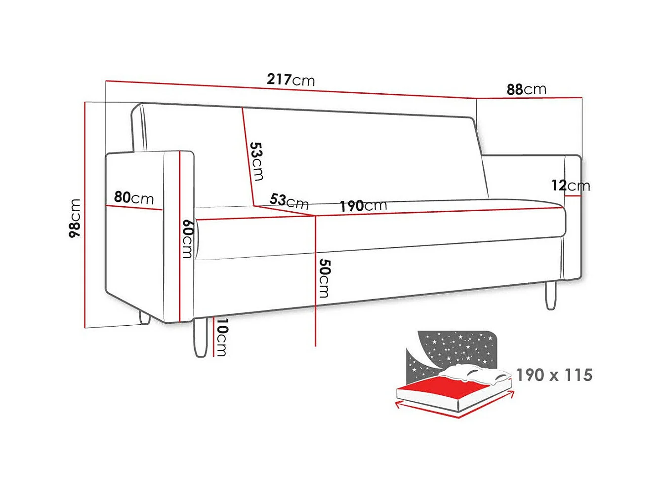 Canapé convertible Memphis 136, Boîte de literie, 98x217x88cm