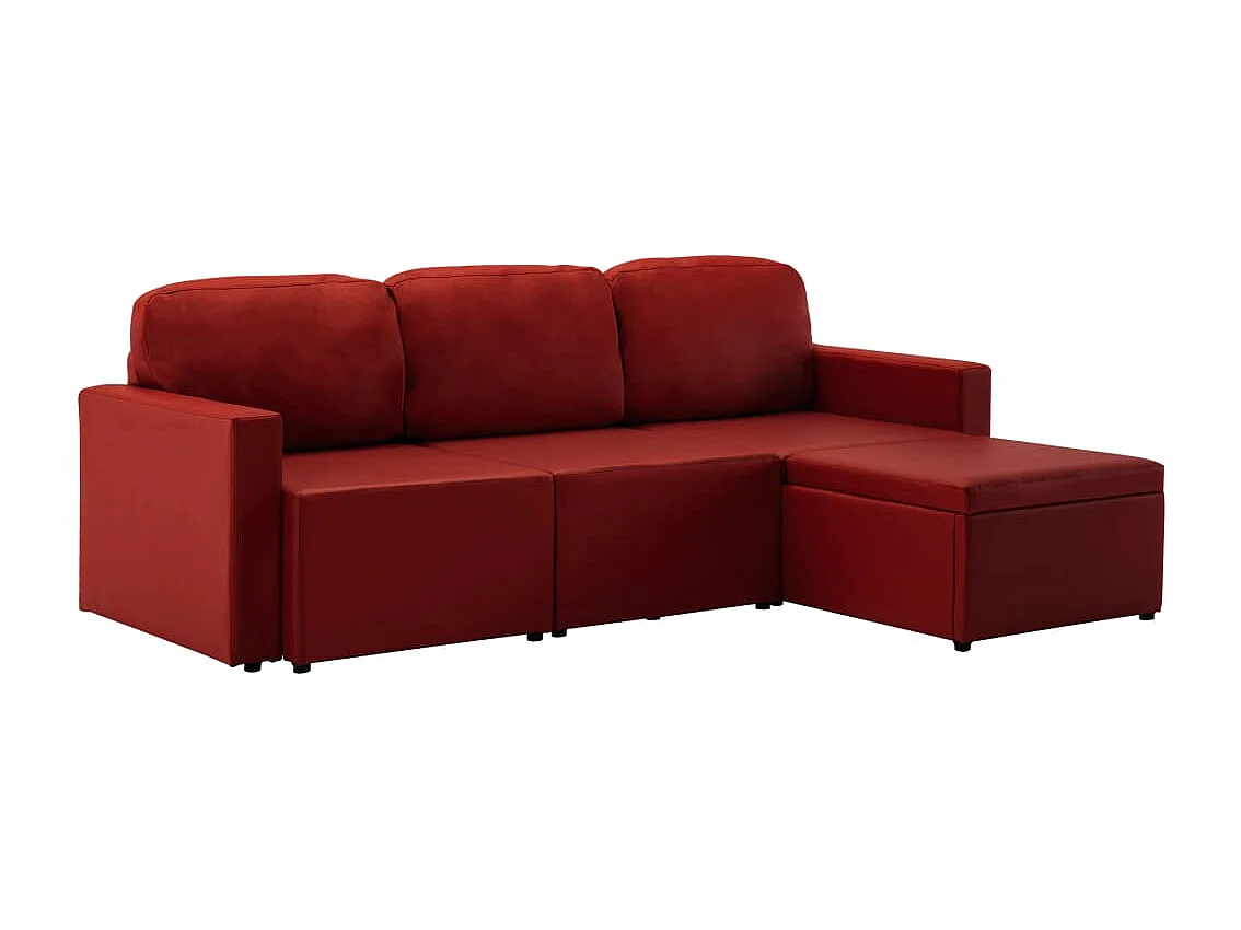 Canapé-lit modulaire 3 places Rouge bordeaux Similicuir