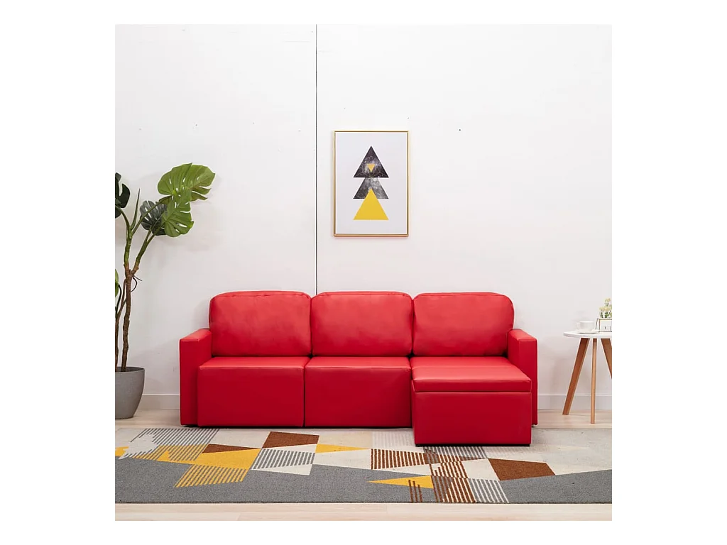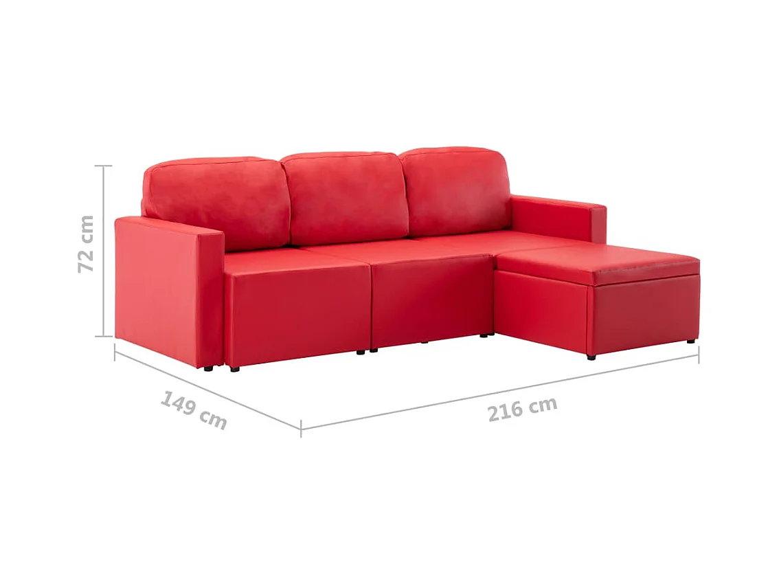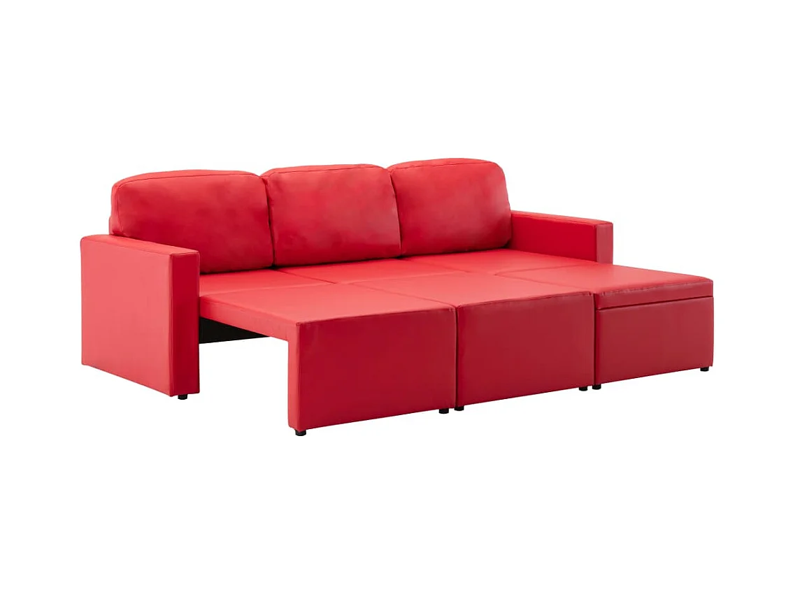 Canapé-lit modulaire 3 places Rouge Similicuir