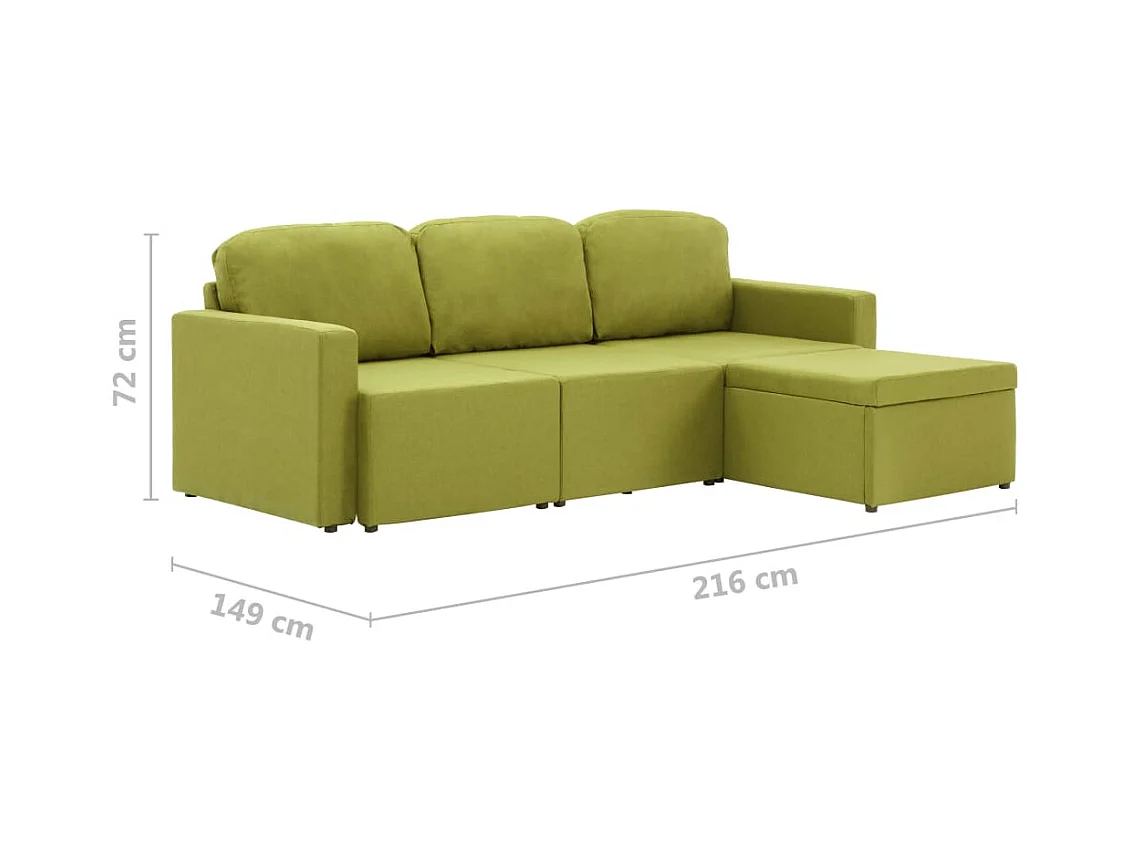 Canapé-lit modulaire 3 places Vert Tissu