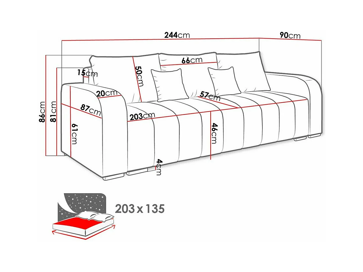 Canapé convertible Muncie 106, Boîte de literie, 86x244x90cm