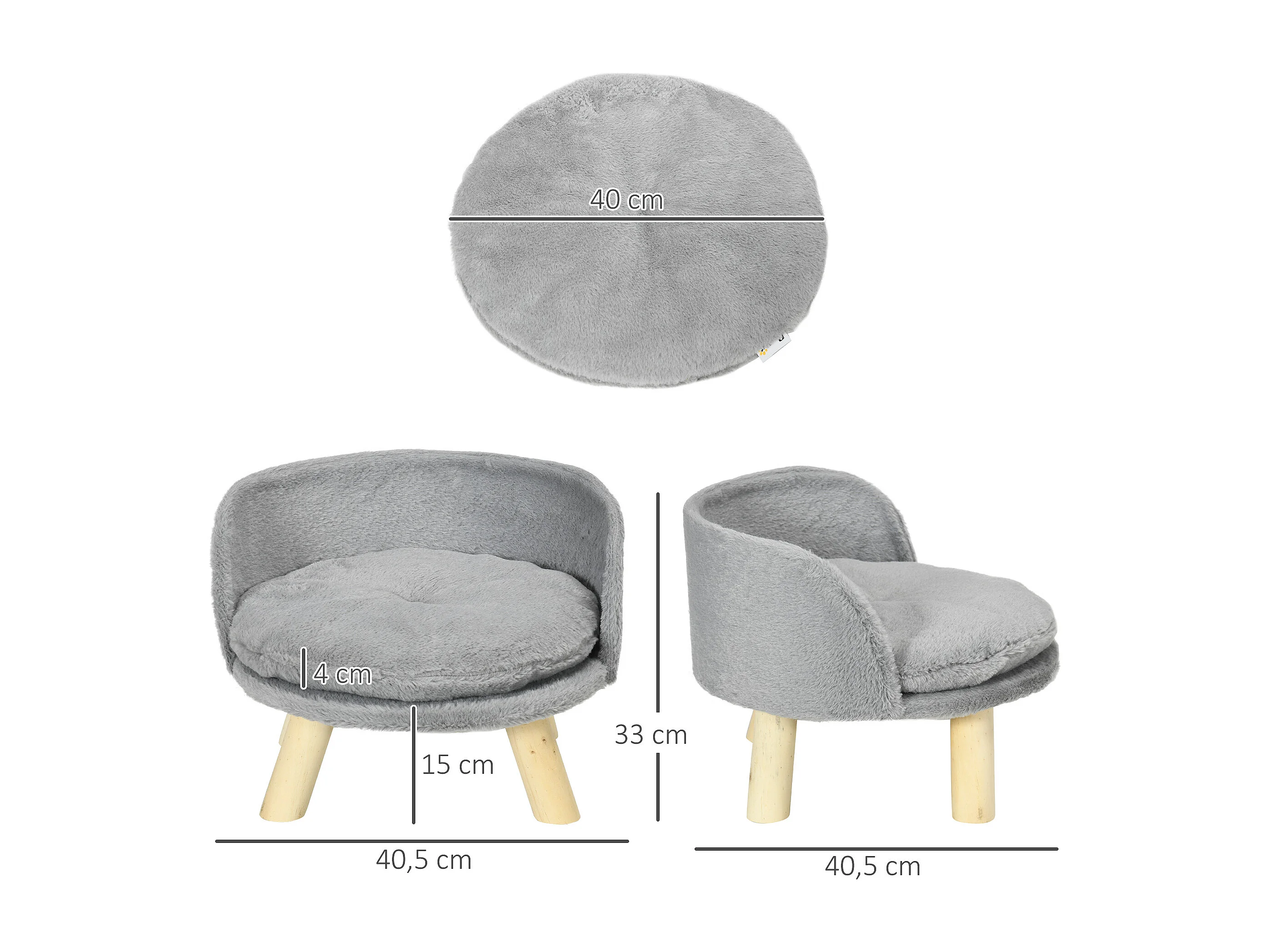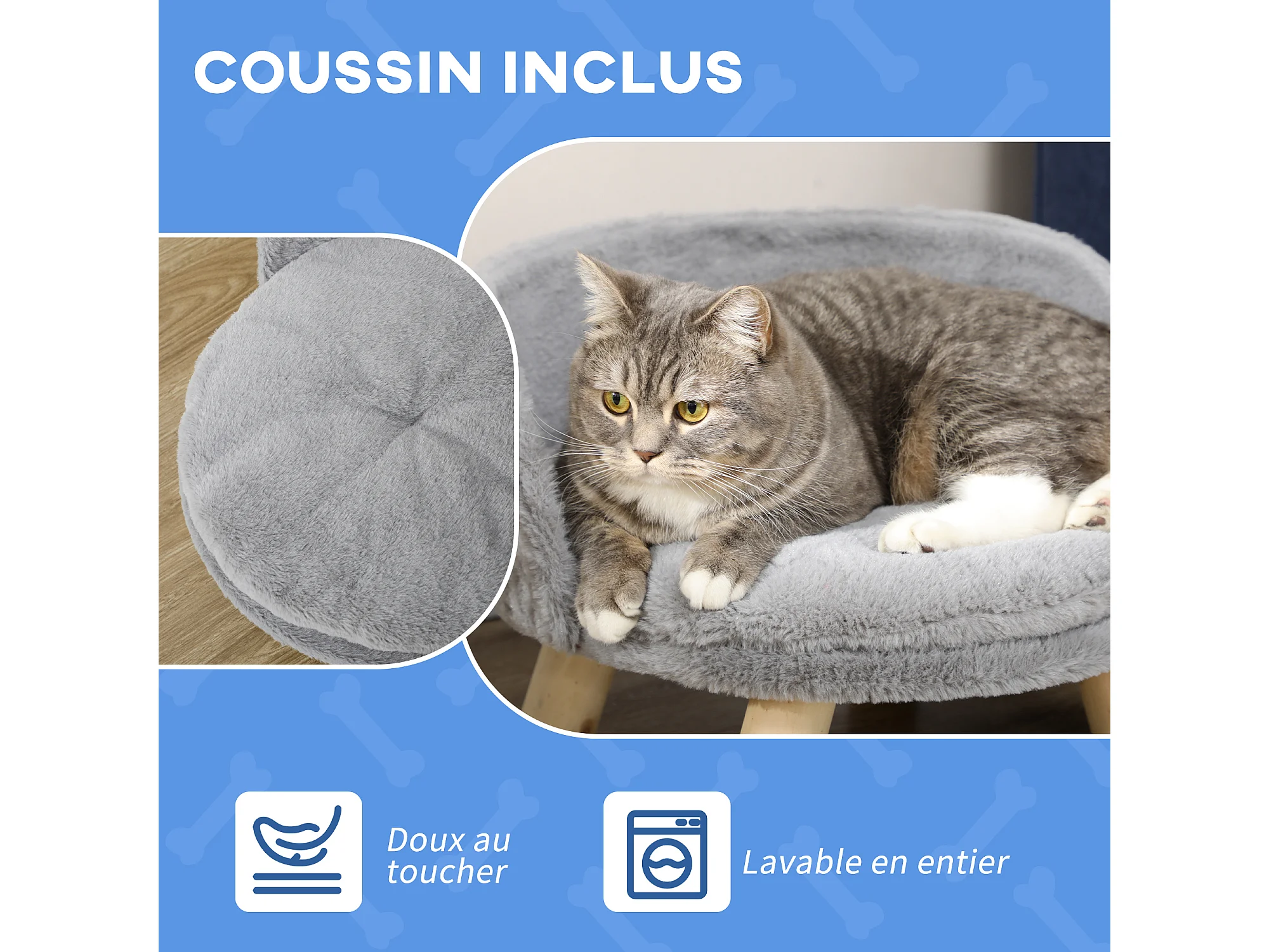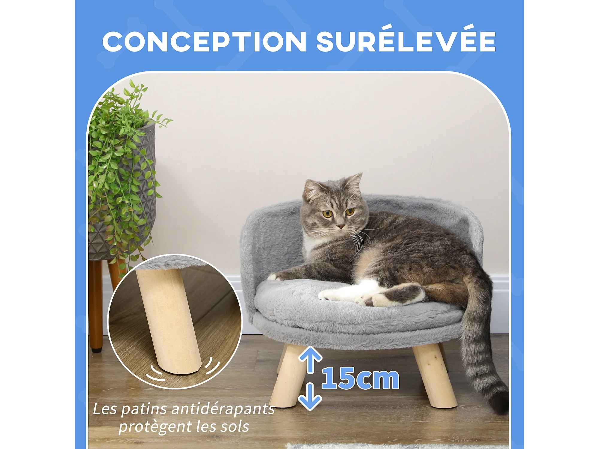 Canapé panier chien ou chat design scandinave housse amovible pieds en bois peluche douce gris
