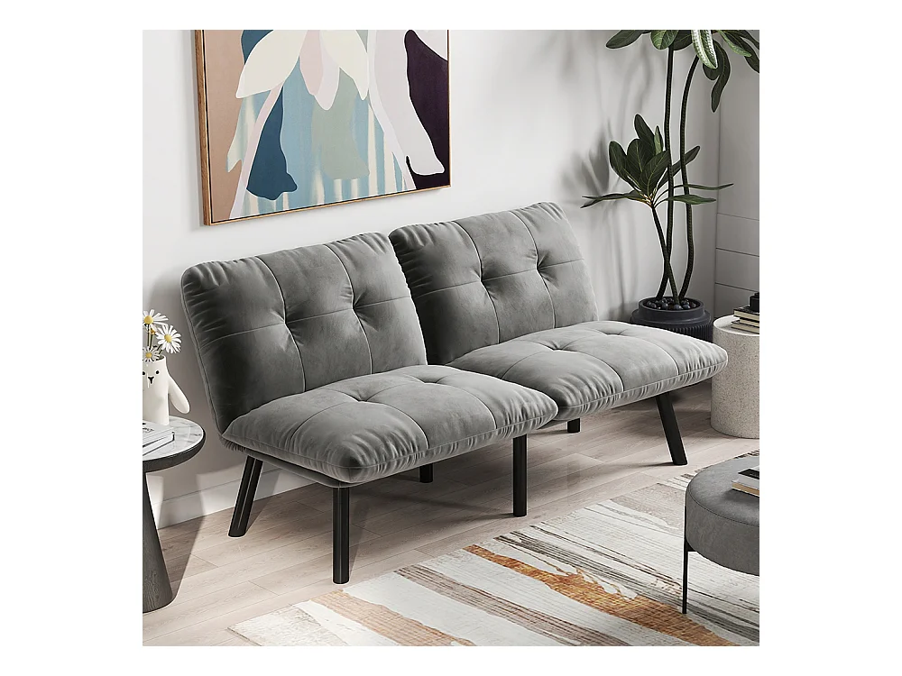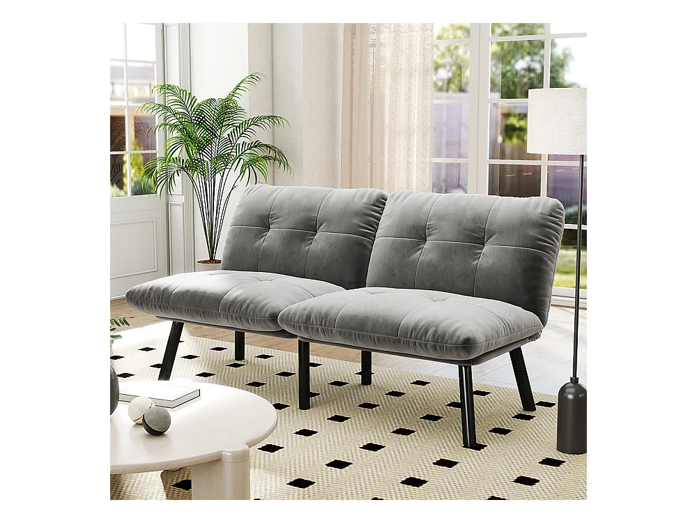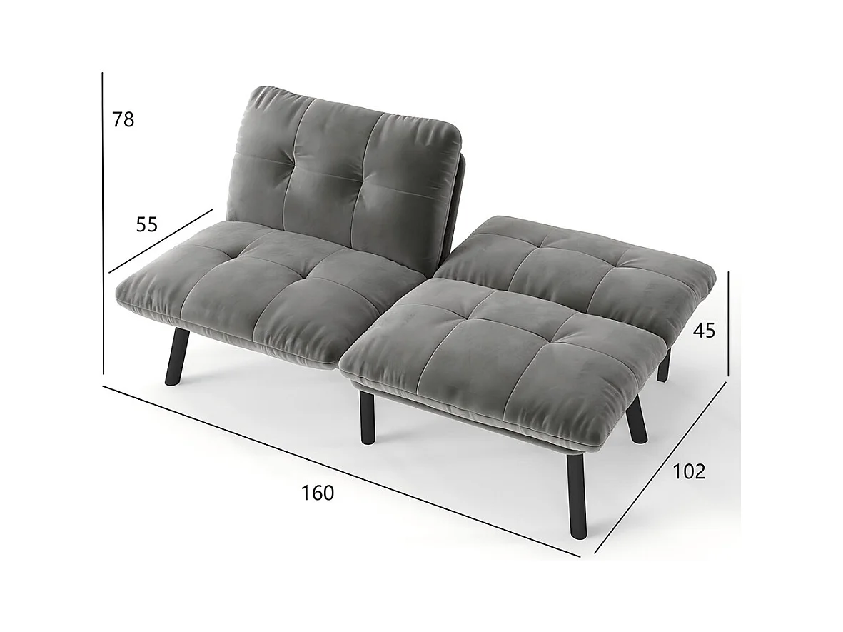 Canapé-lit pliable, 2 places, avec fonction couchage, gris
