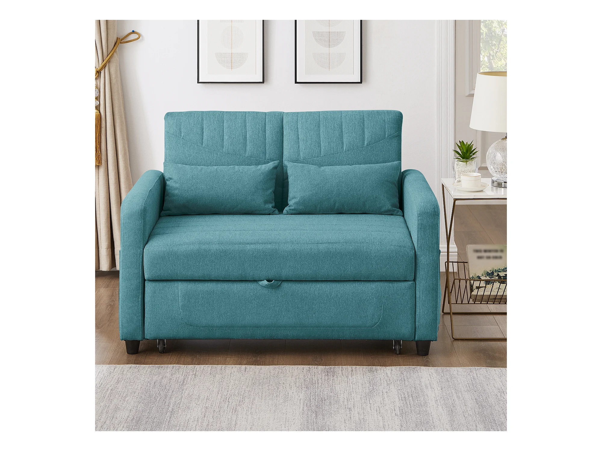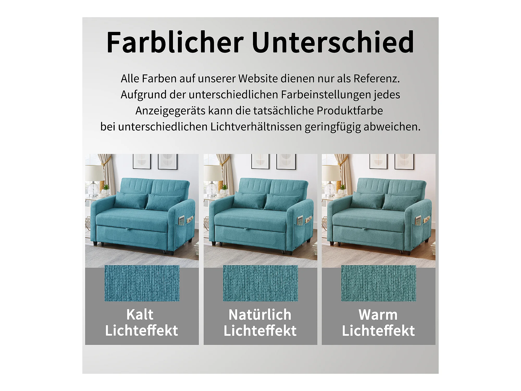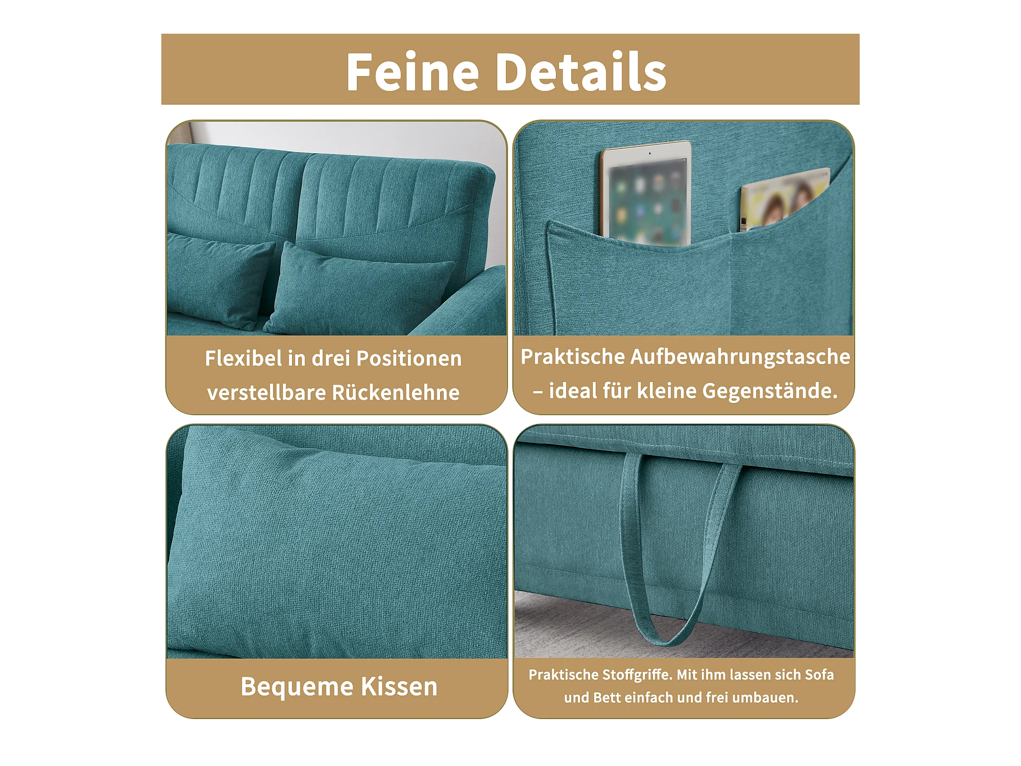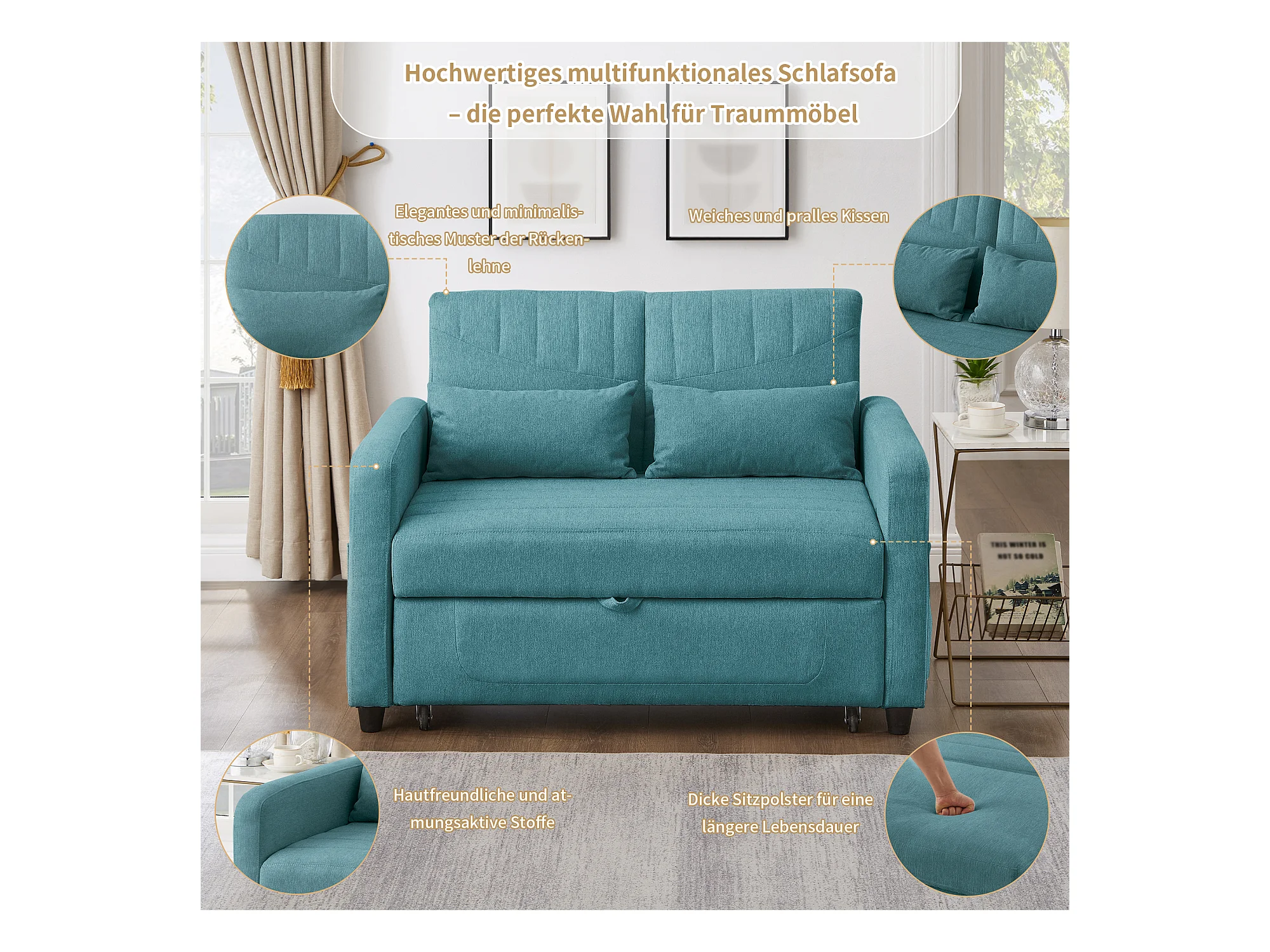 Canapé-lit pliant 2 places extensible - 90 x 120 cm - dossier réglable - tissu en coton et lin - bleu