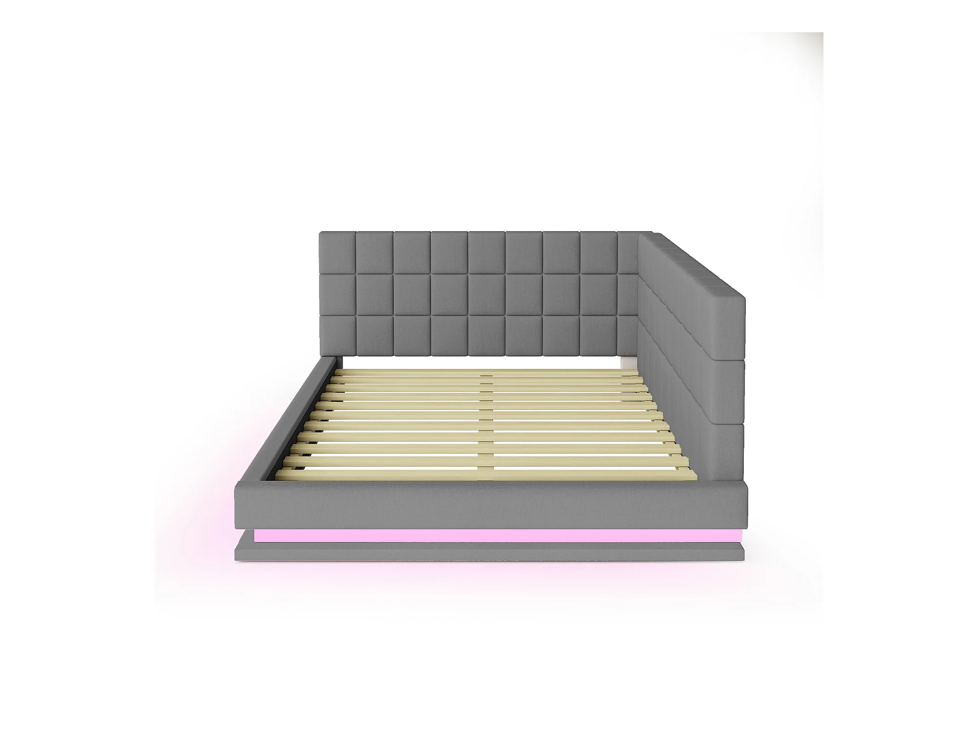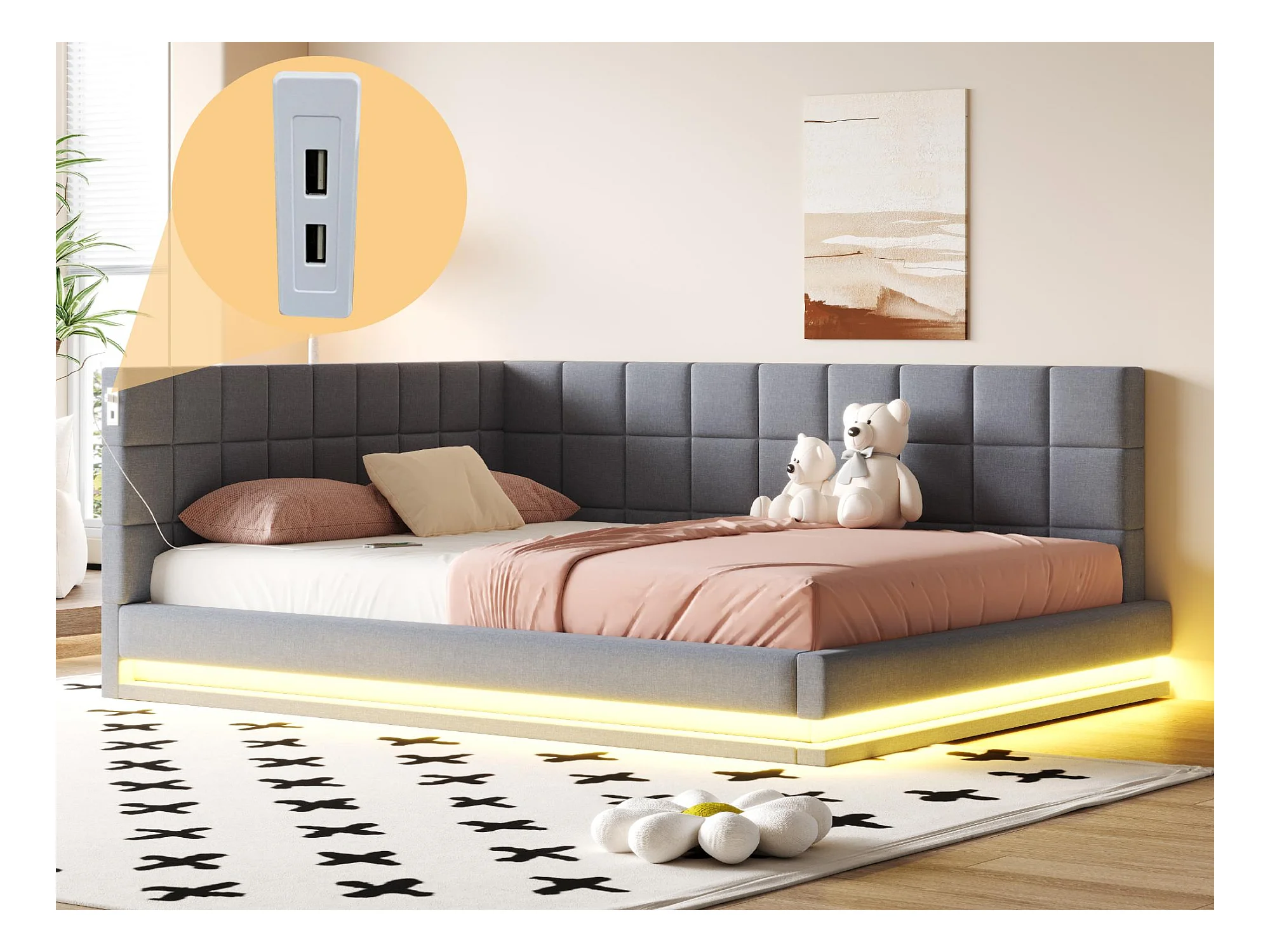 Canapé-lit rembourré 160x200cm - avec bande lumineuse LED - avec prise USB - tissu velours - gris