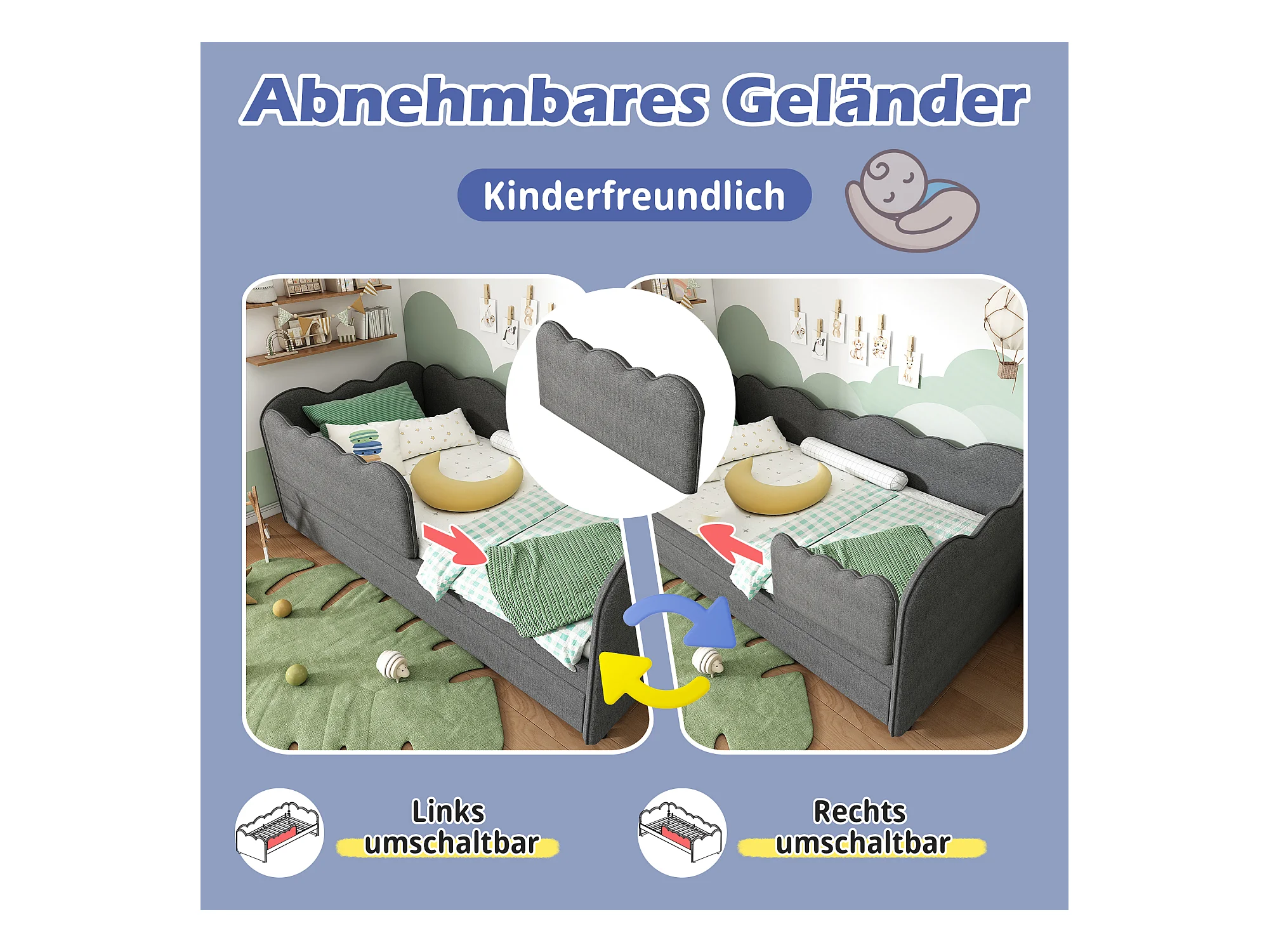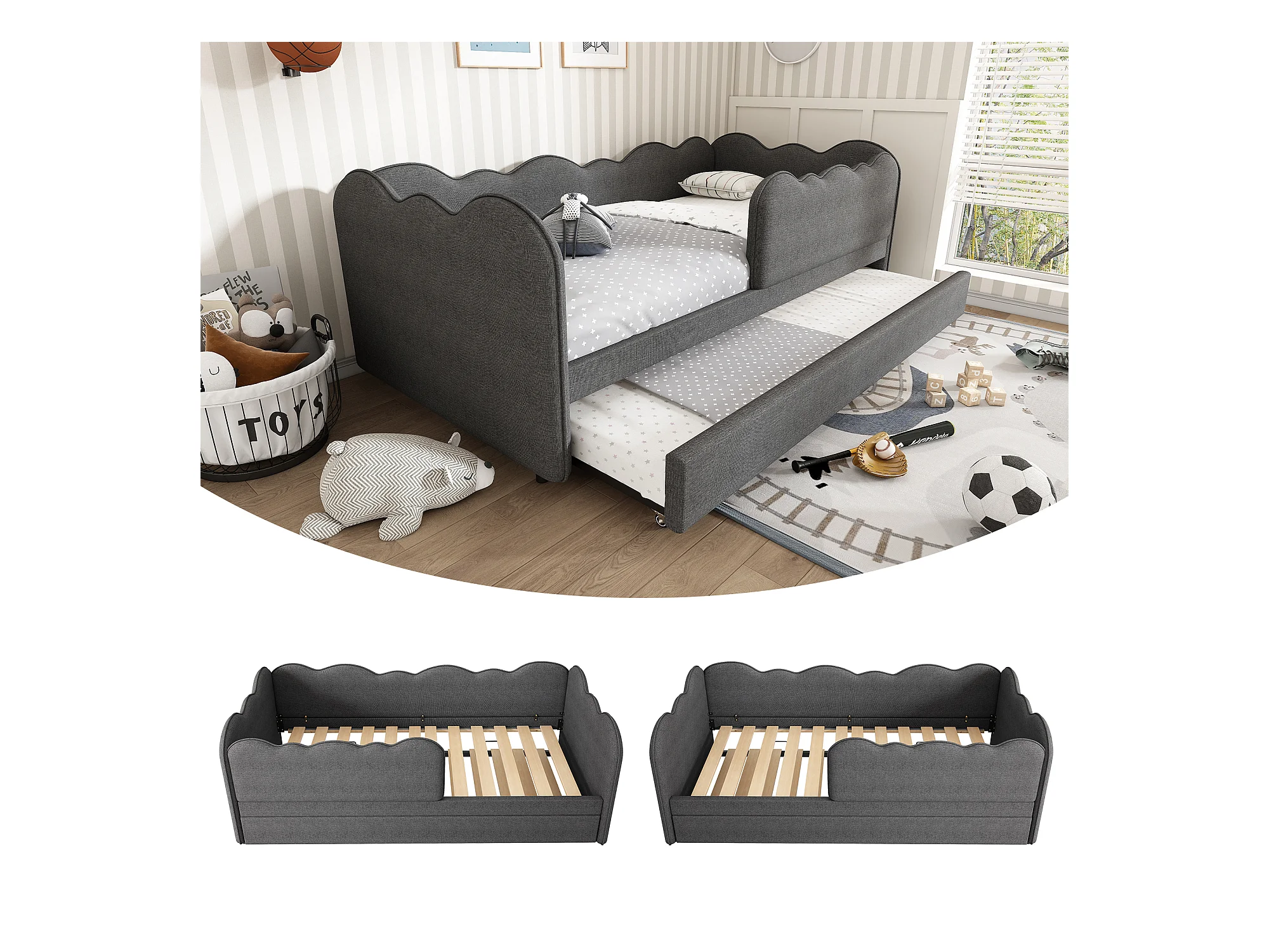 Canapé-lit rembourré - 90 x 190 cm - avec lit gigogne 90 x 190 cm + sommier à lattes - lin - gris