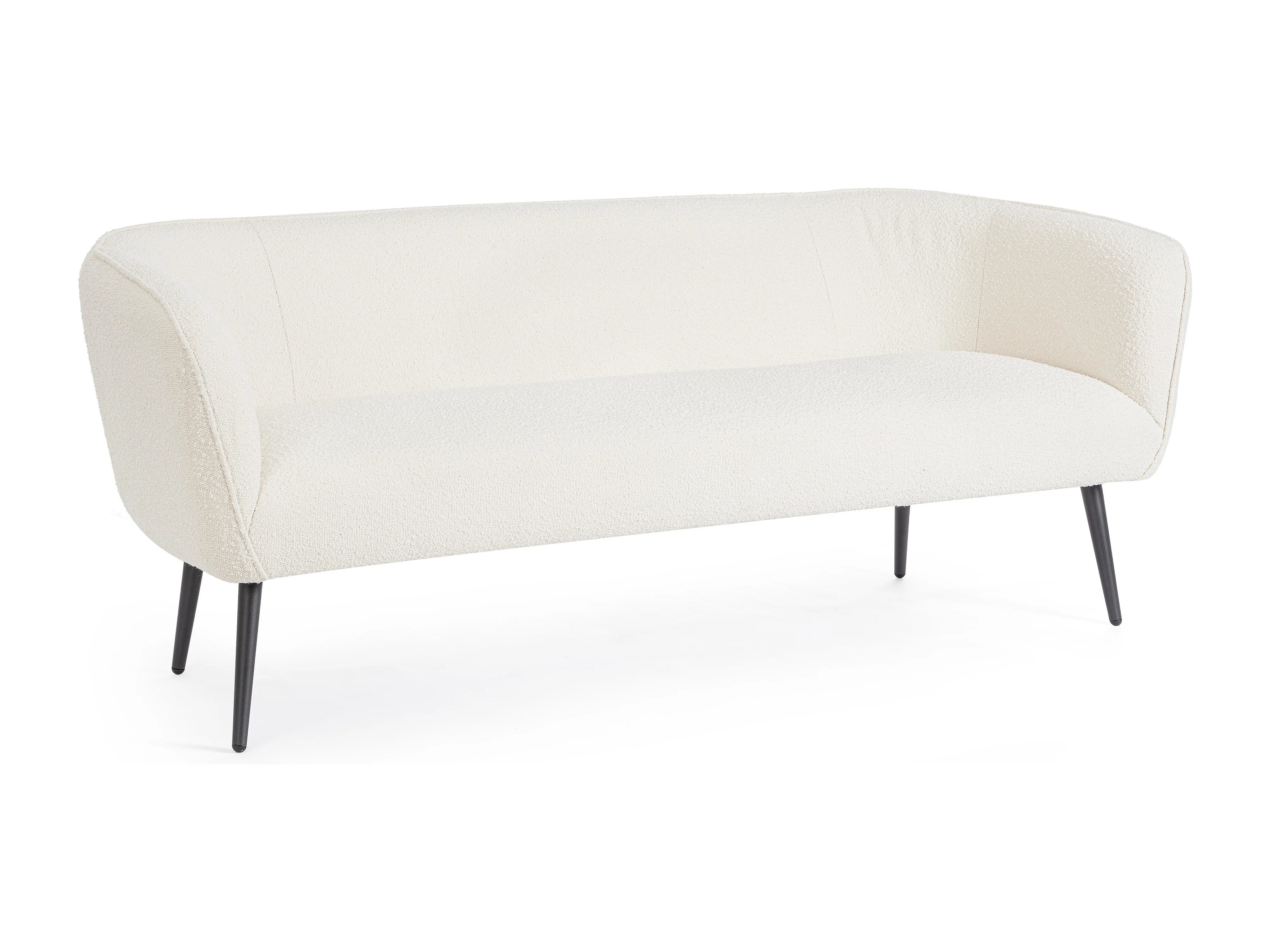 Canapé moderne 3 places tissu doux bouclé blanc et pieds acier noir Kadole 175cm