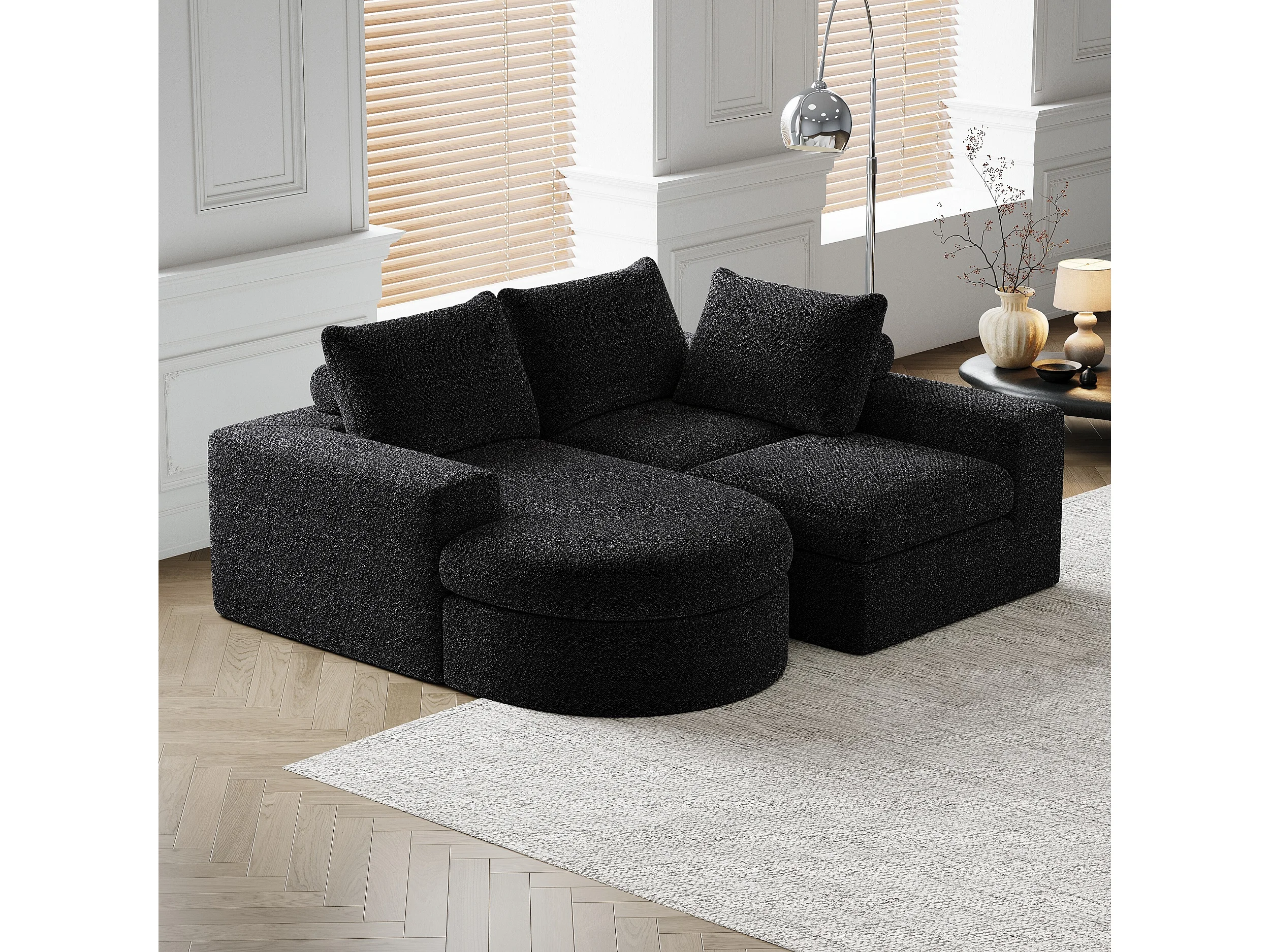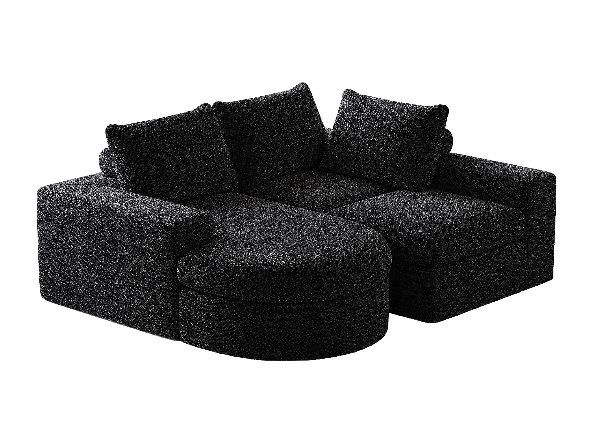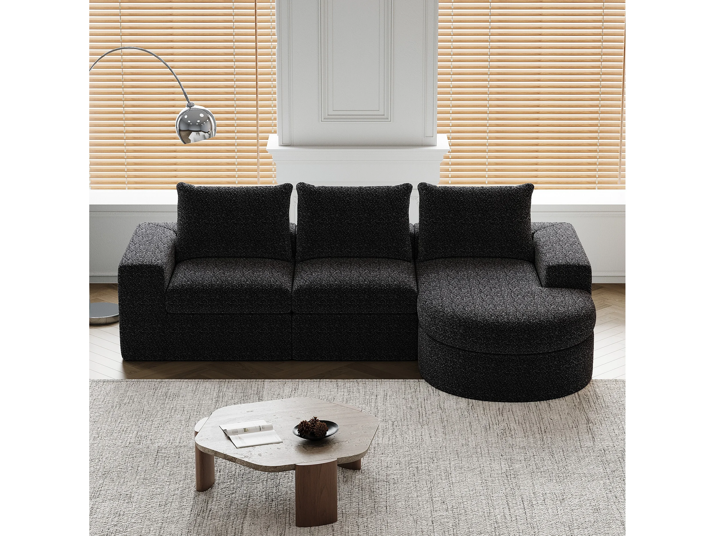 Canapé modulable 3 places en tissu chenille noir avec méridienne arrondie - dossier rembourré