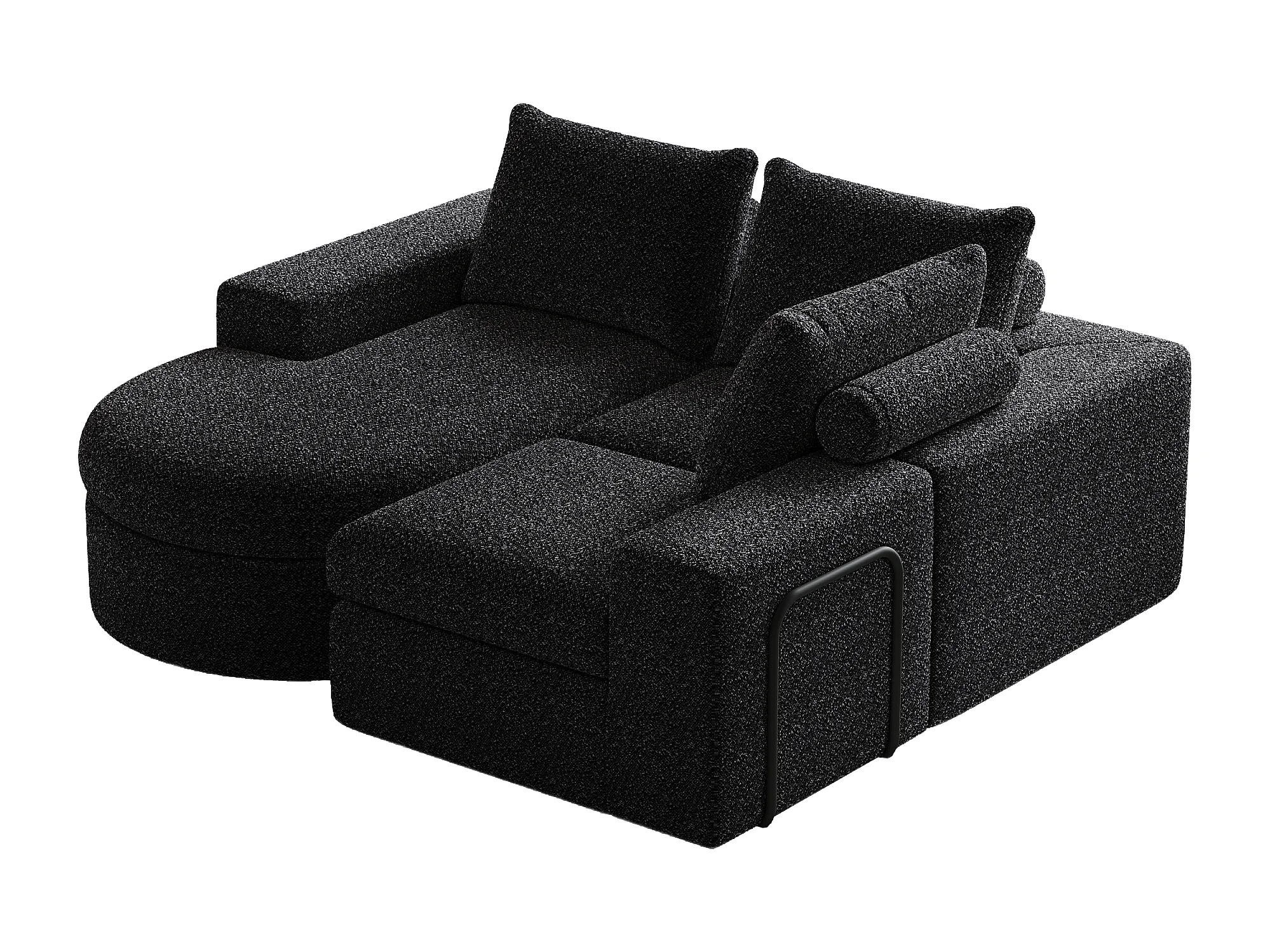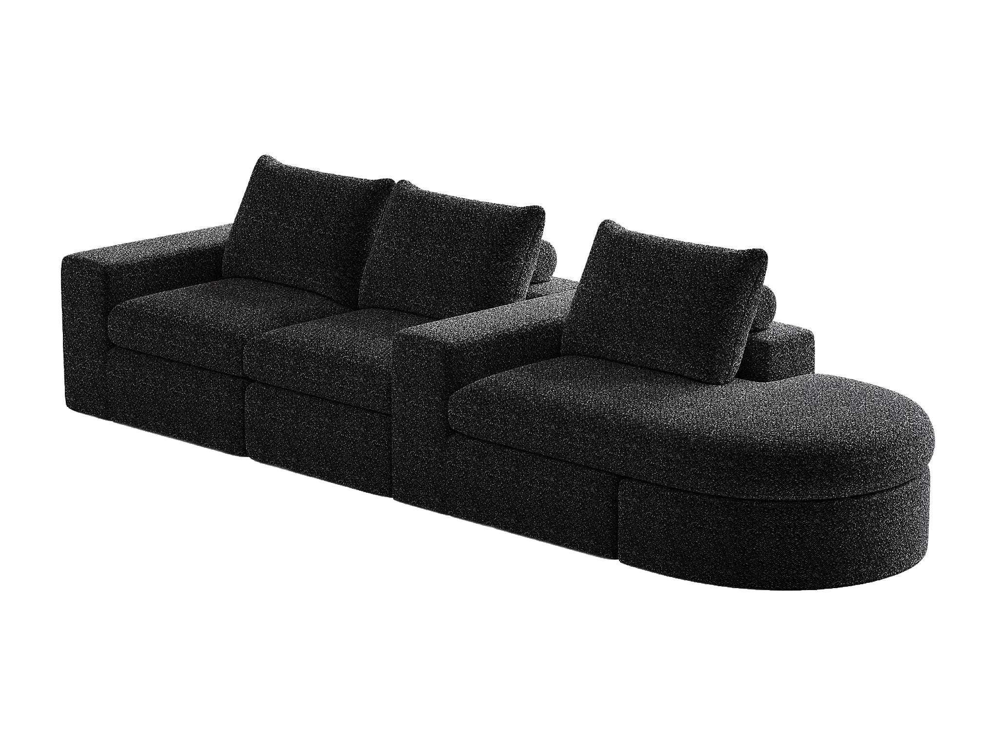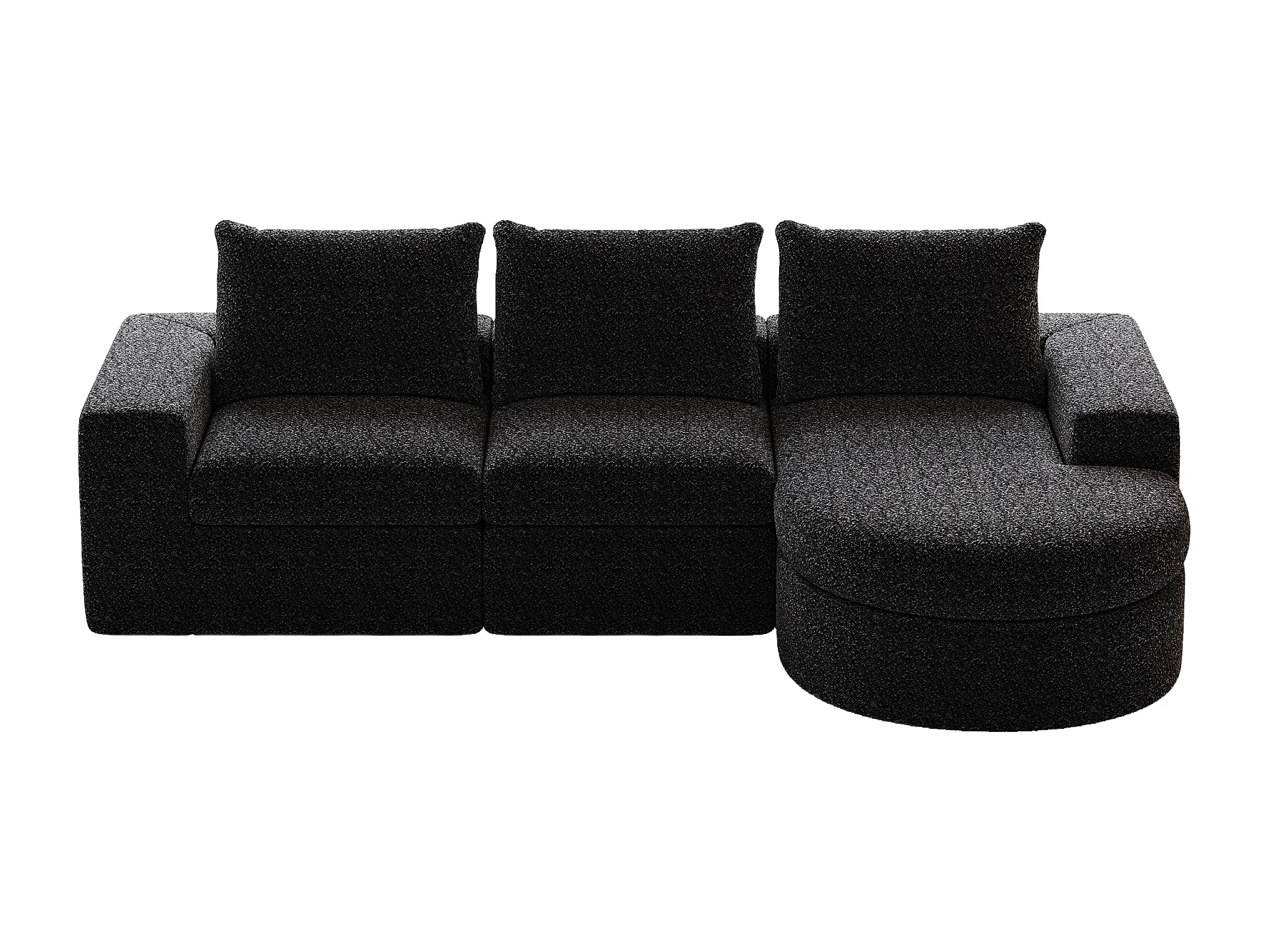 Canapé modulable 3 places en tissu chenille noir avec méridienne arrondie - dossier rembourré