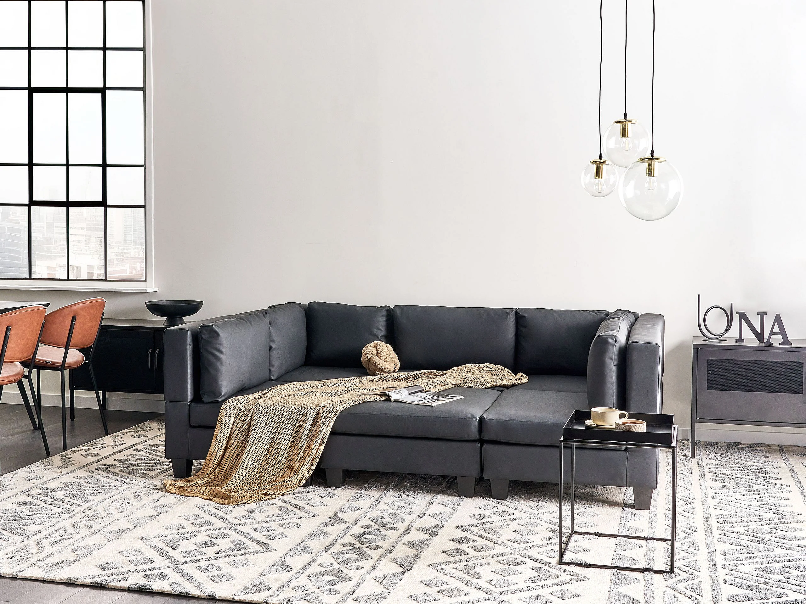 Canapé modulable en forme de U 5 places UNSTAD Cuir PU Noir