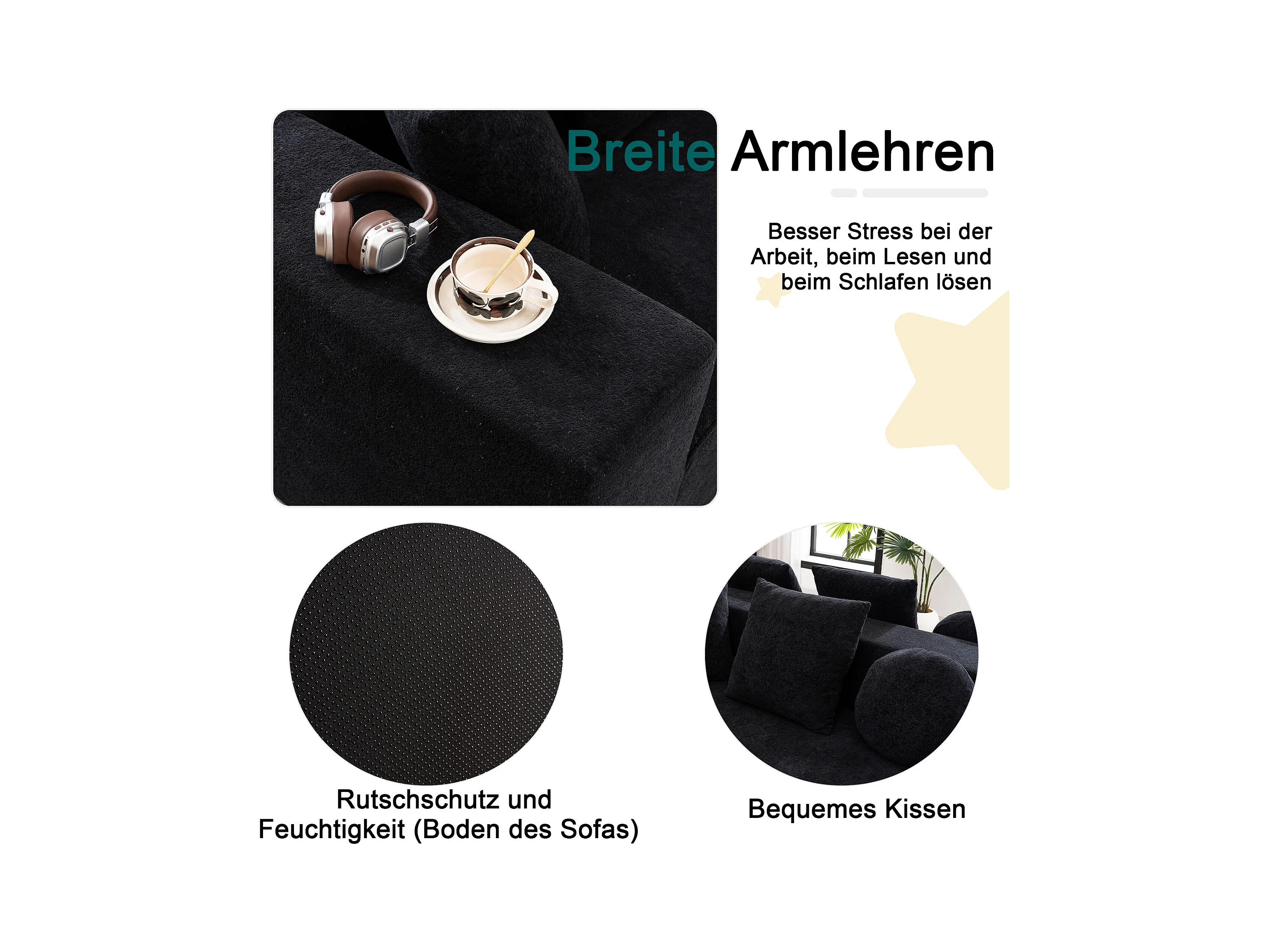 Canapé Modulable, Canapé Moderne en Tissu Chenille, Design Modularité, Noir (263x171x66 cm)
