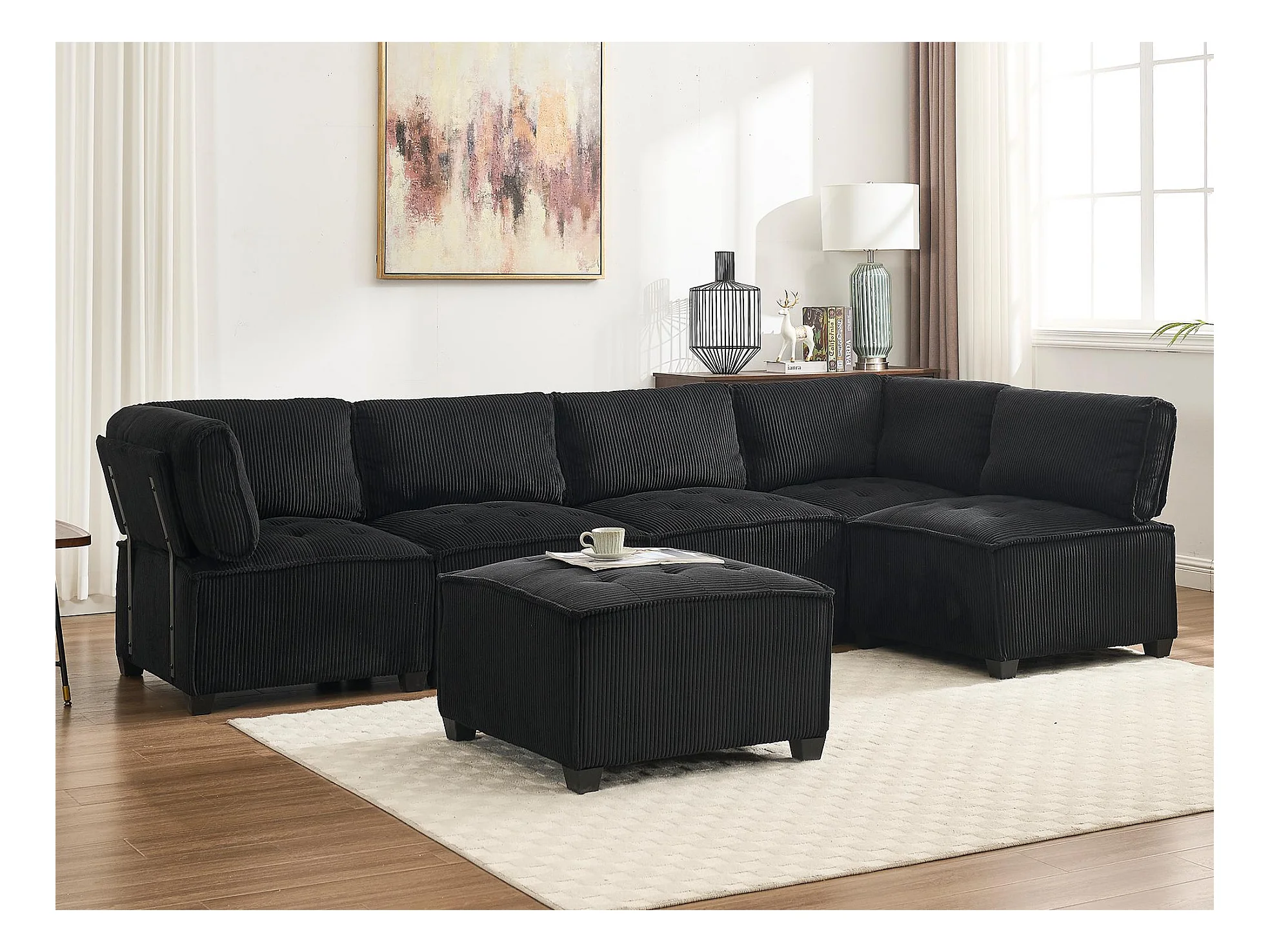 Canapé d'Angle Modulable 6 Places en Velours Noir - Modulable à Volonté - Design contemporain