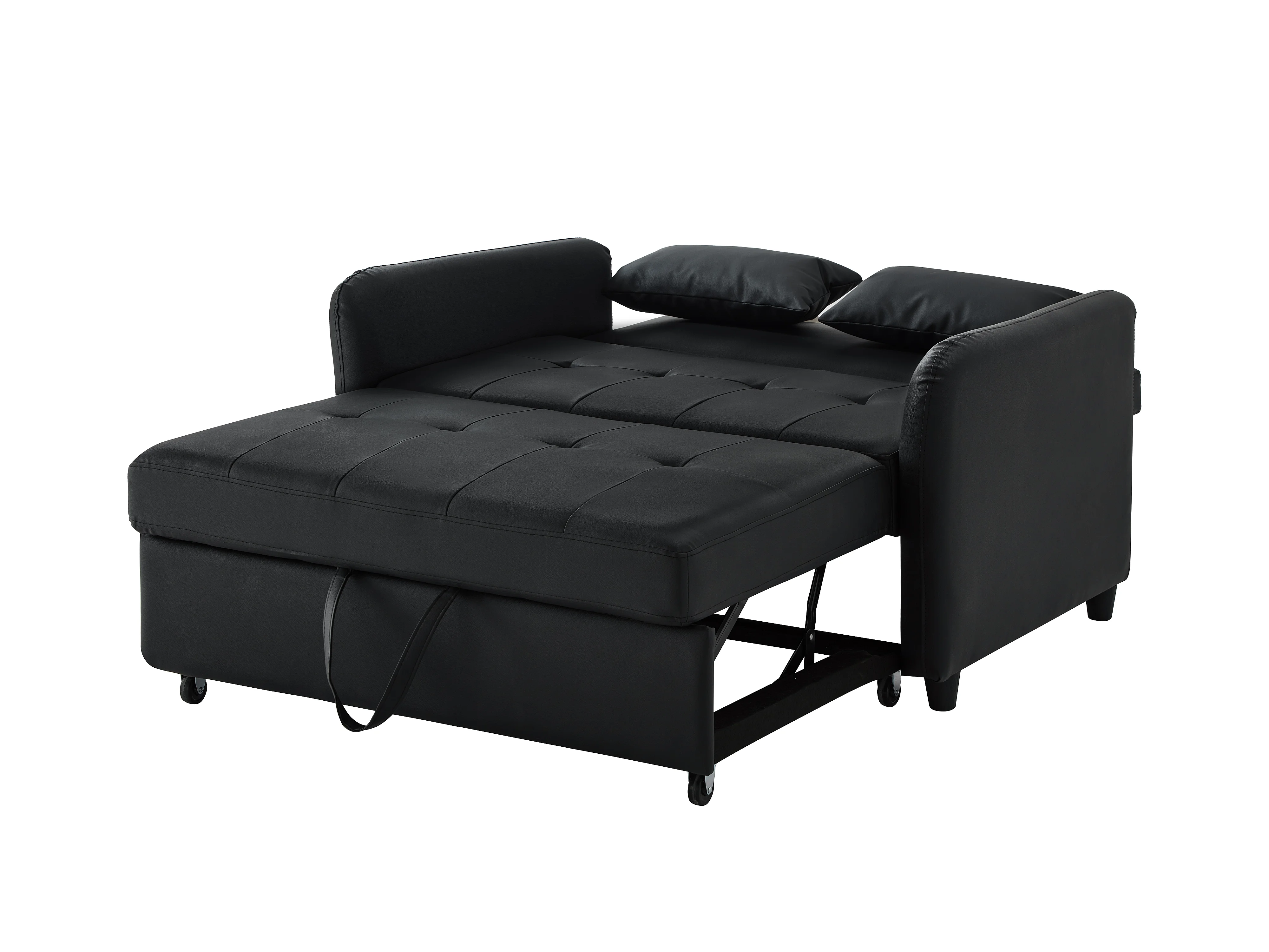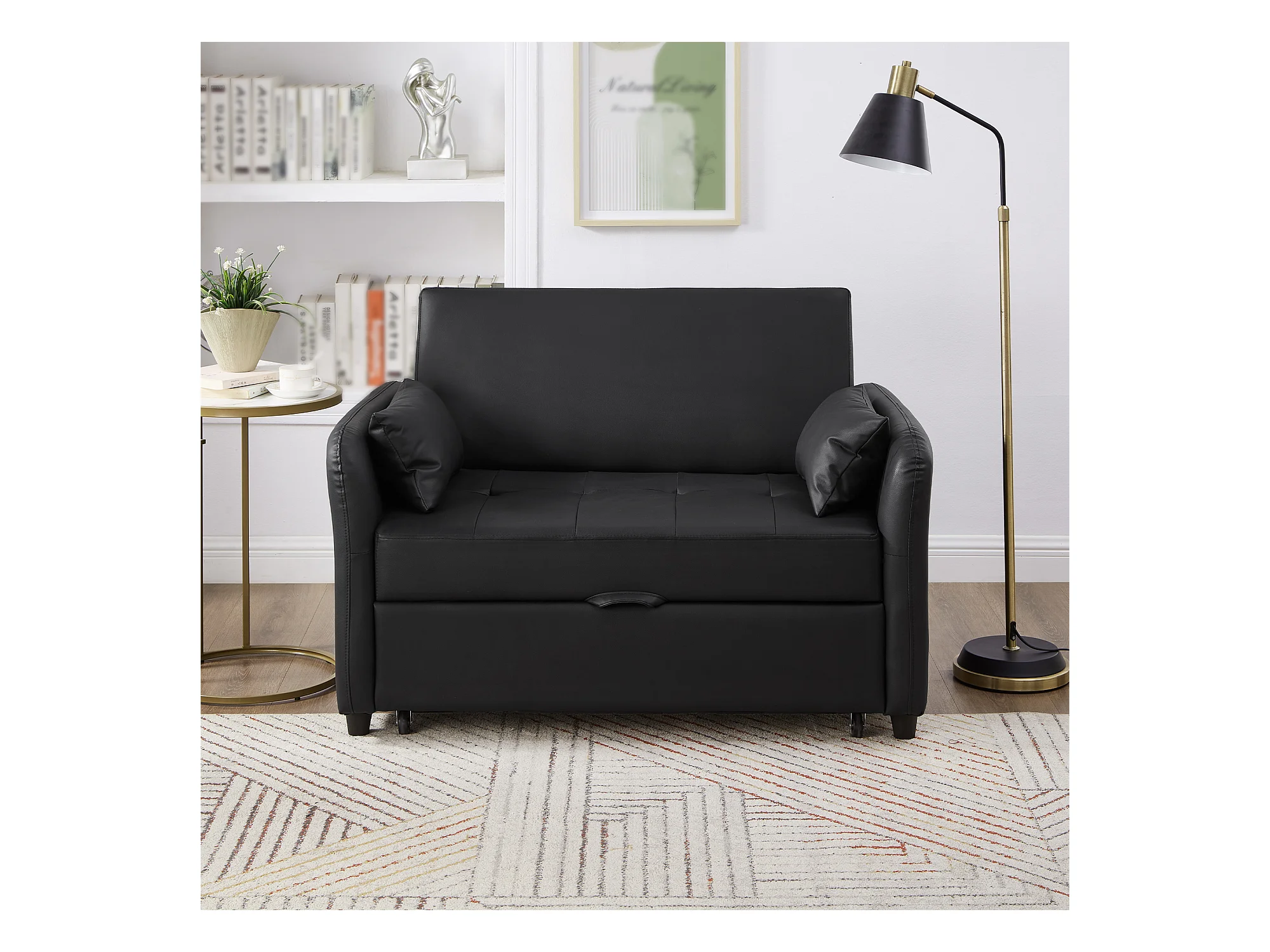 Canapé multifonctionnel 122x83x82cm - avec fonction couchage - canapé-lit double escamotable - dossier réglable sur 3 niveaux - matériau PU imperméable - noir