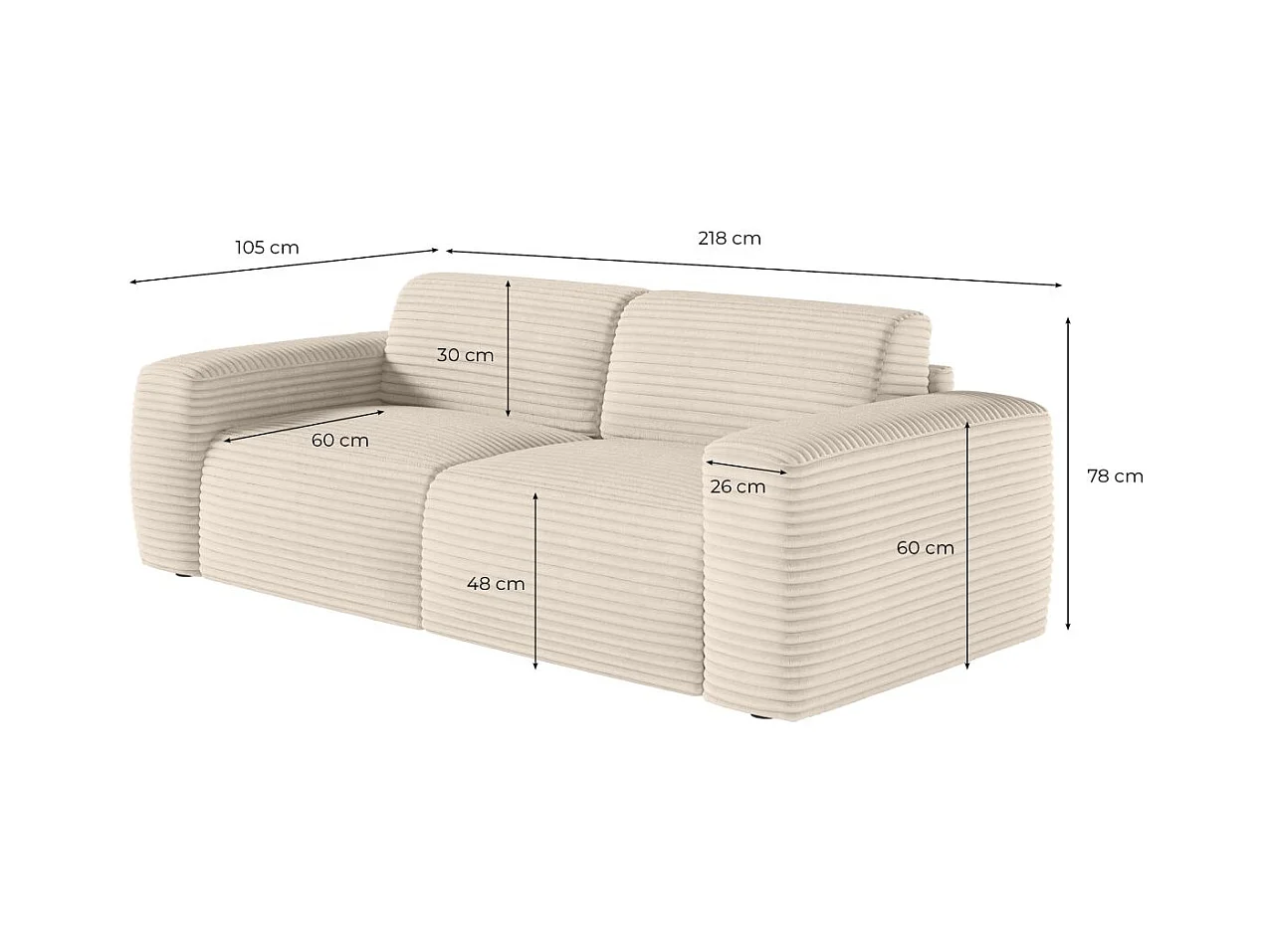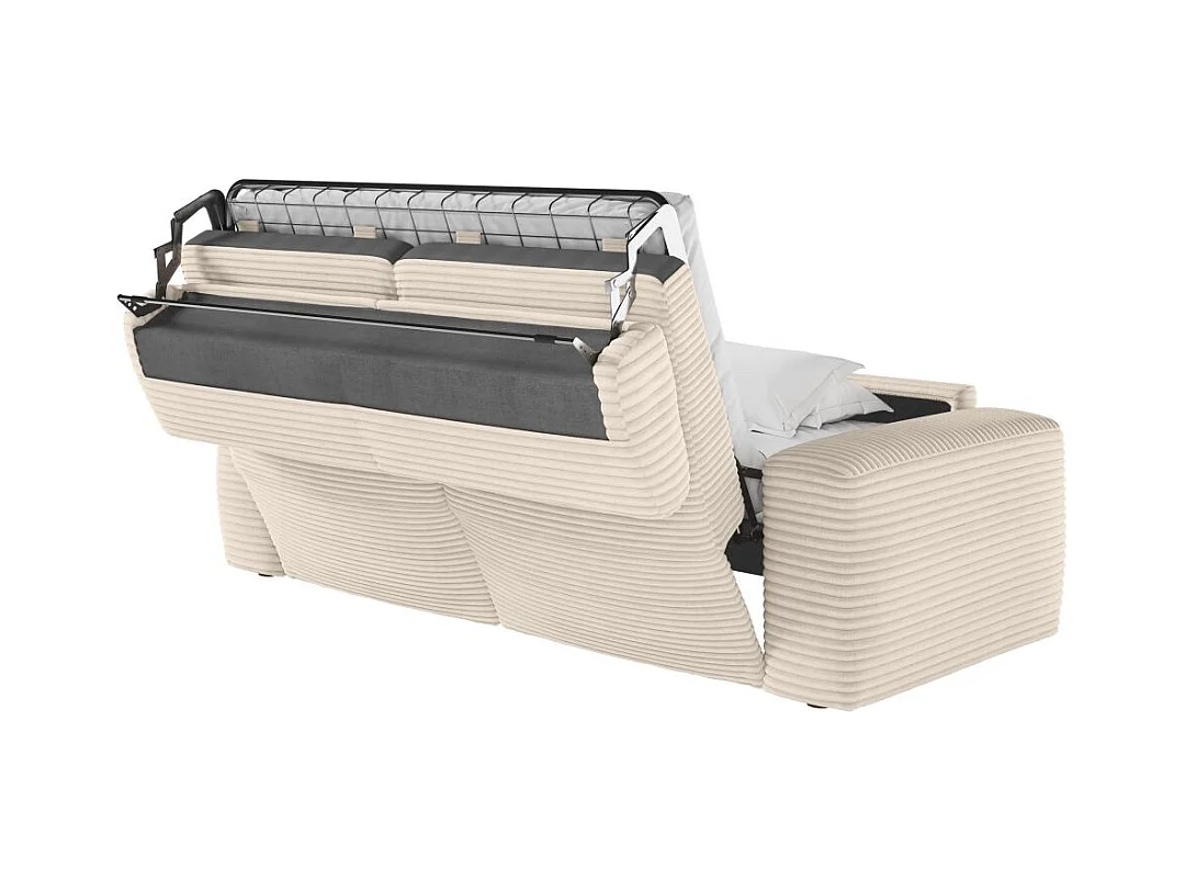 Canapé PACO convertible 3 places couchage quotidien 140x190cm matelas 17cm velours côtelé beige
