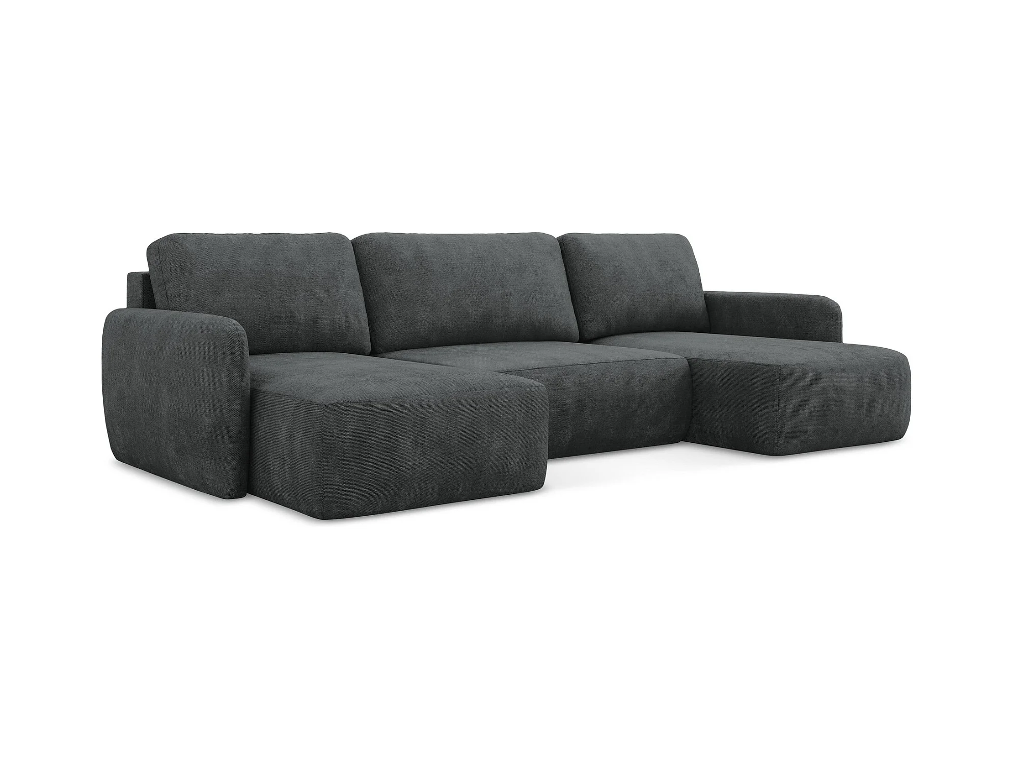 Canapé panoramique 4 places convertible en tissu chenille - gris foncé - LILO