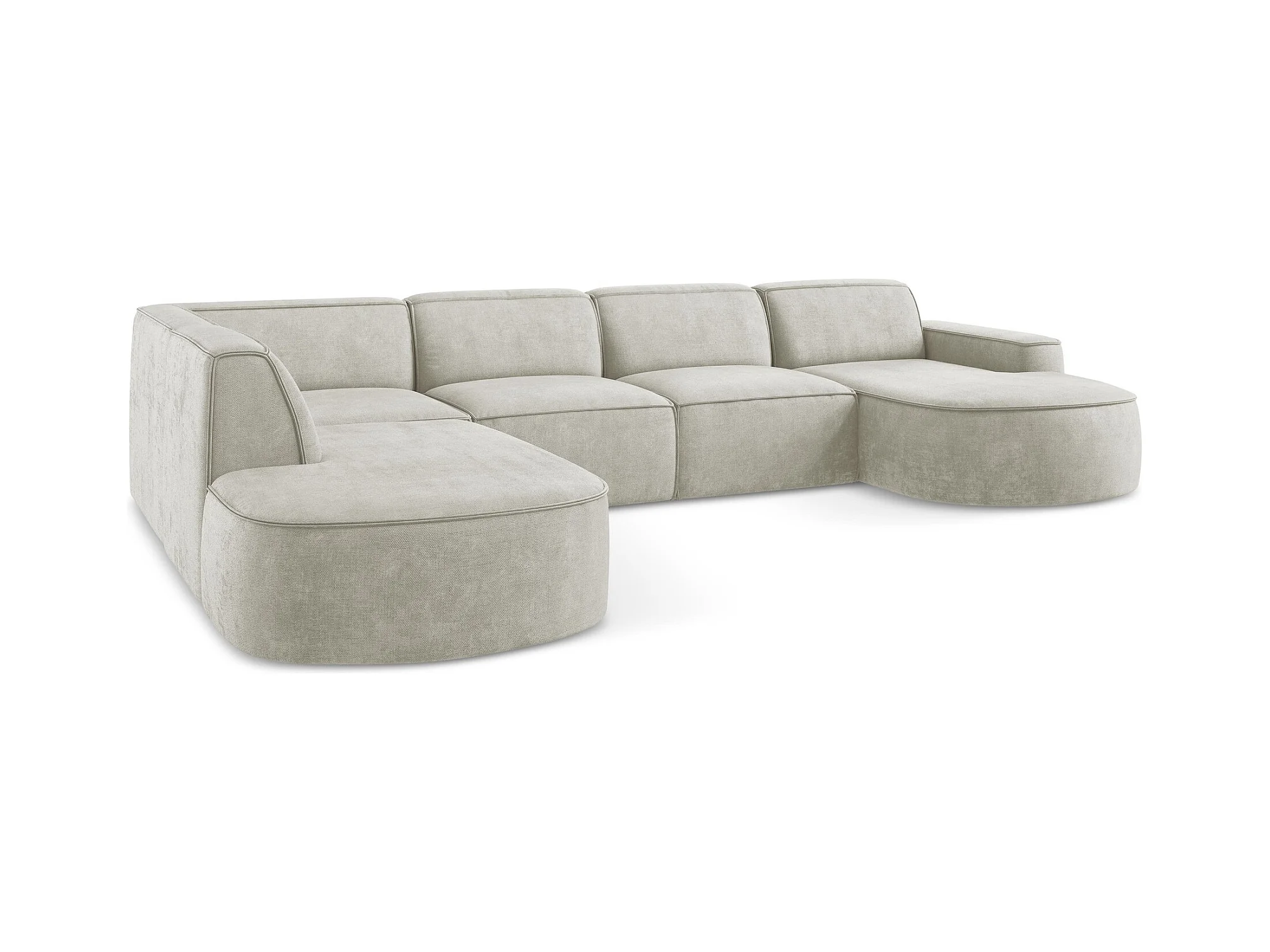 Canapé panoramique 5 places modulaire gauche en tissu chenille - perle - OMAO