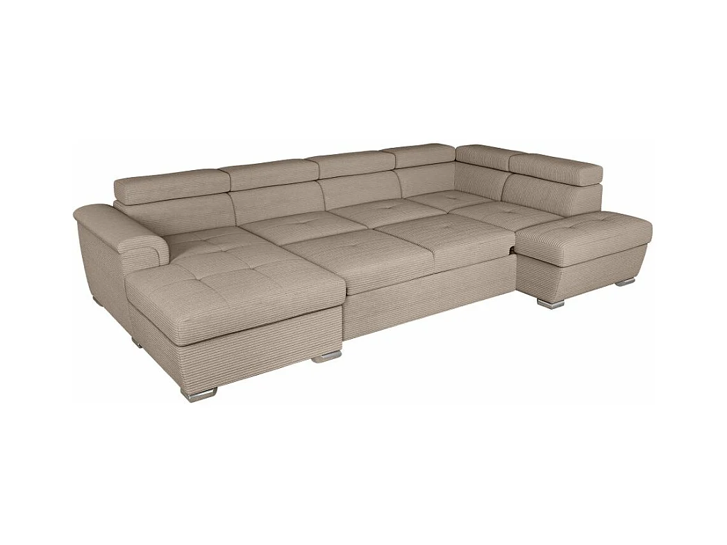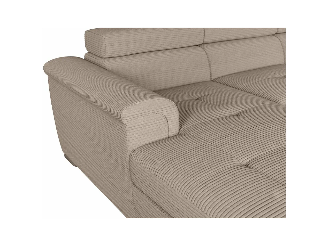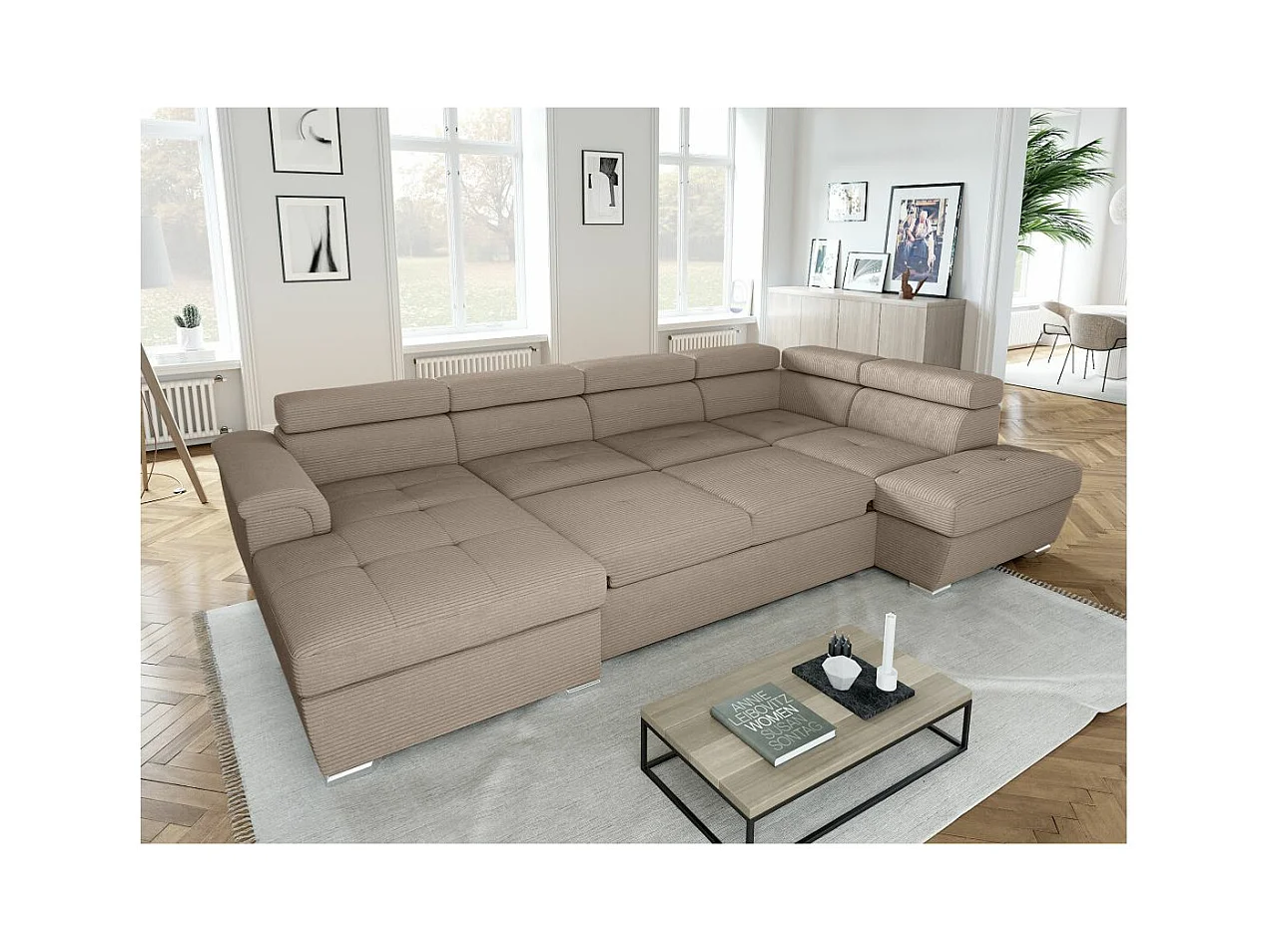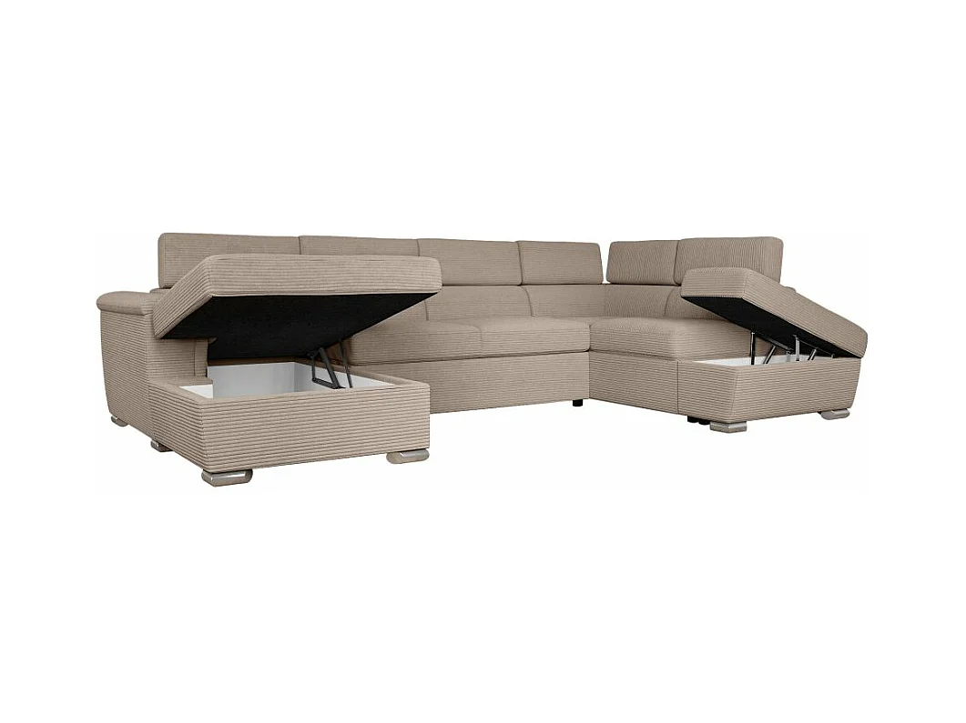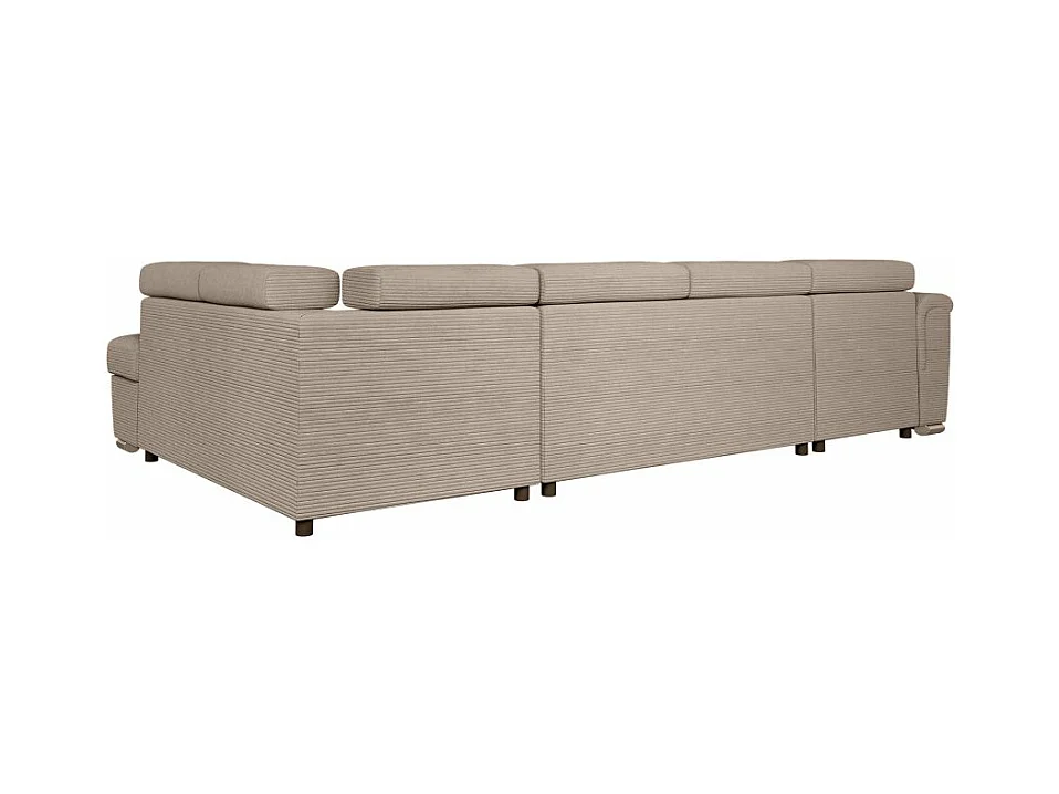 Canapé panoramique 6 places Paola convertible avec 2 coffres en velours côtelé - Taupe - L320,5 x P188 x H76cm - Loungitude