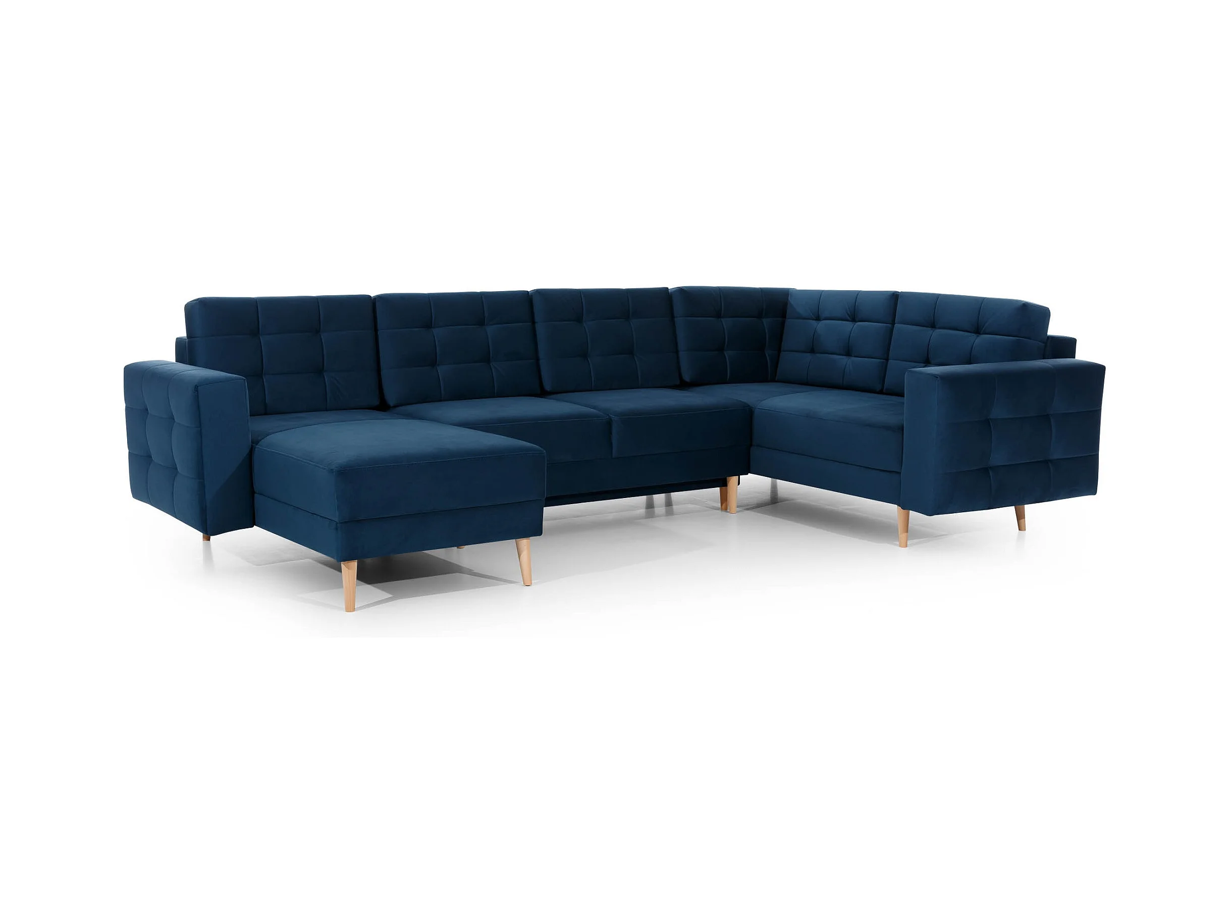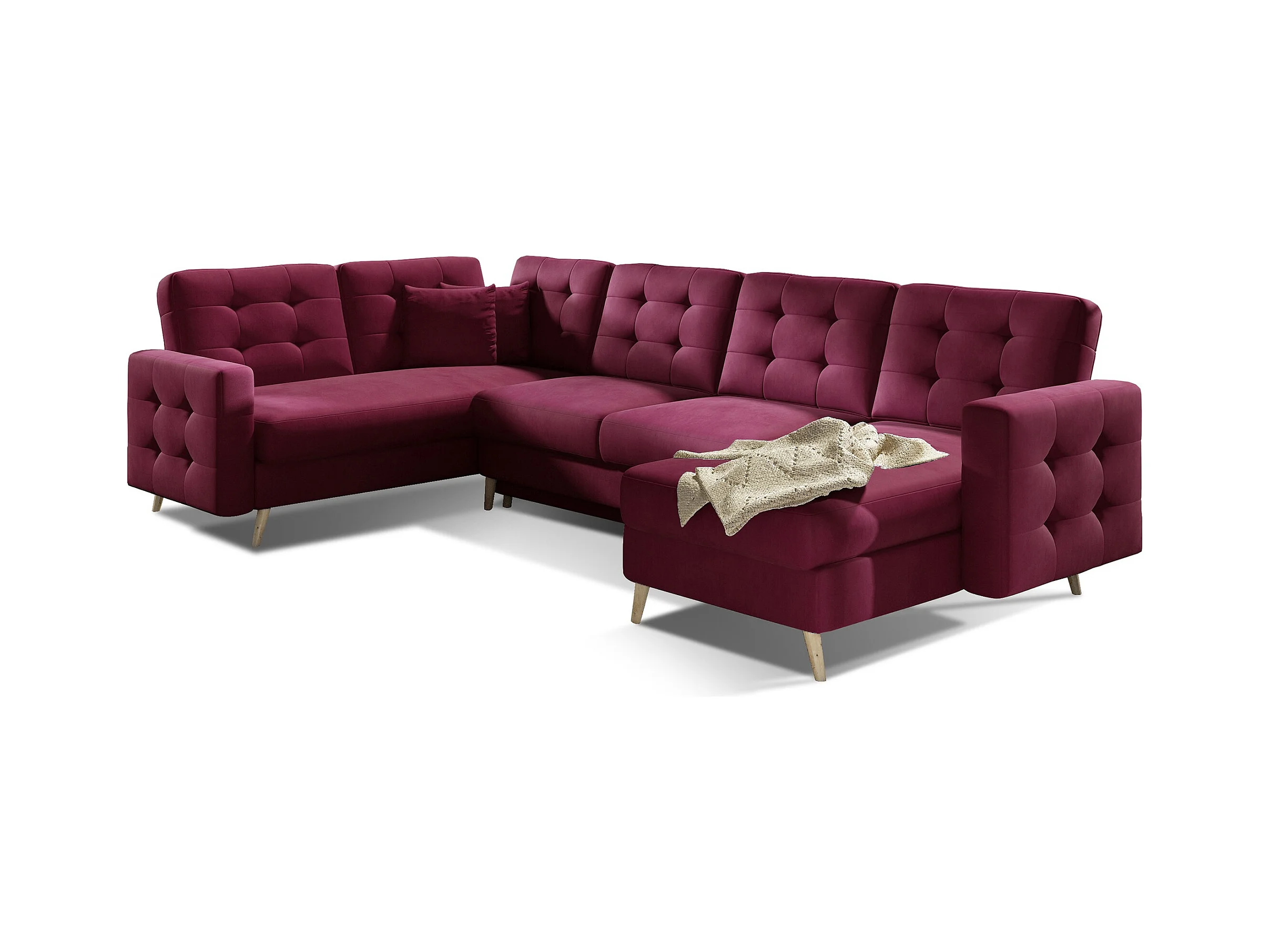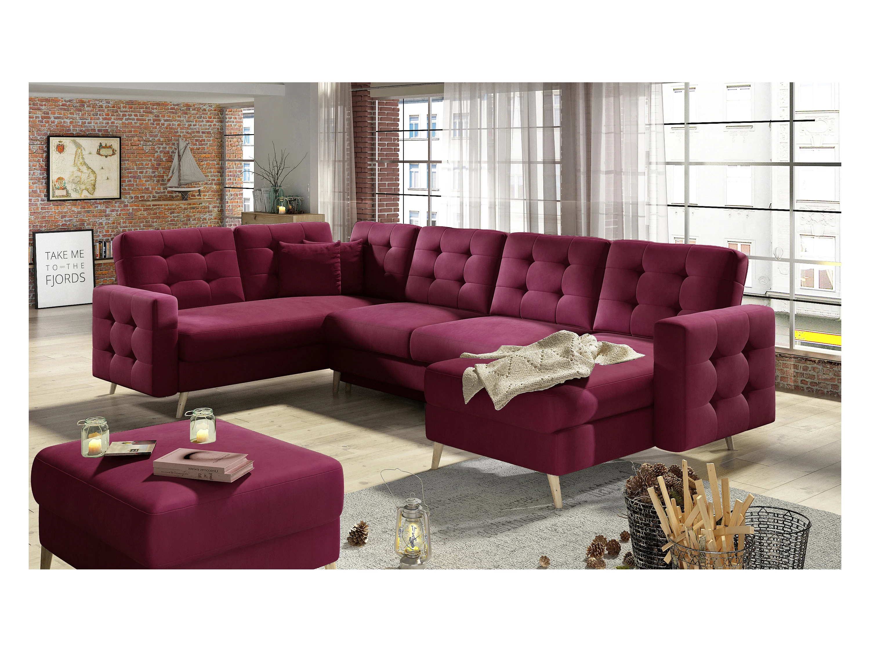 Canapé panoramique convertible ANSKA en tissu - Pieds bois naturel-Prune
