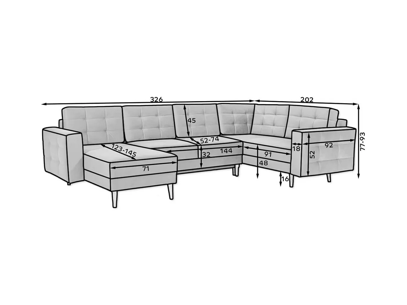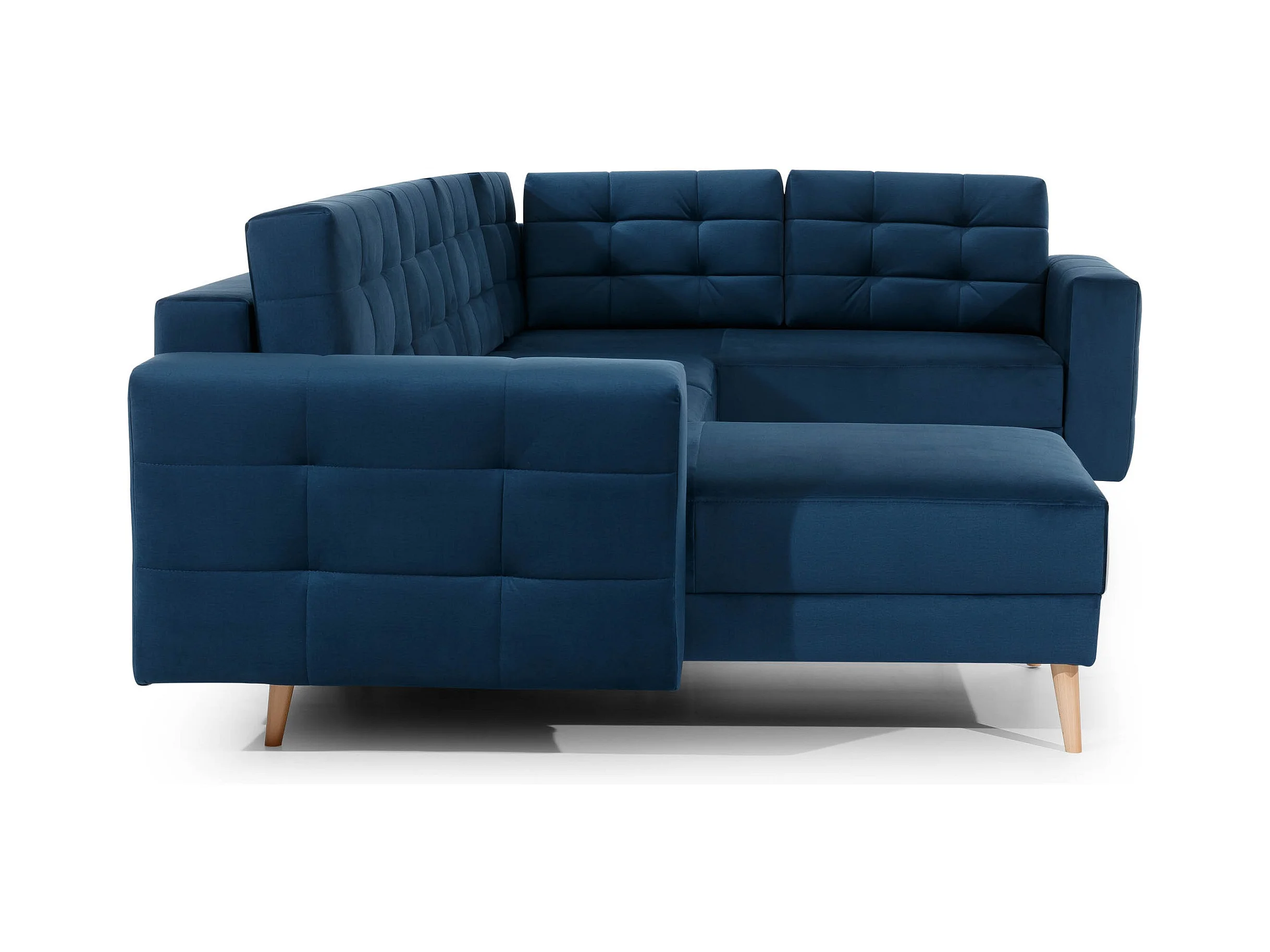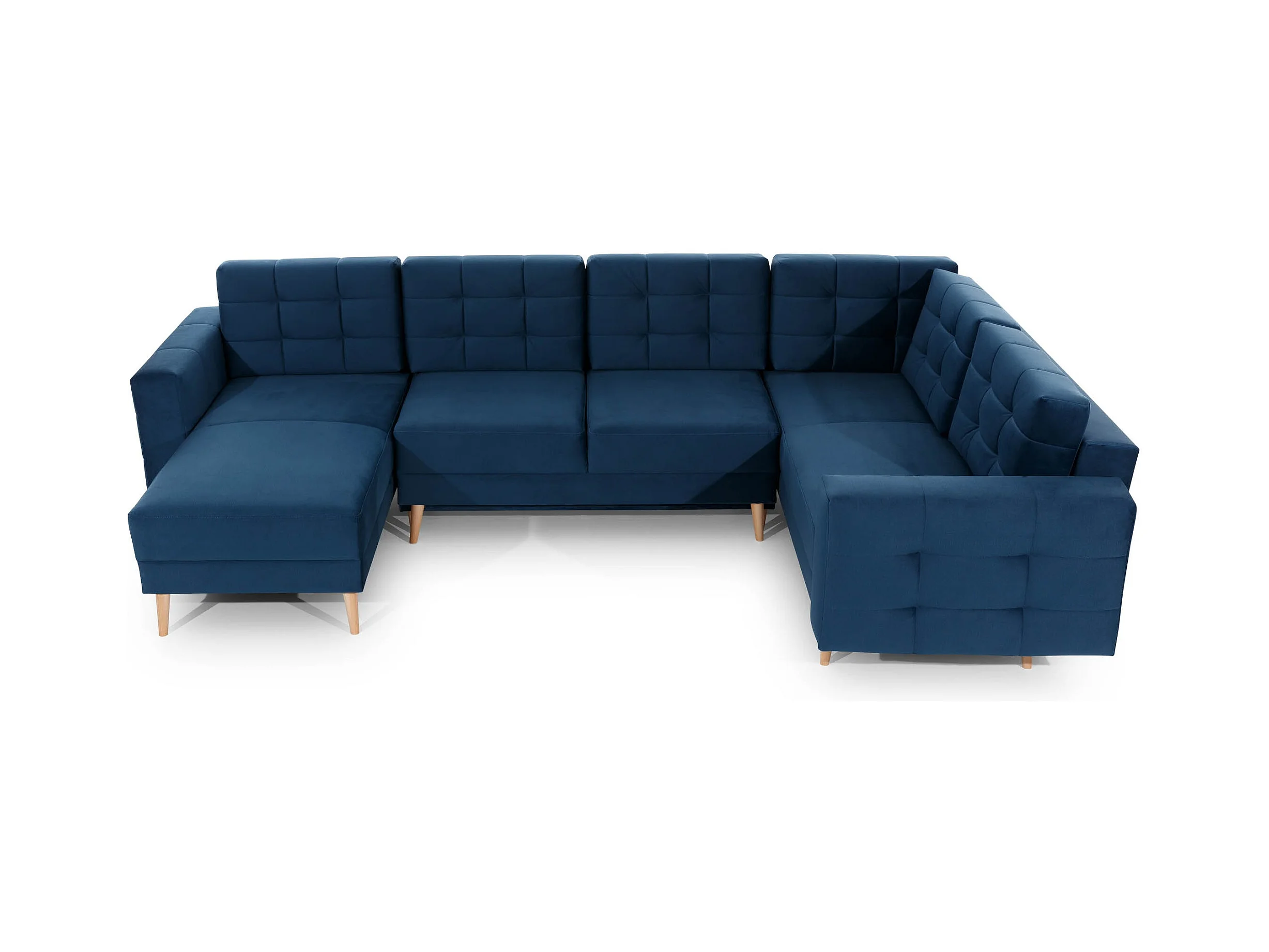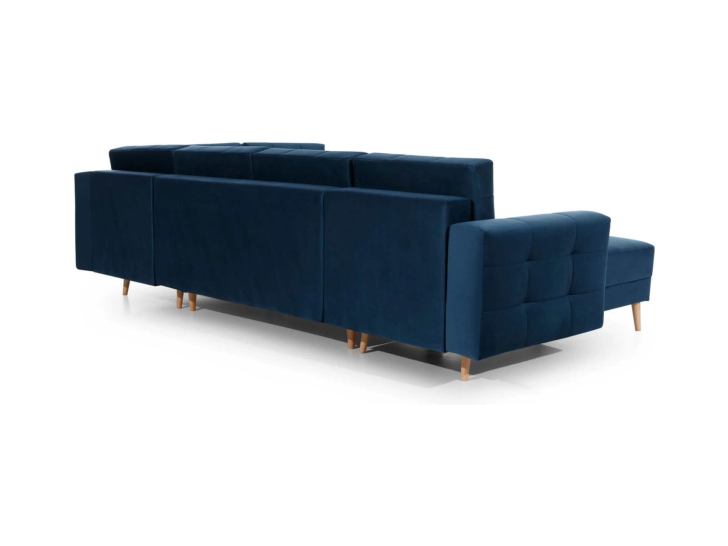 Canapé panoramique convertible ANSKA en tissu - Pieds bois naturel-Prune