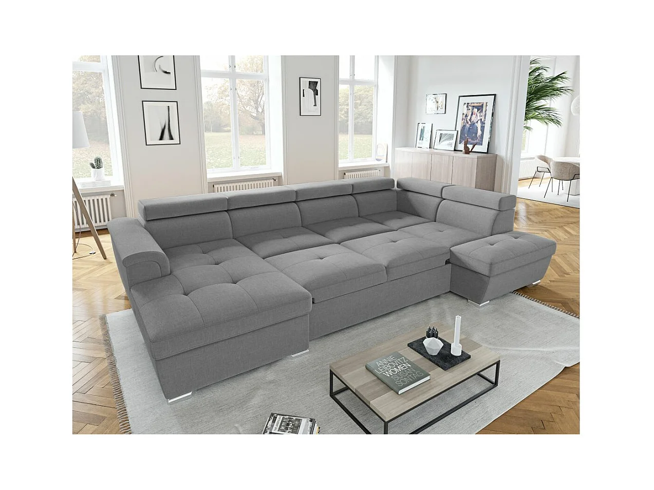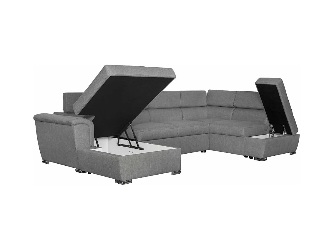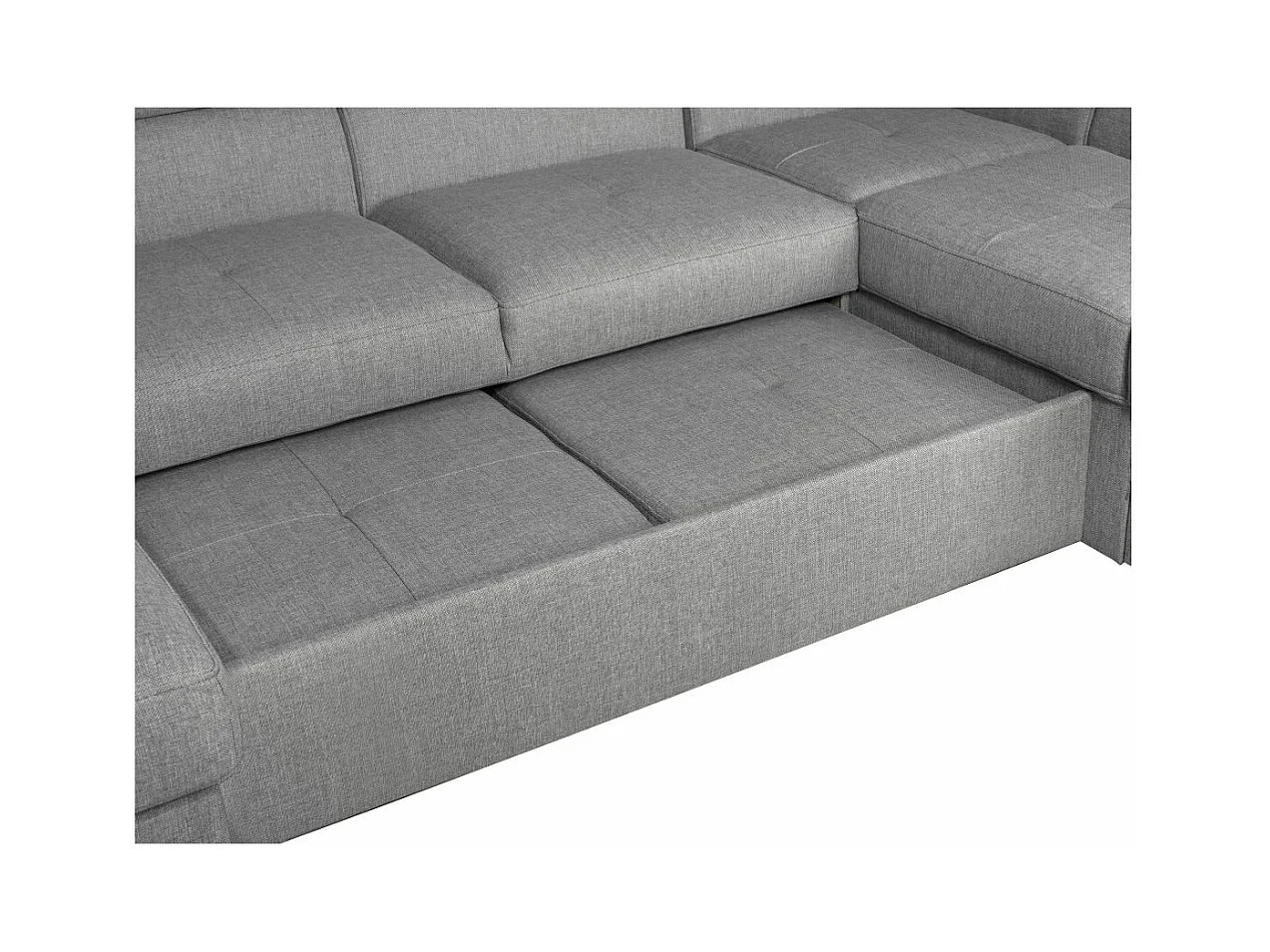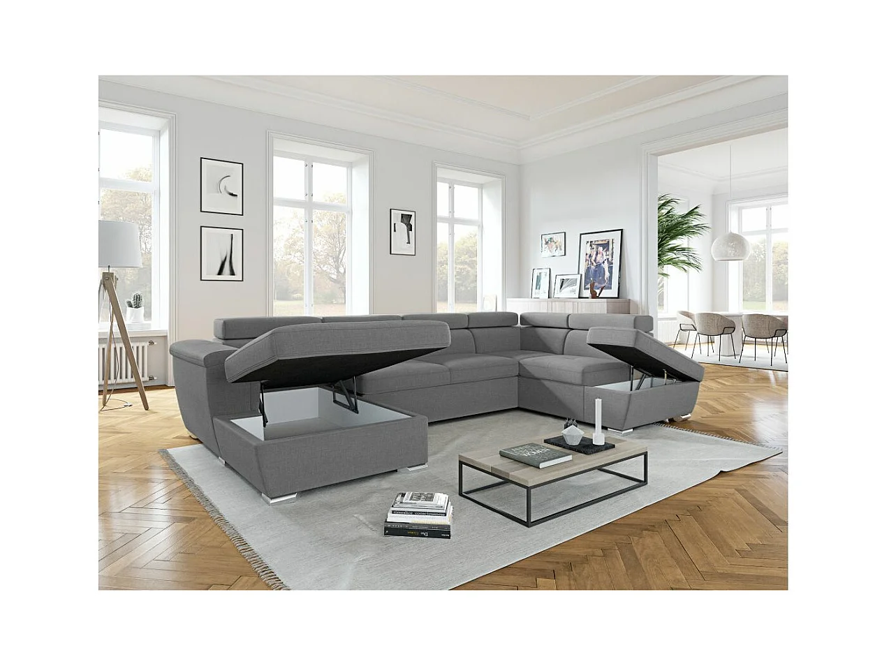 Canapé panoramique convertible avec 2 coffres Paola en tissu - Gris clair - L320,5 x P188 x H76cm - Loungitude