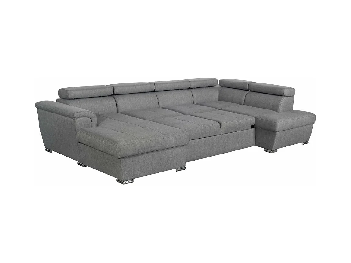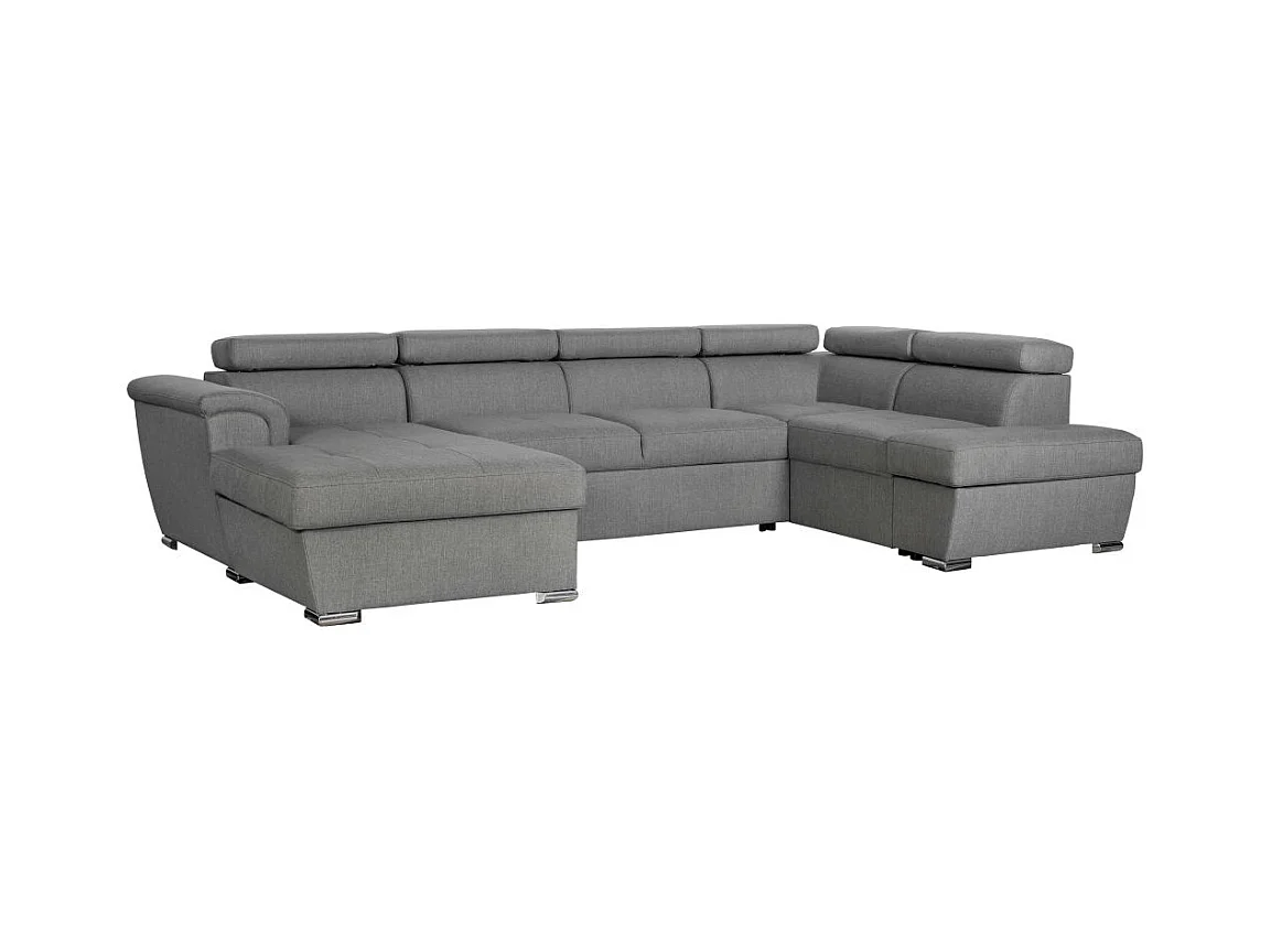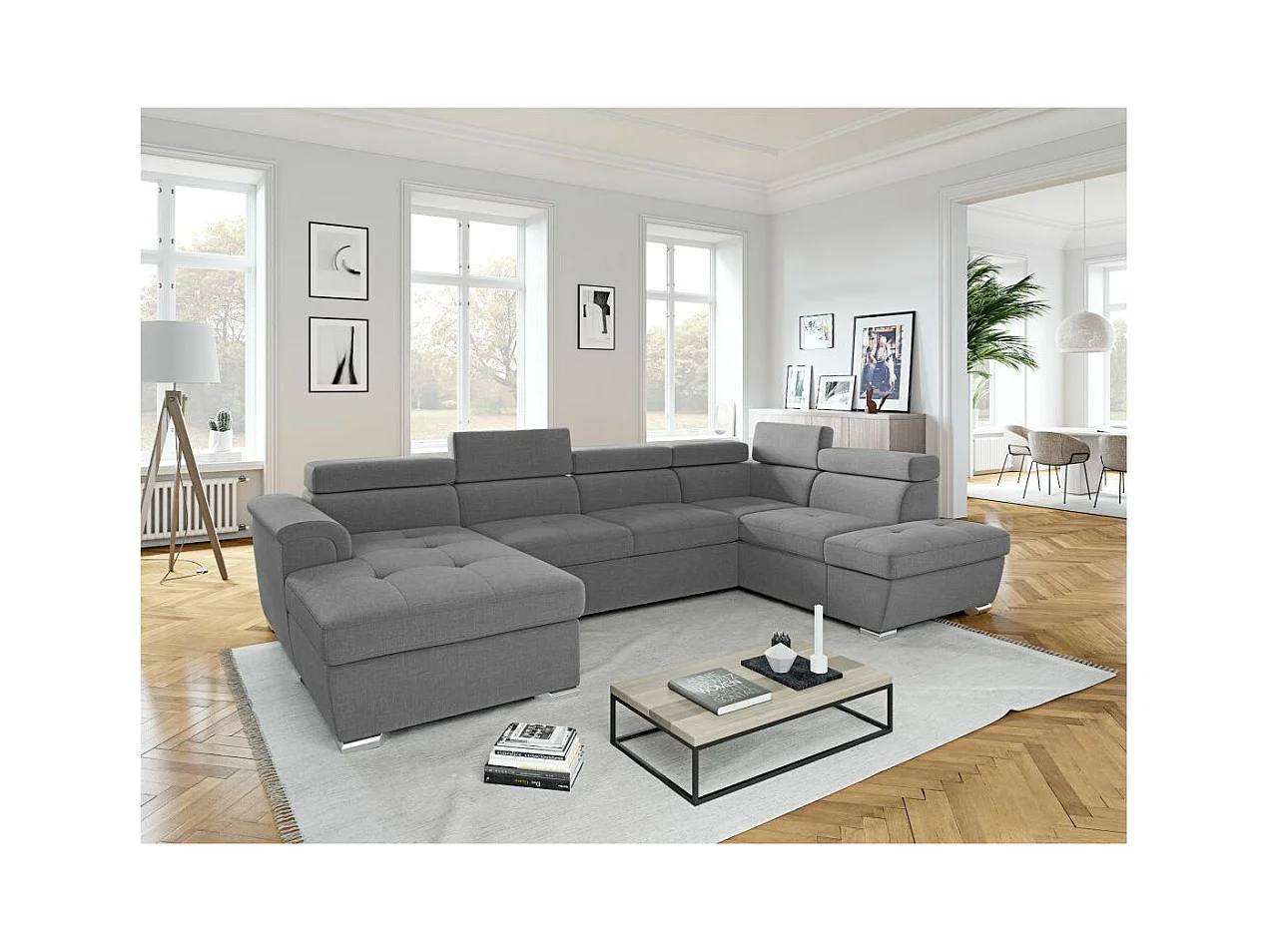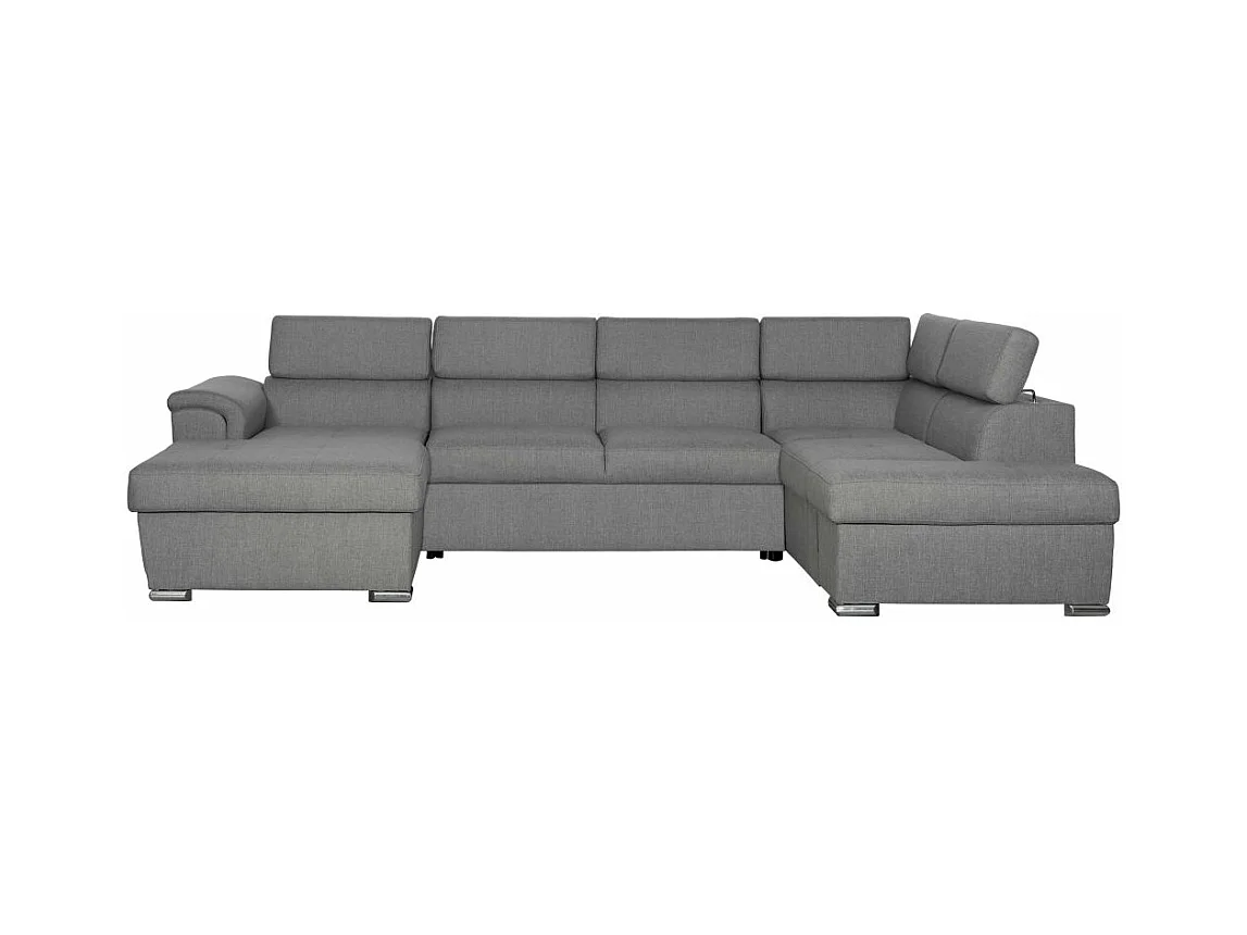 Canapé panoramique convertible avec 2 coffres Paola en tissu - Gris clair - L320,5 x P188 x H76cm - Loungitude