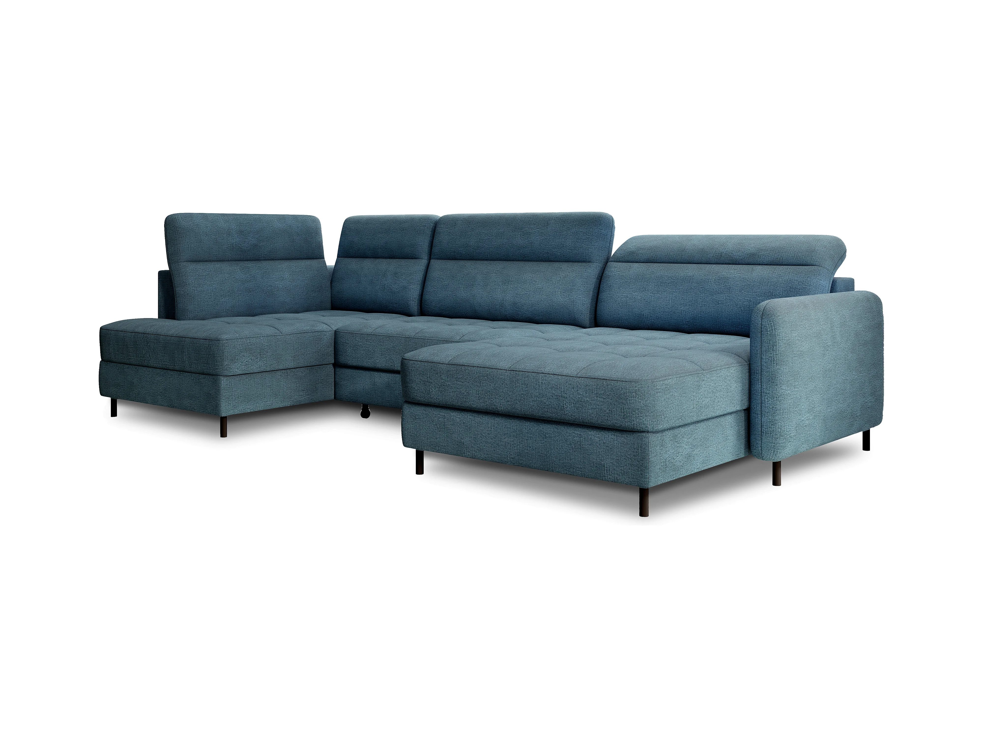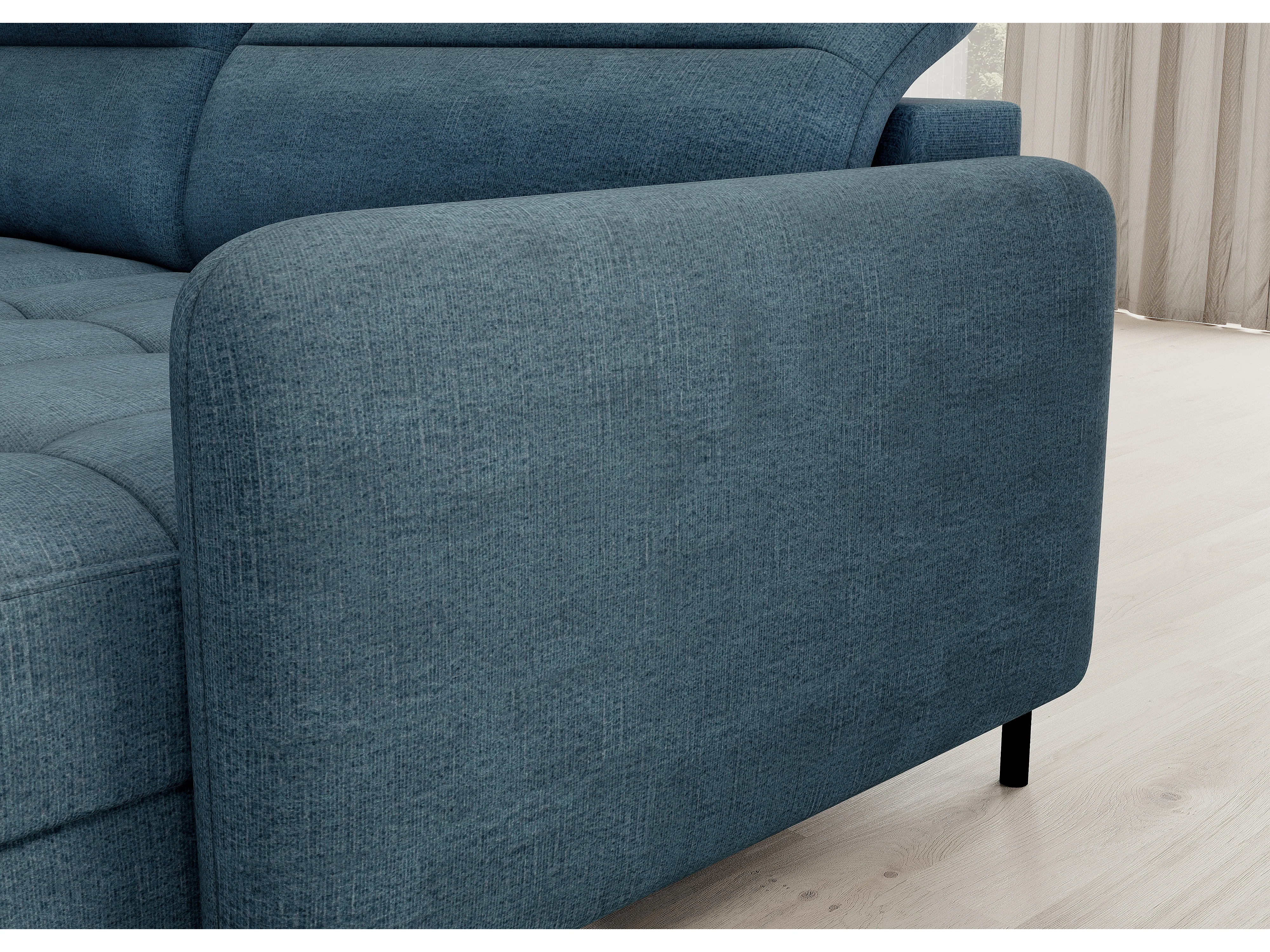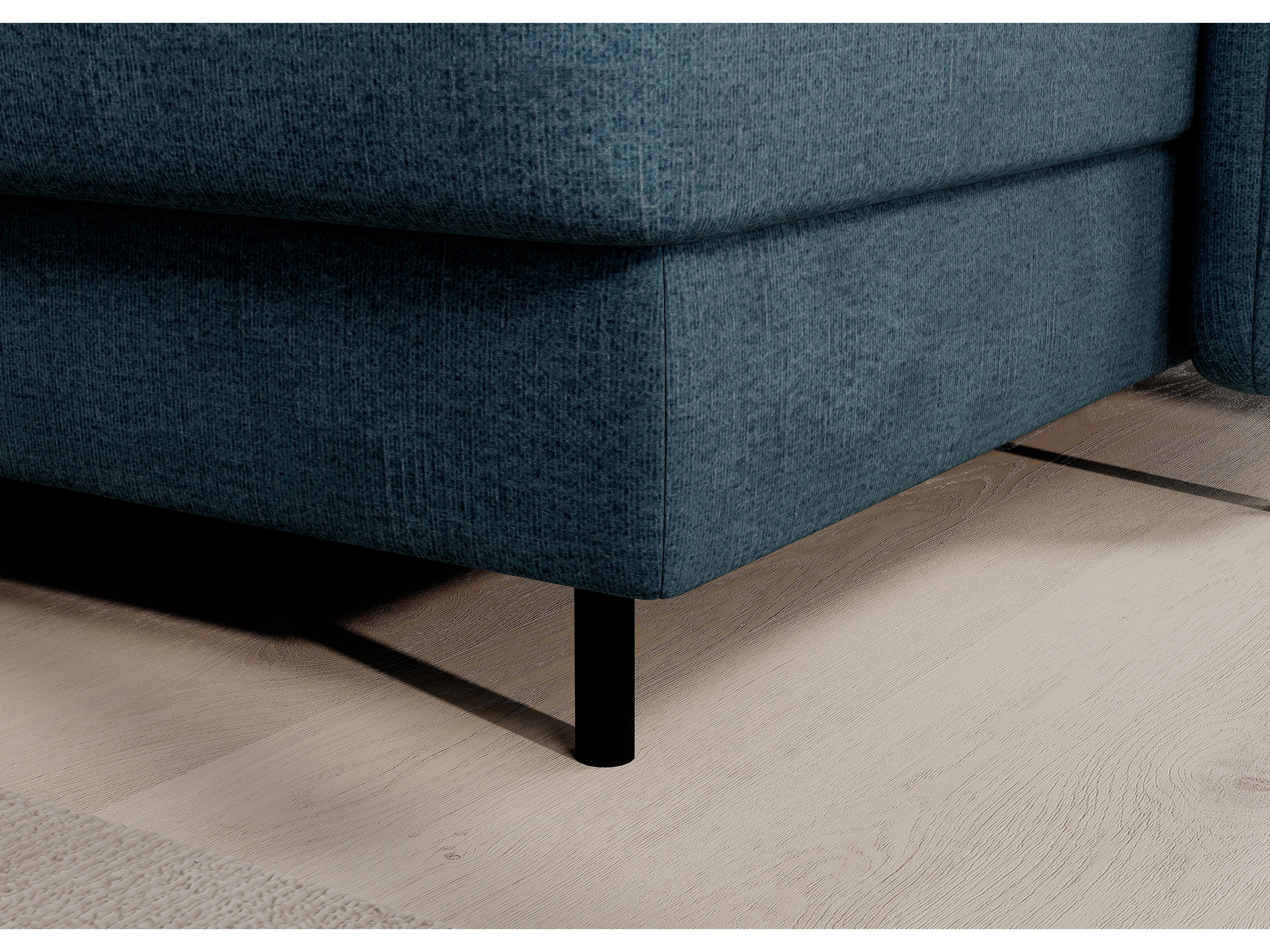 Canapé panoramique convertible BENTO en tissu avec coffre de rangement-Bleu canard-angle droit